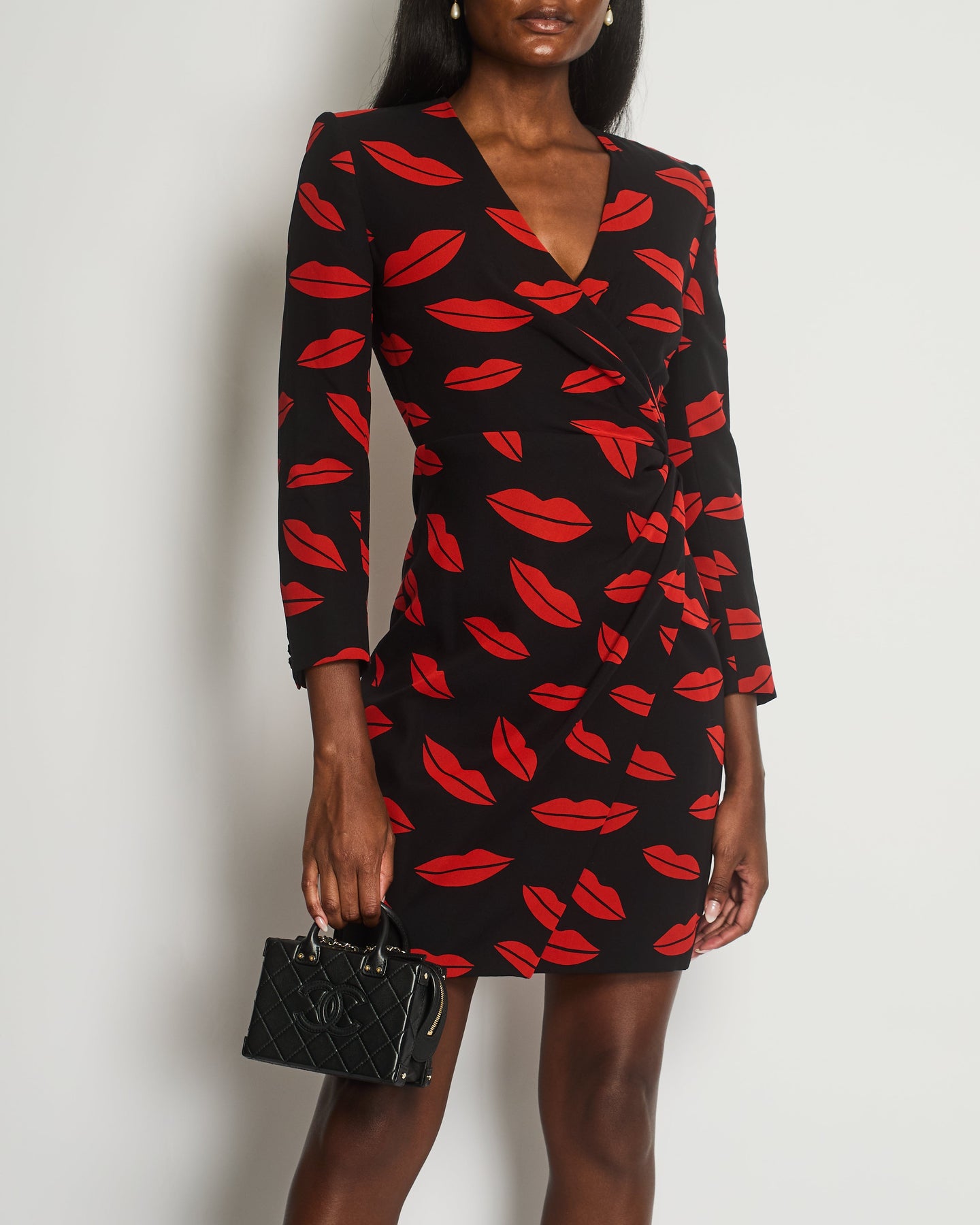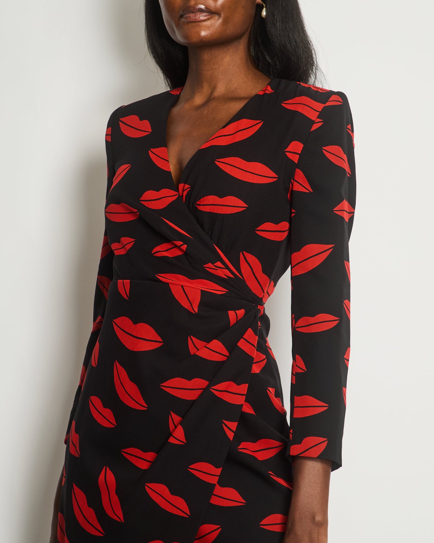 *RUNWAY* Saint Laurent Black Lip Print Midi Dress Size 38 (UK 10)