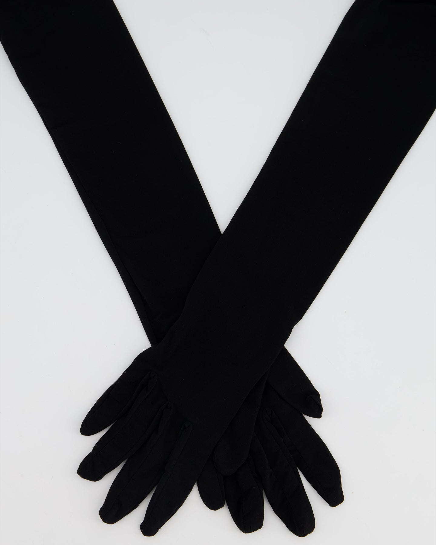 Saint Laurent Black Long Jersey Gloves Size 7.5