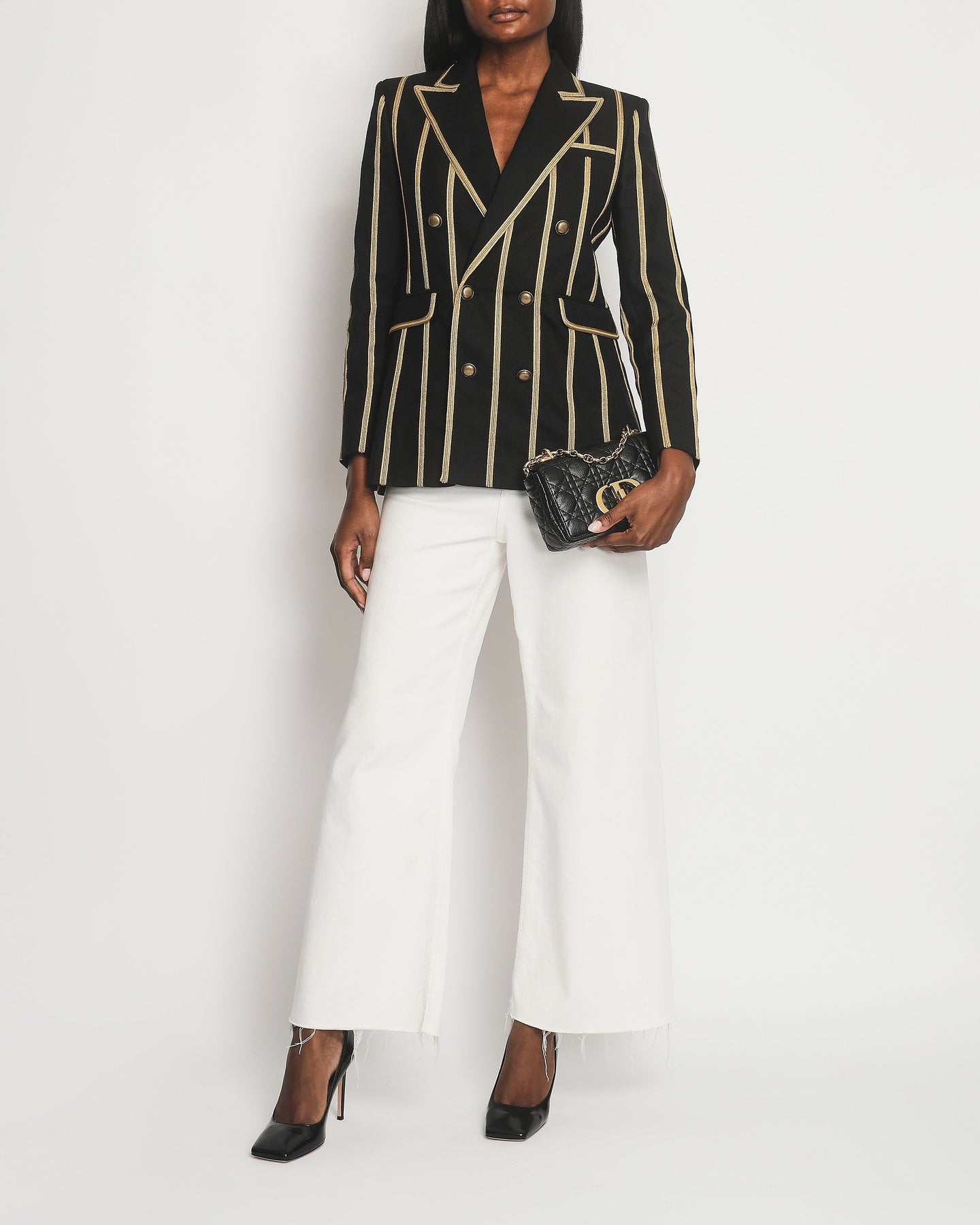 Saint Laurent Black Metallic Stripe Detail Blazer with Antique Gold Button Detail Size FR 38 (UK 10)