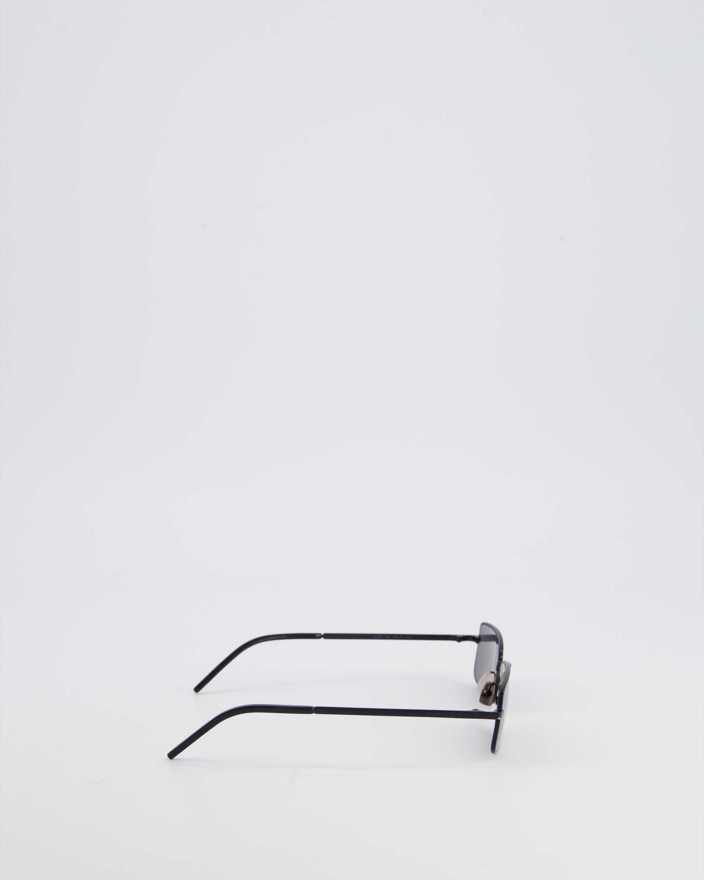 Saint Laurent Black Rectangular Sunglasses With Matte Black Metal Frame