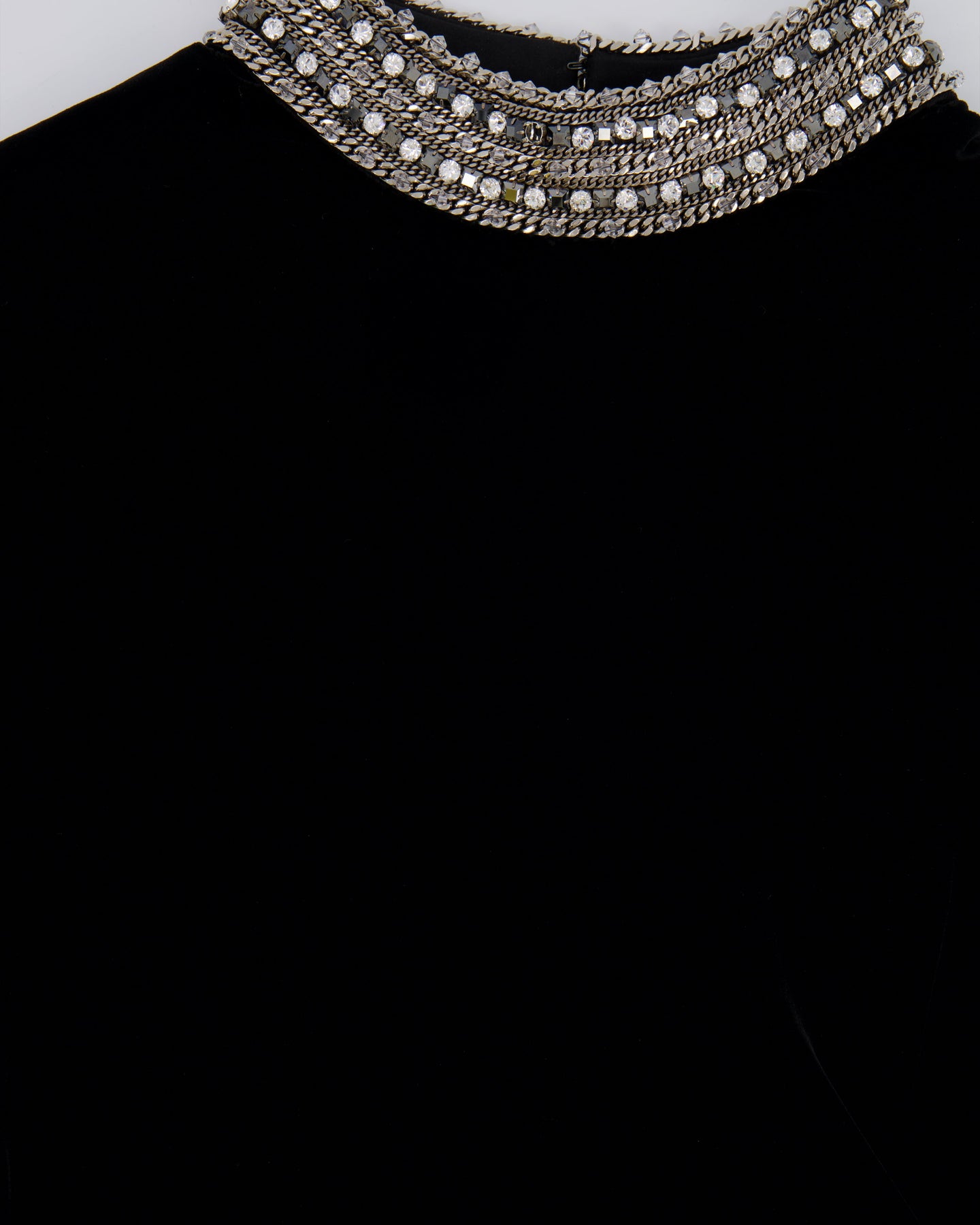 Saint Laurent Black Suede Long-Sleeve Mini Dress with Crystal Embellished Collar Detail Size FR 36 (UK 8)