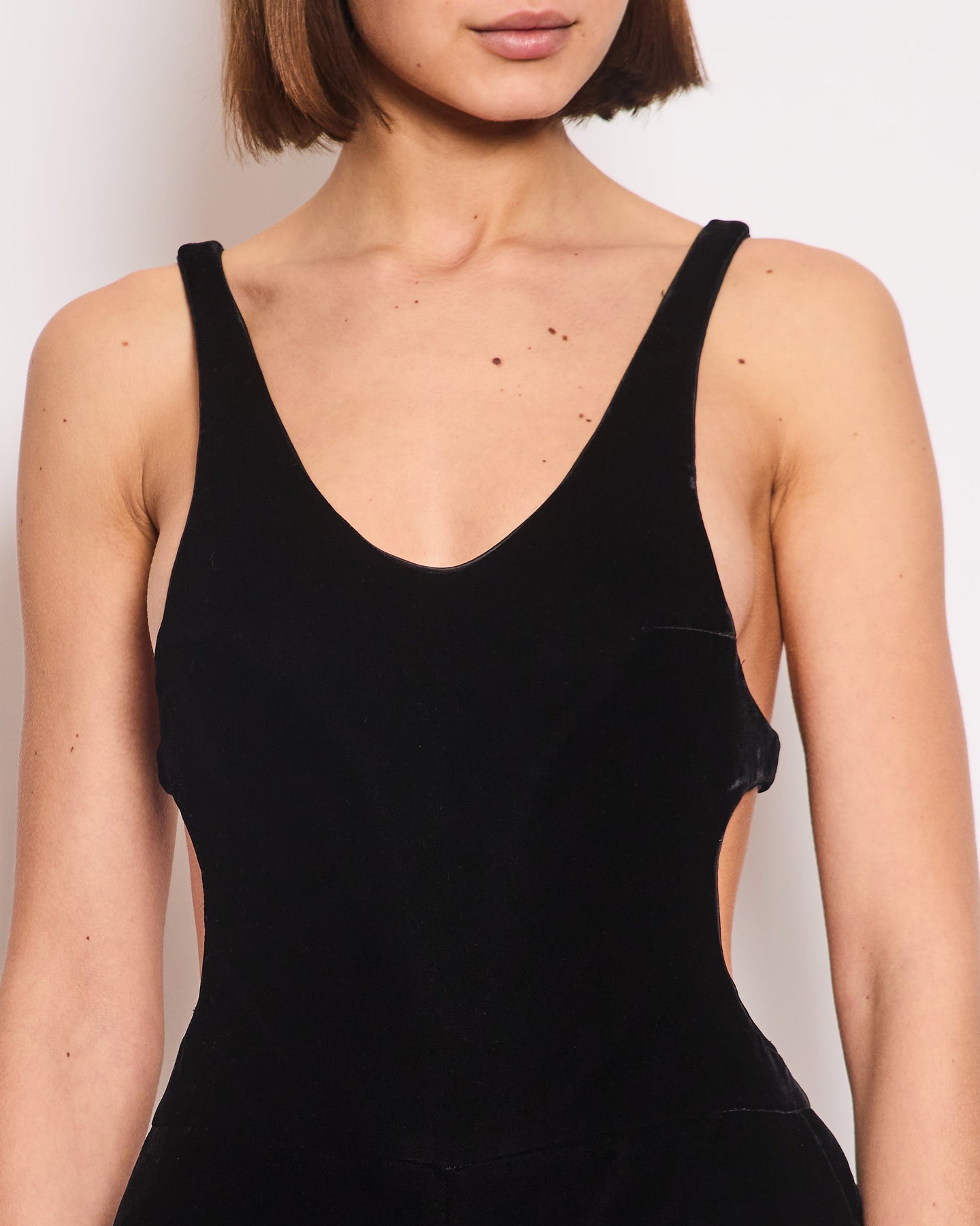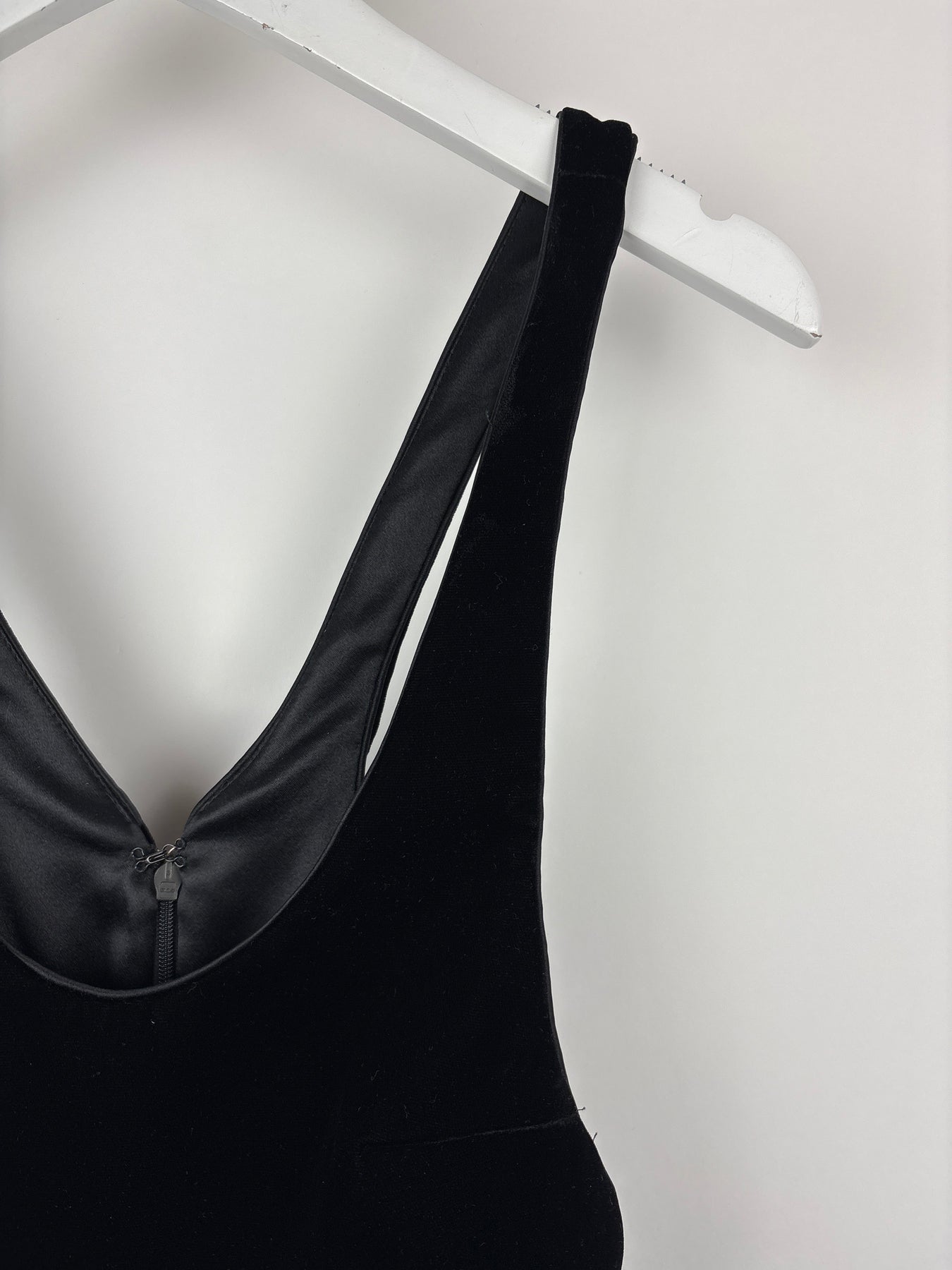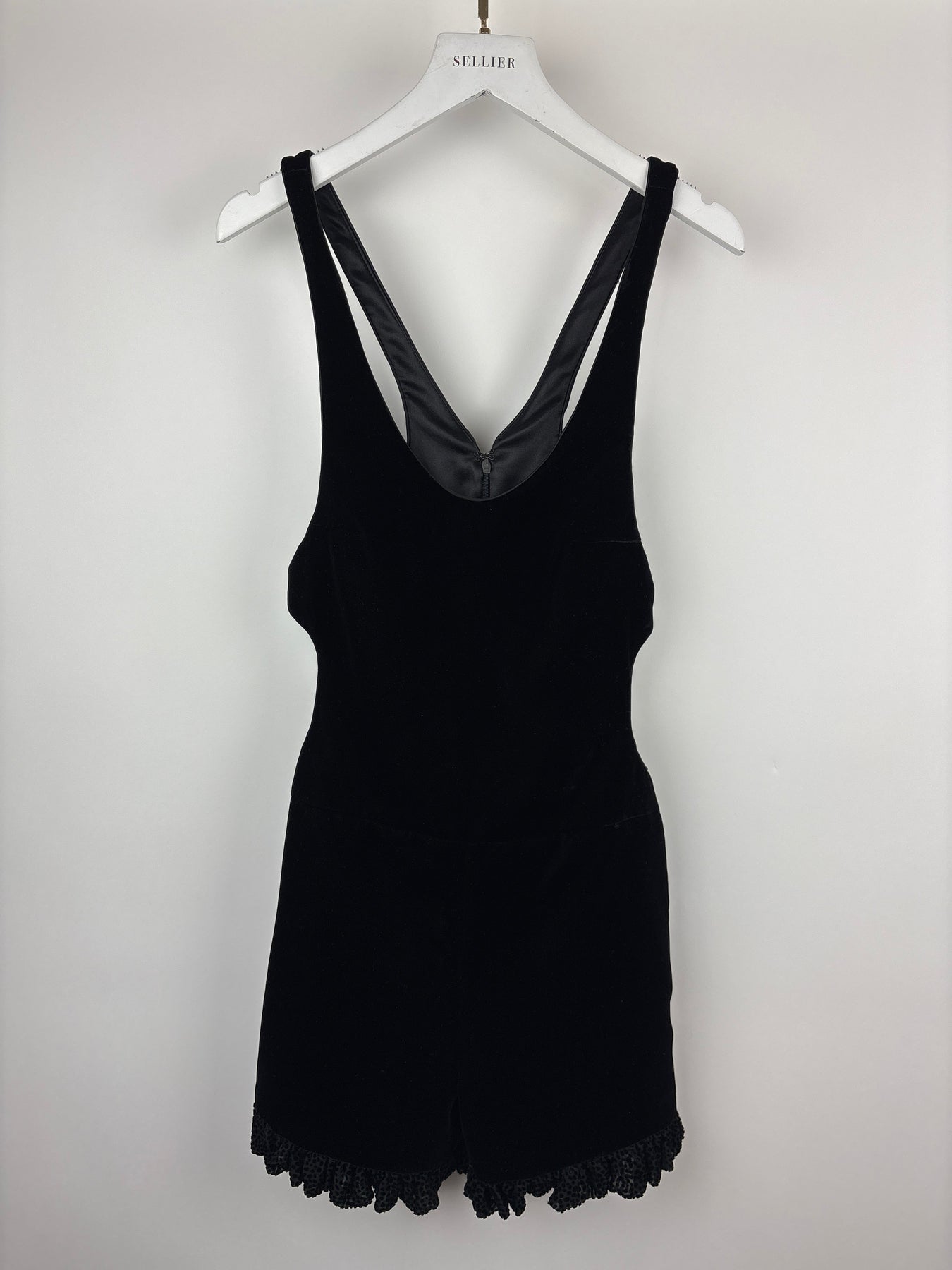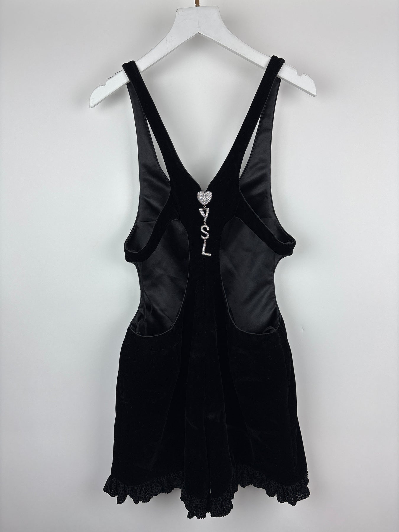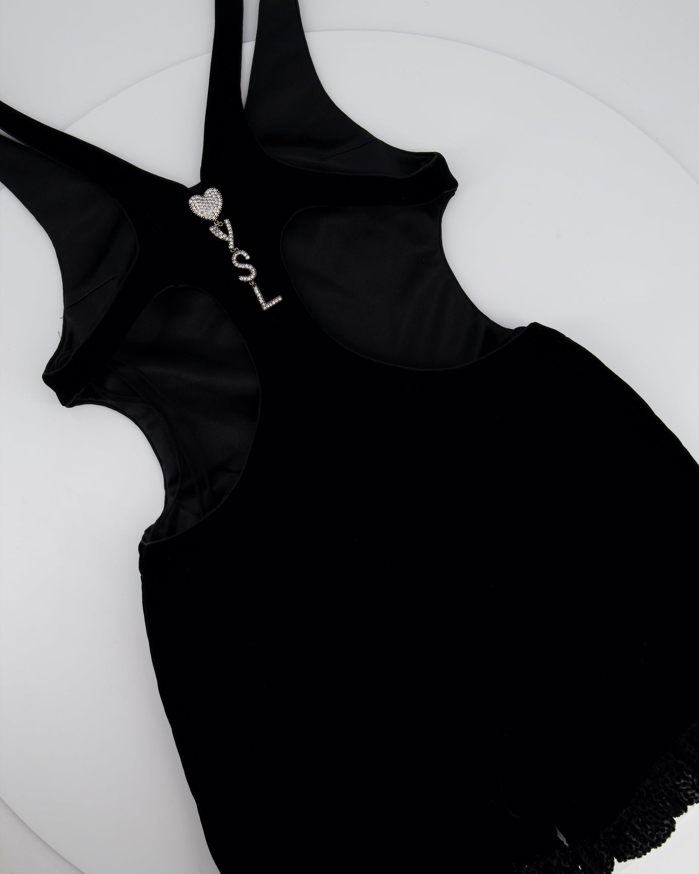 Saint Laurent Black Velvet Mini Sleeveless Playsuit with Crystal Heart and YSL Zip Detail Size FR 36 (UK 8)