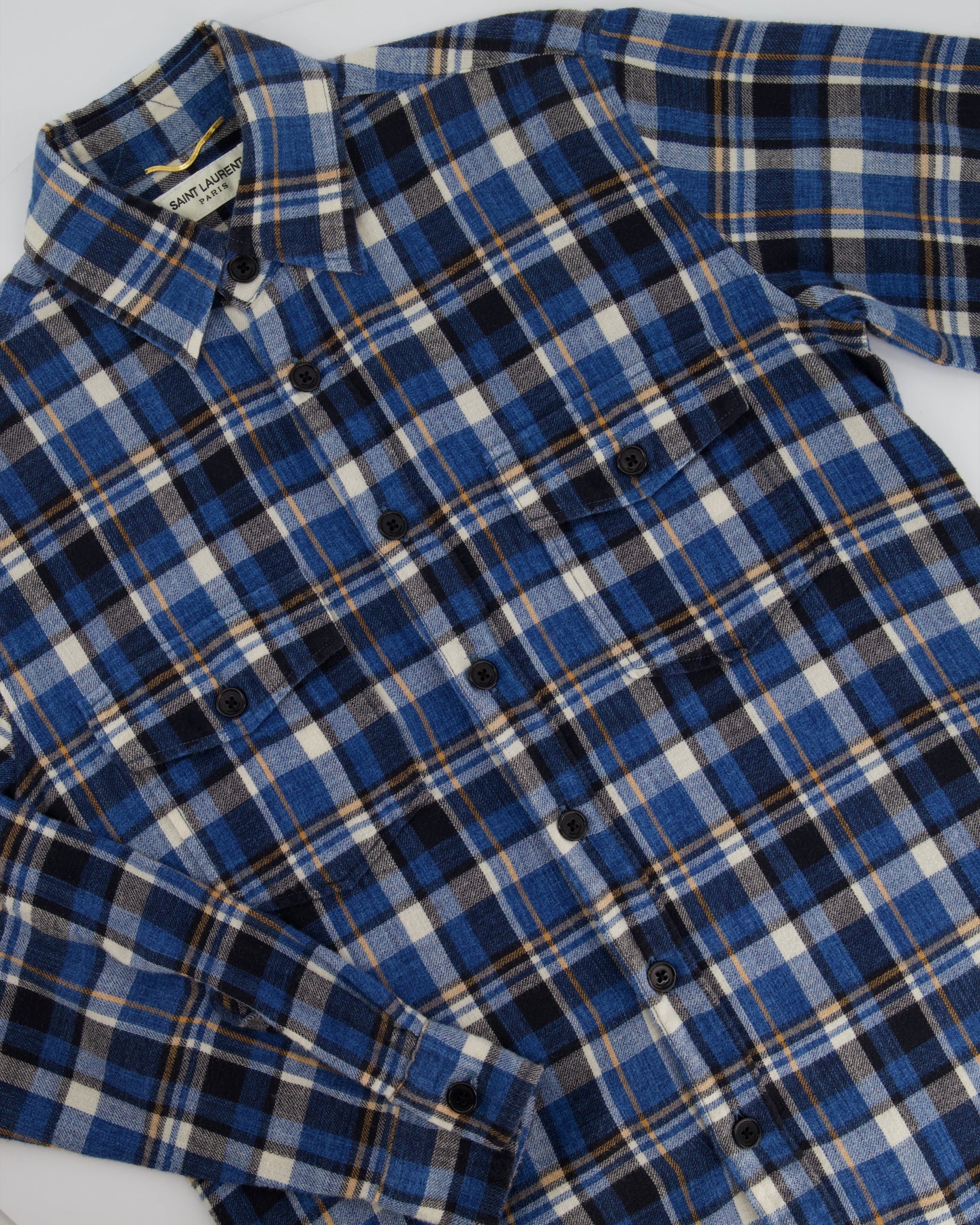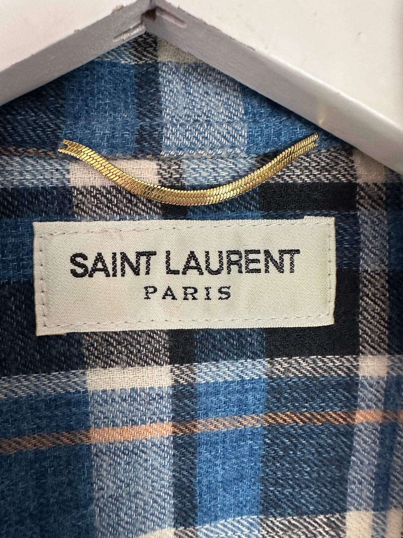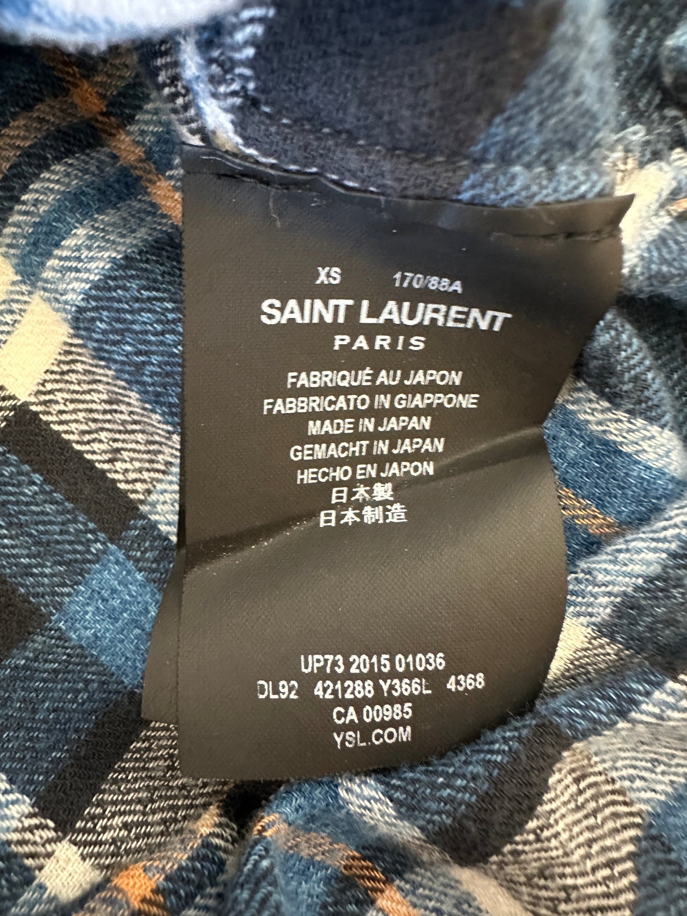 Saint Laurent Blue Plaid Long Sleeve Shirt Size XS (UK 6)