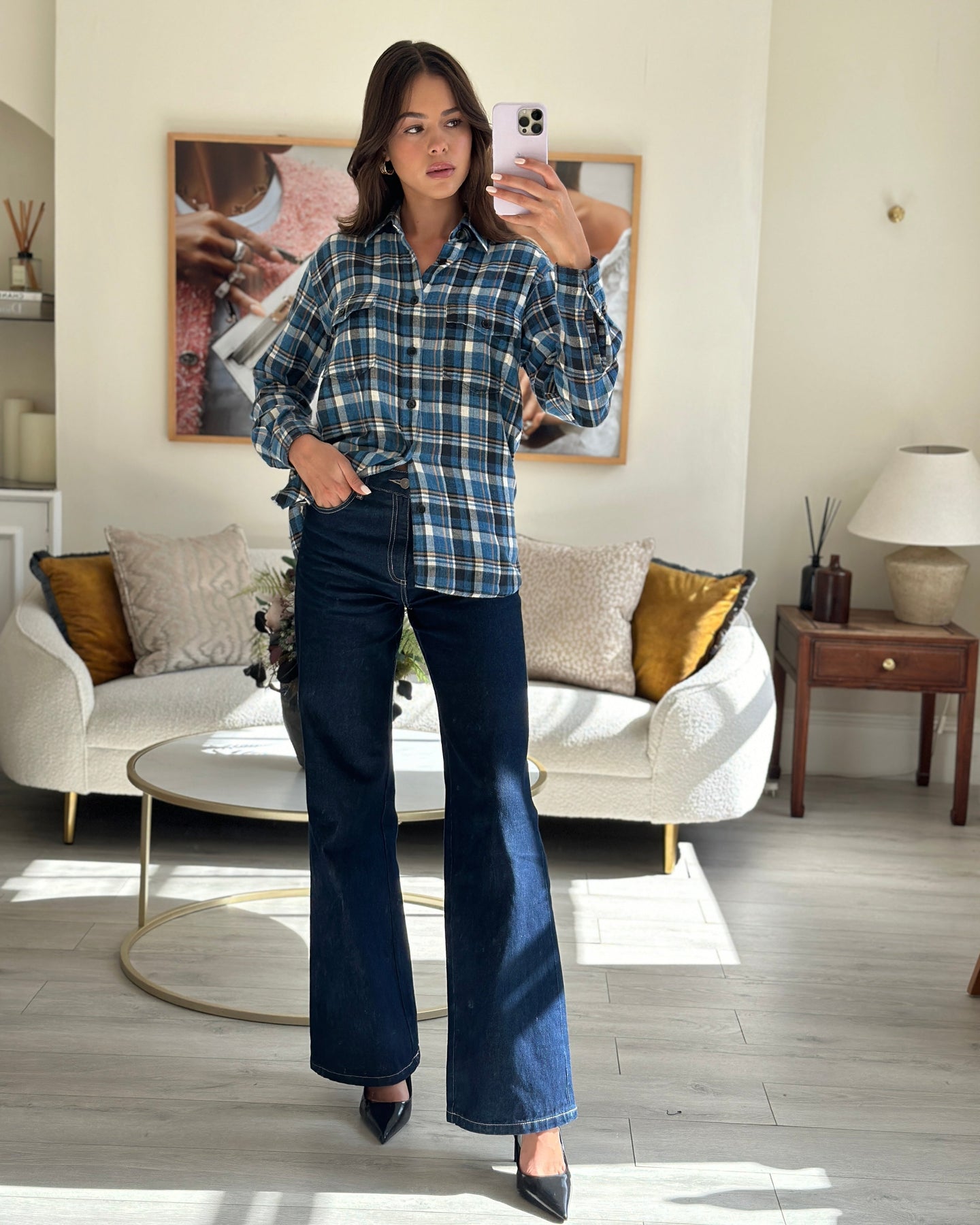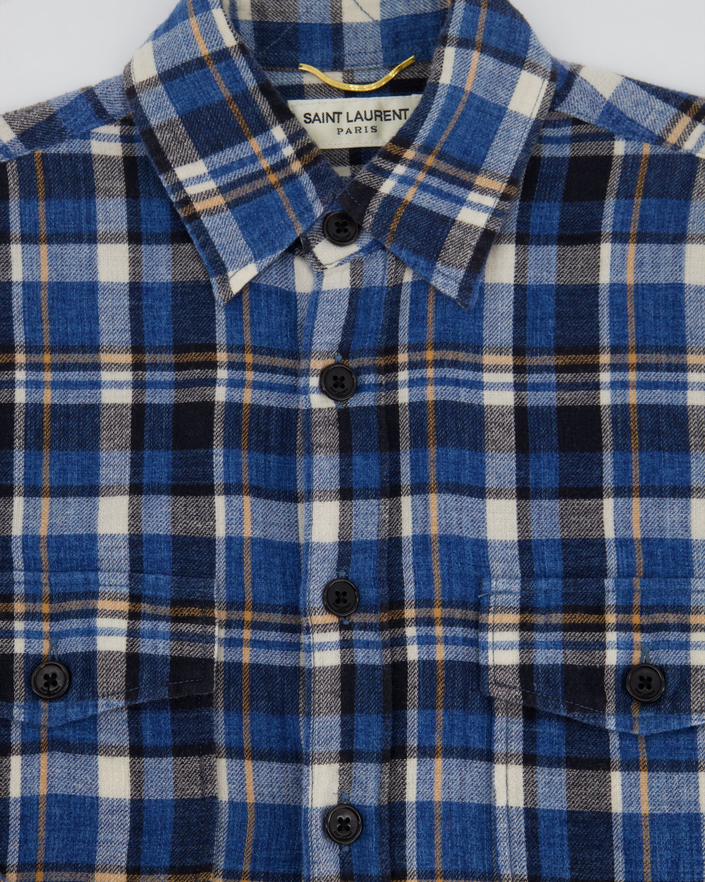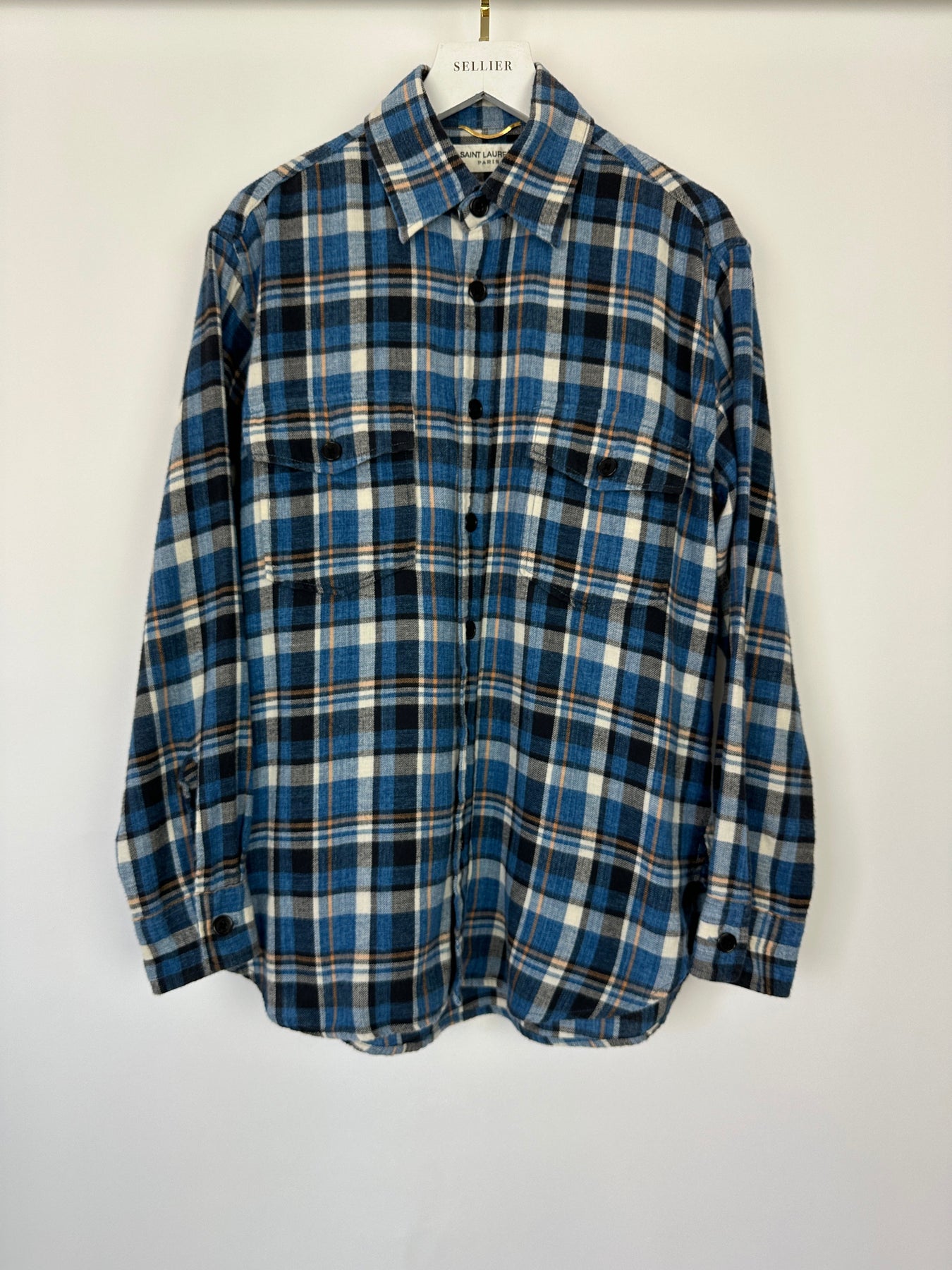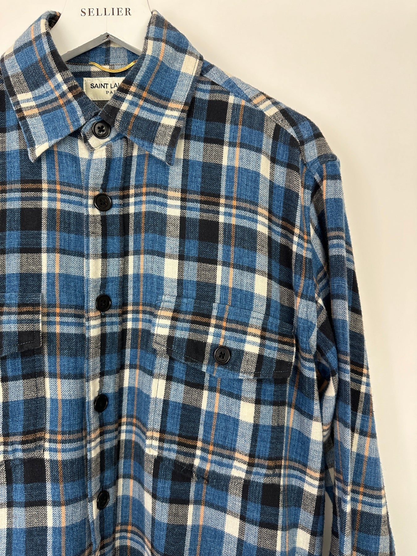 Saint Laurent Blue Plaid Long Sleeve Shirt Size XS (UK 6)