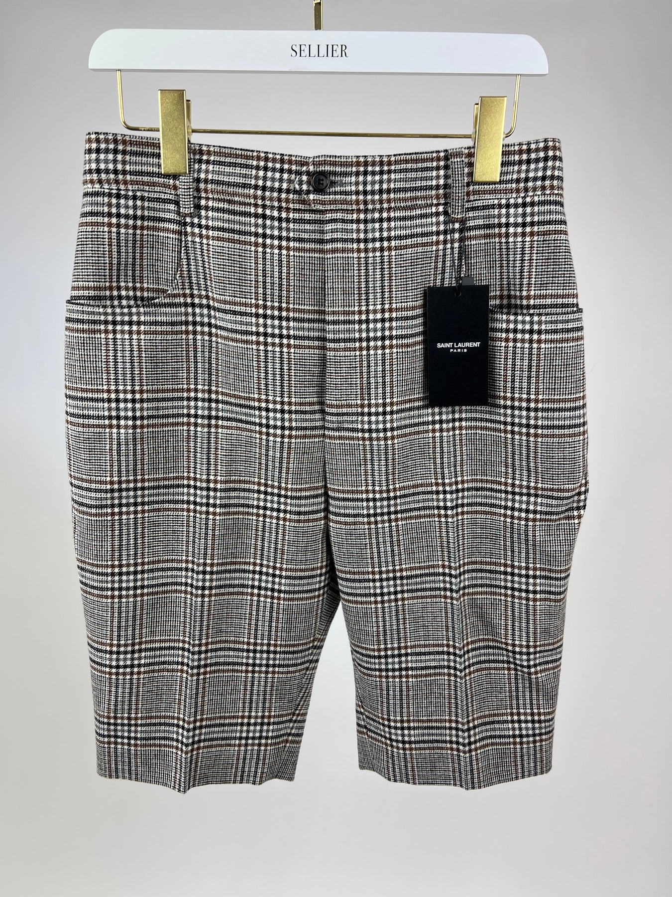 Saint Laurent Brown Houndstooth Mid Length Shorts FR 40 (UK 12)
