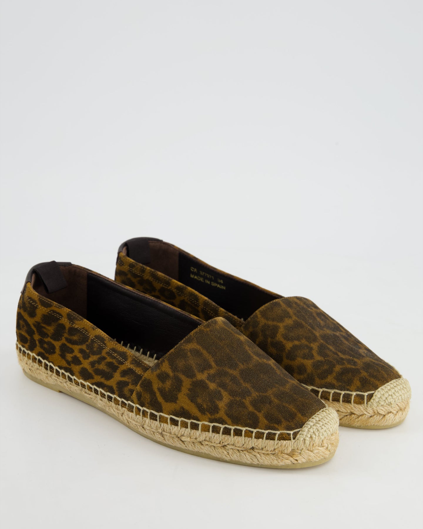 Saint Laurent Brown Leopard Print Suede Espadrilles Size EU 38