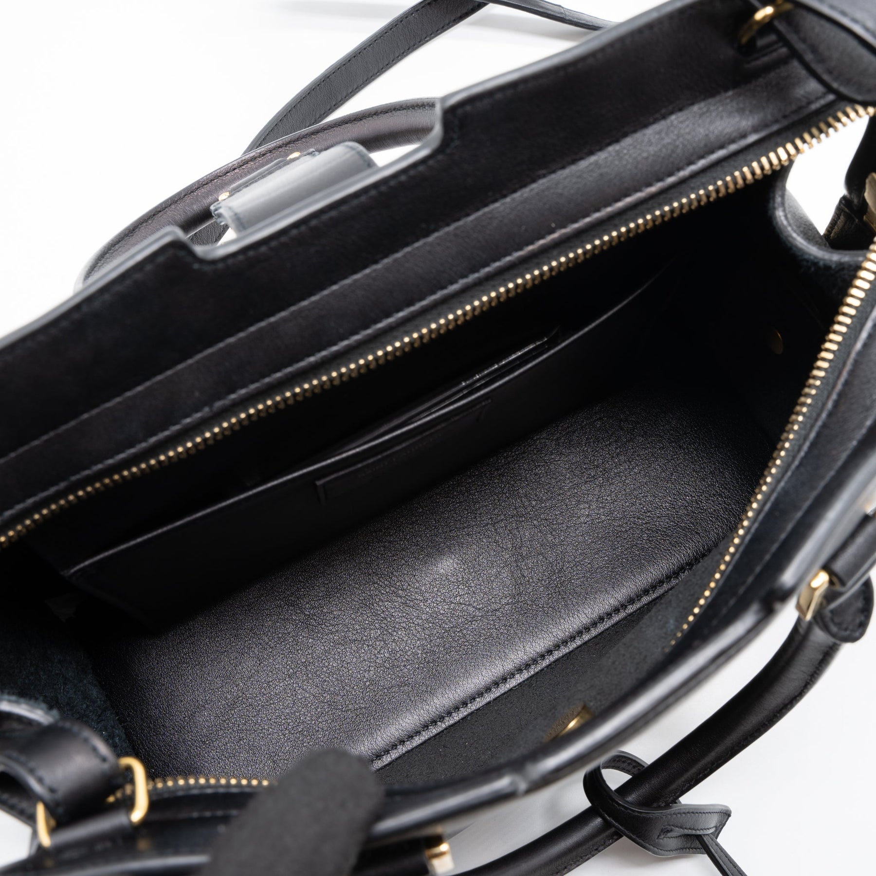 Gently New ( This item is in New condition with slight dents and creasing on leather, two threads-off on shoulder strap, slight sign of use inside. )