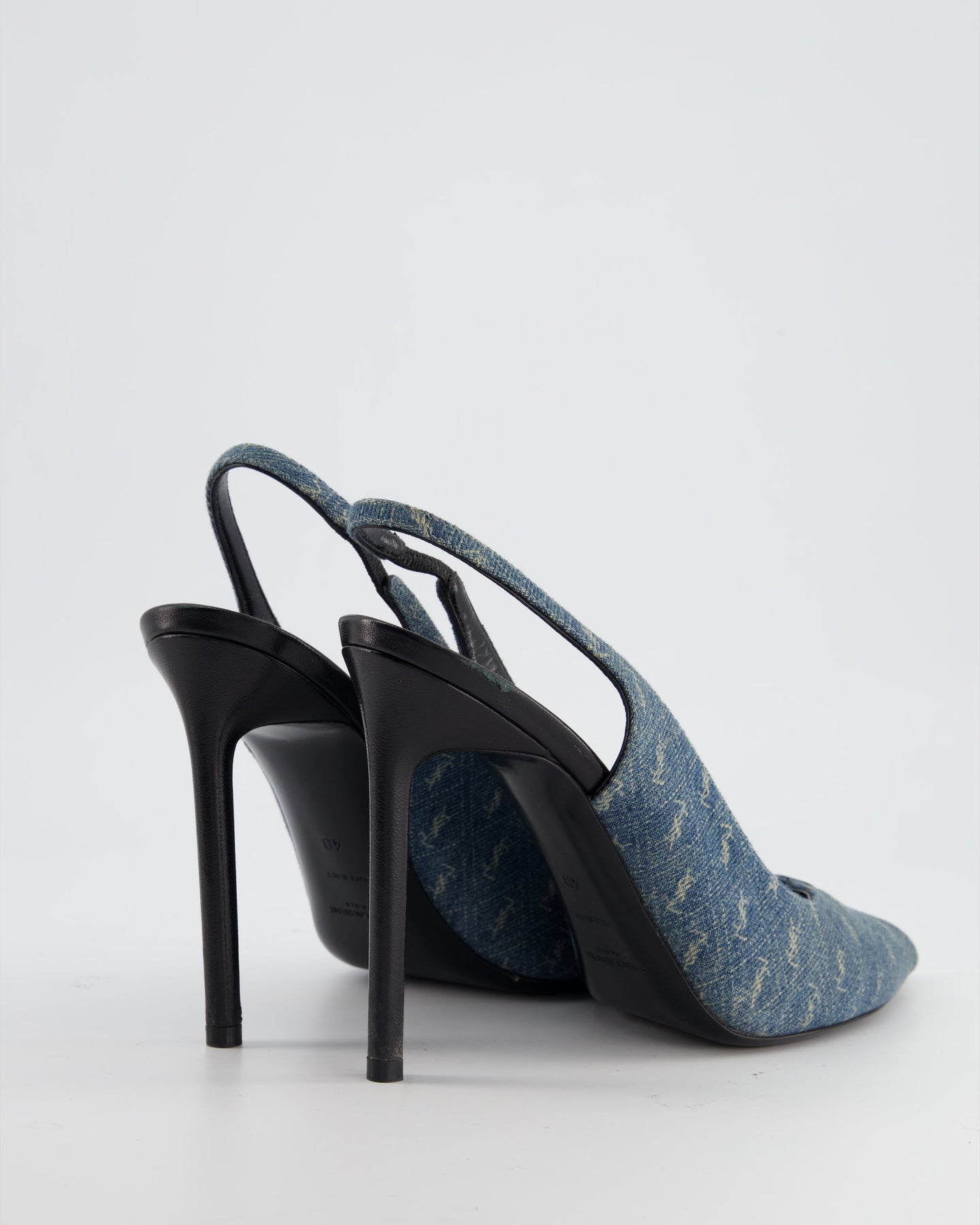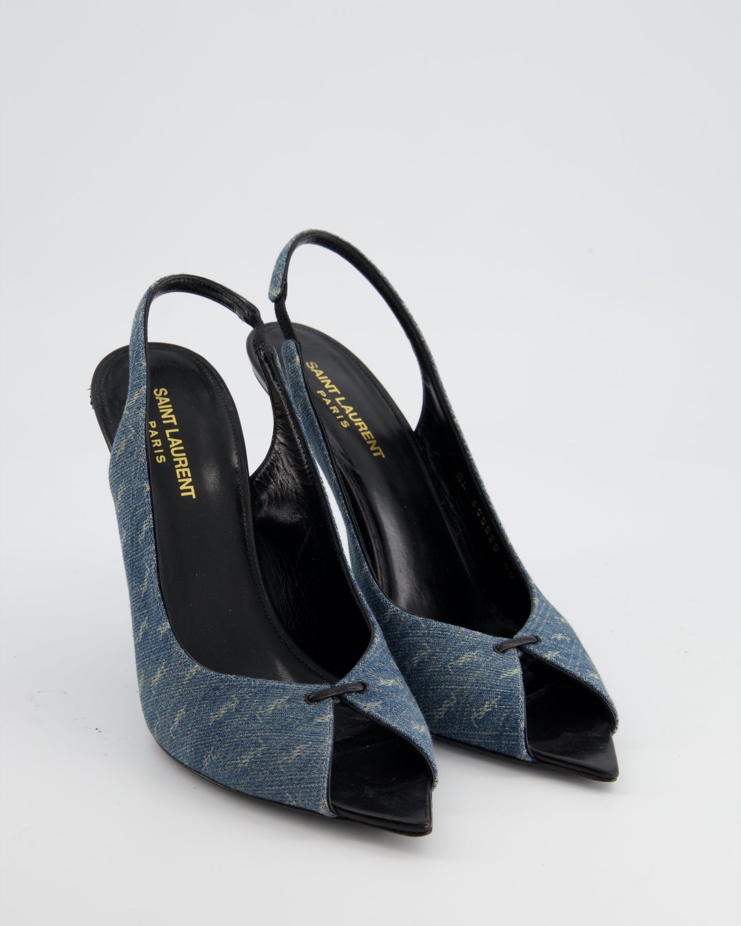 Saint Laurent Denim Lola 105 Slingback Sandals Size EU 40 RRP £740