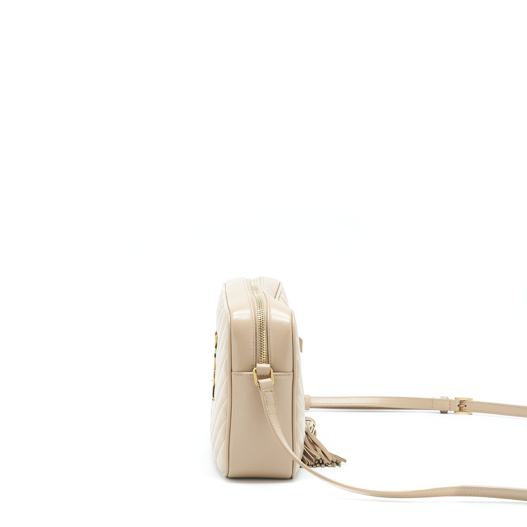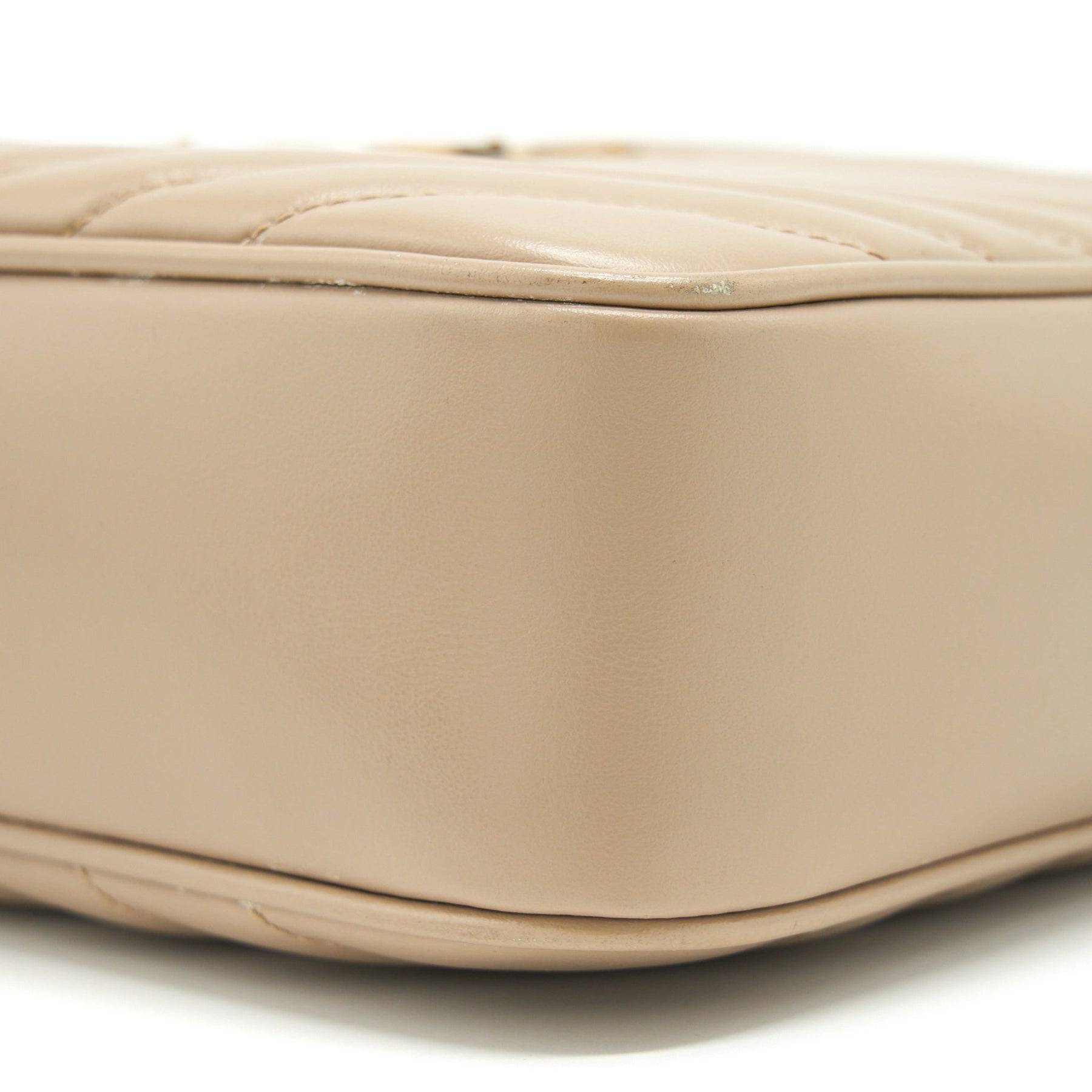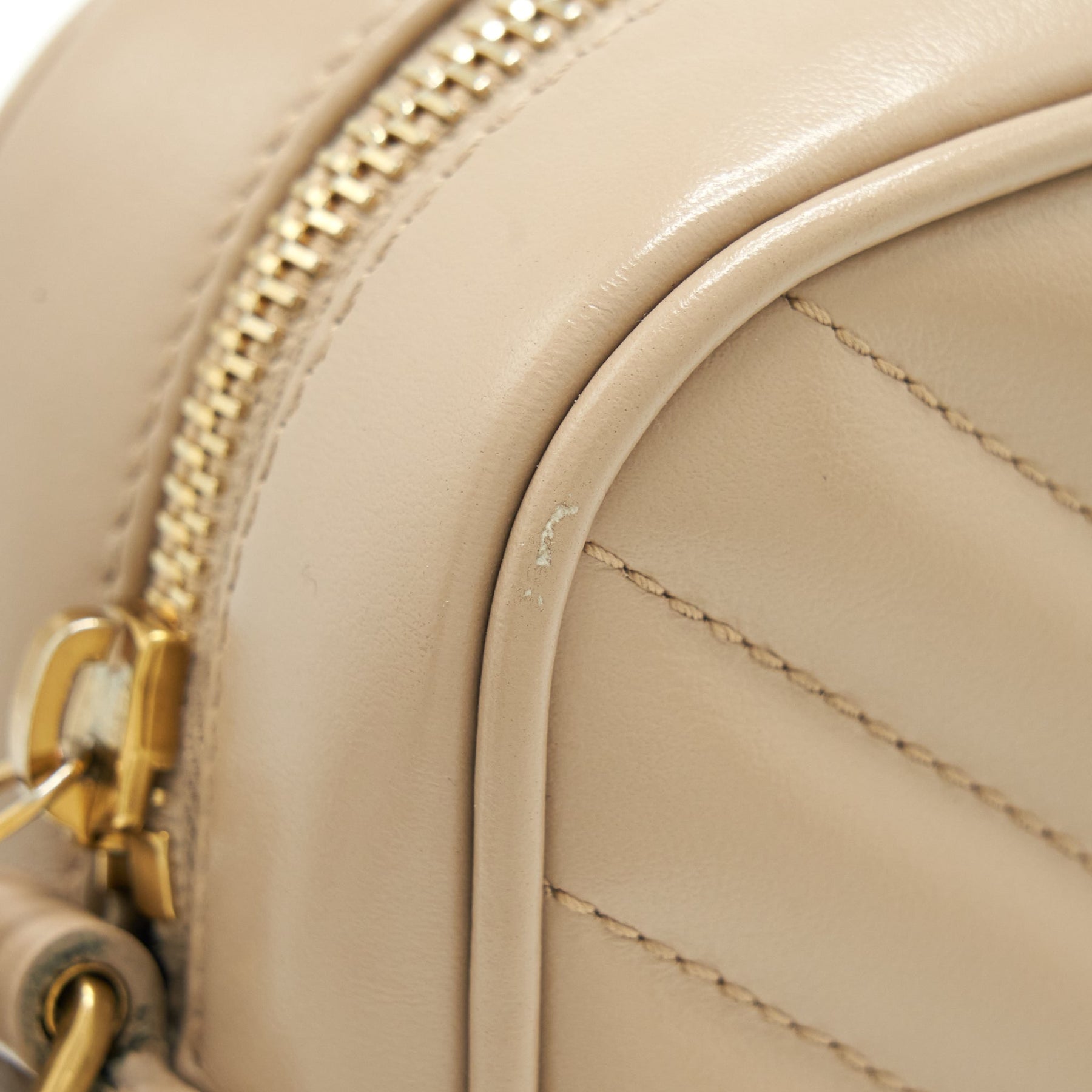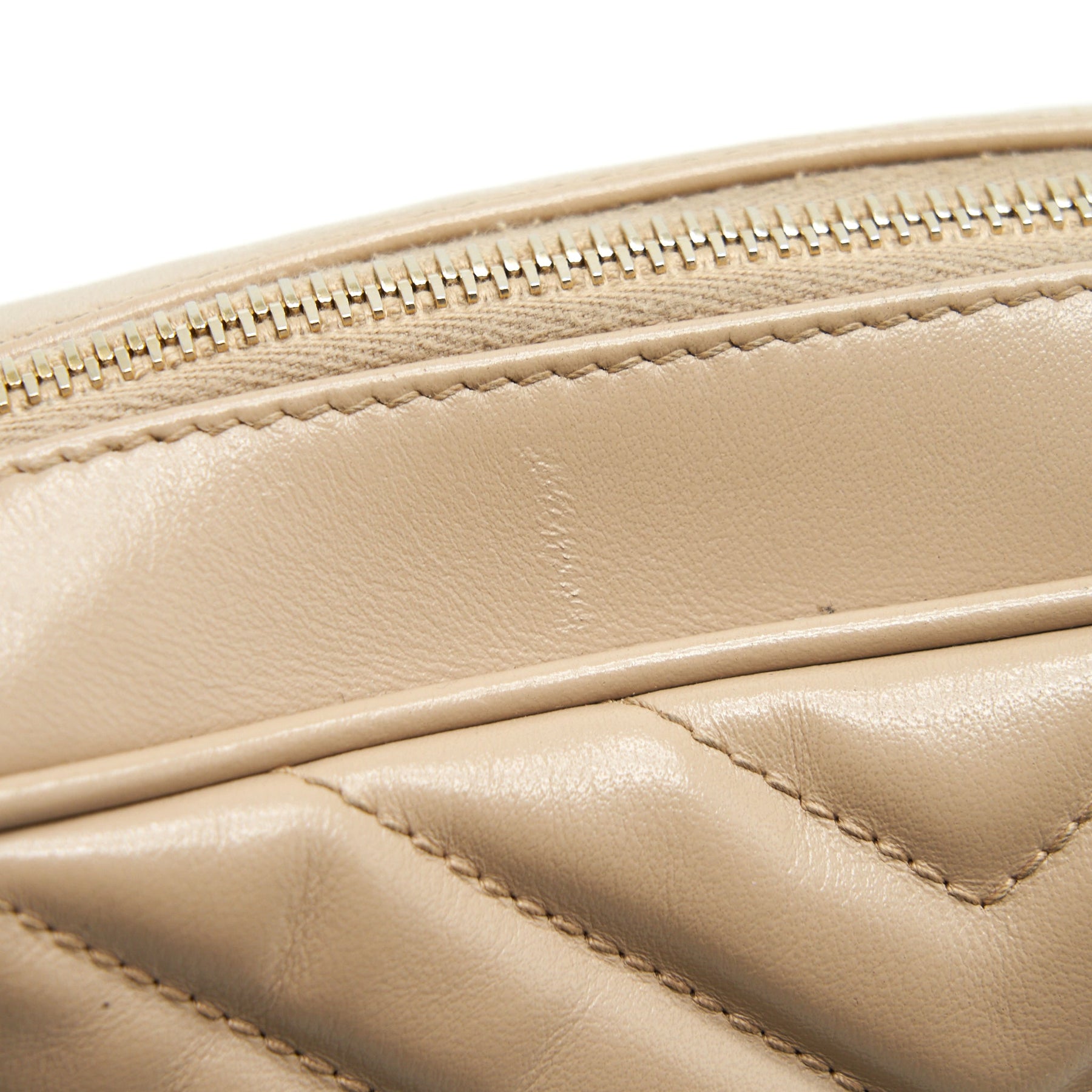 Well New (This item is in very New condition with scratches and rubbing on corners and edges, light marks on leather, sign of use inside.)