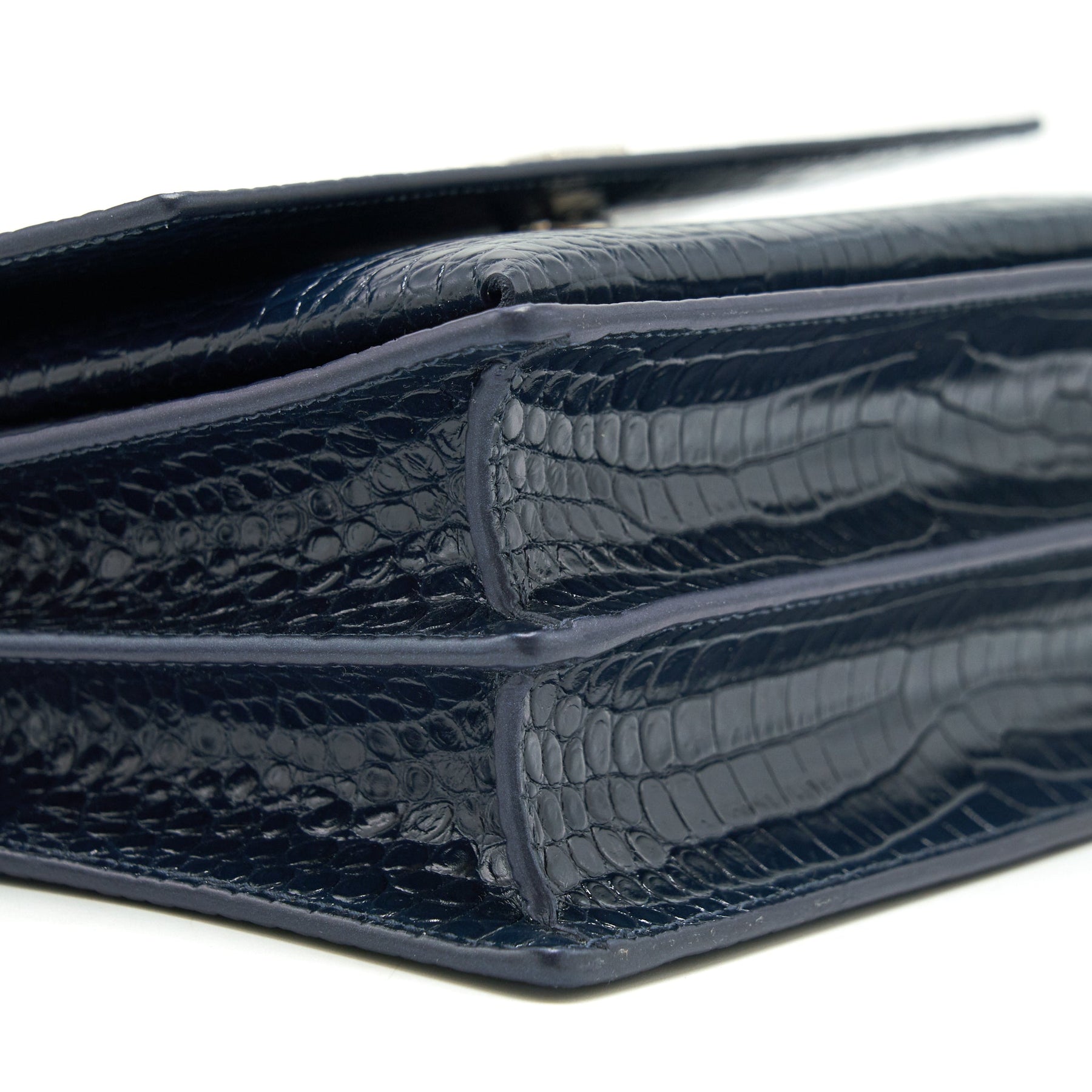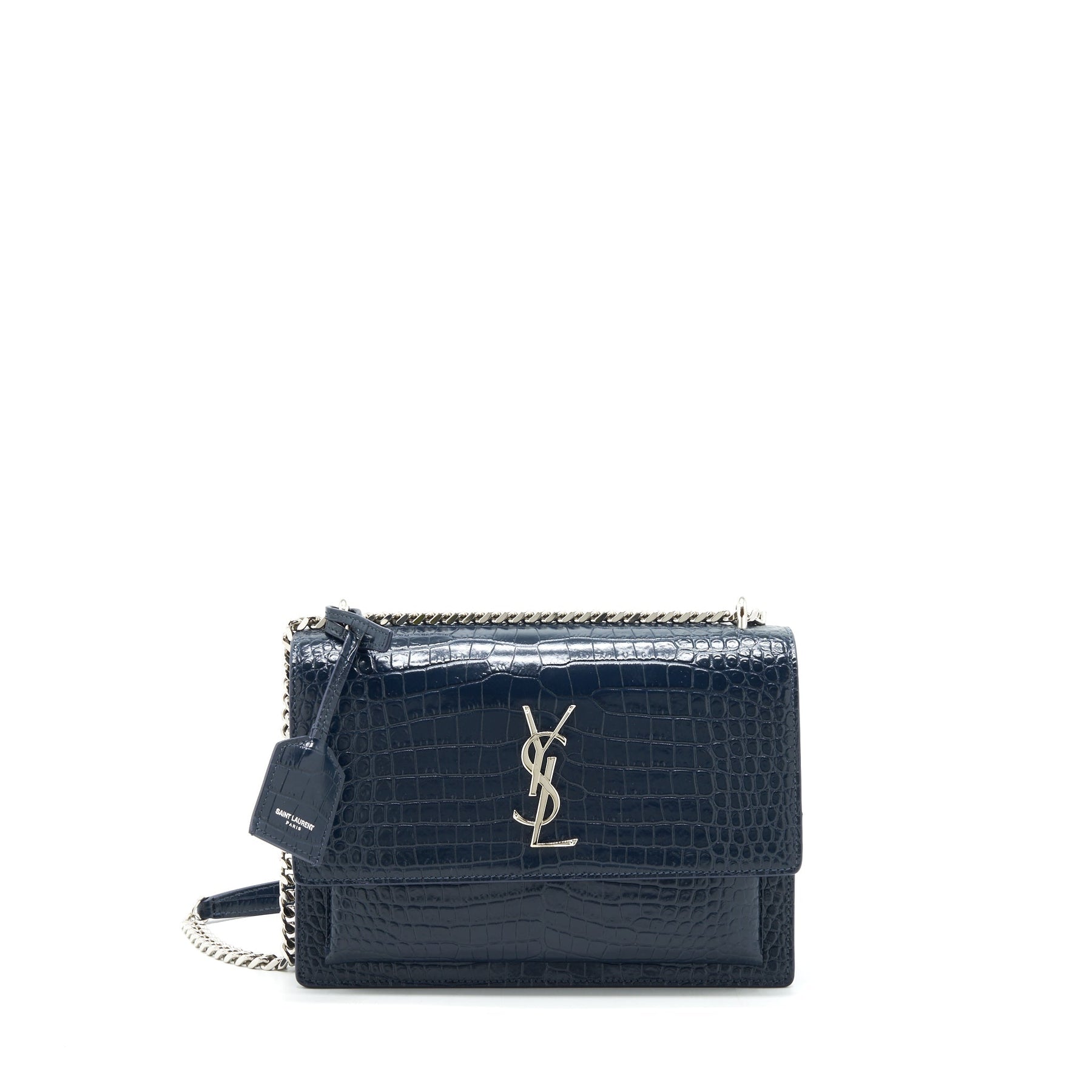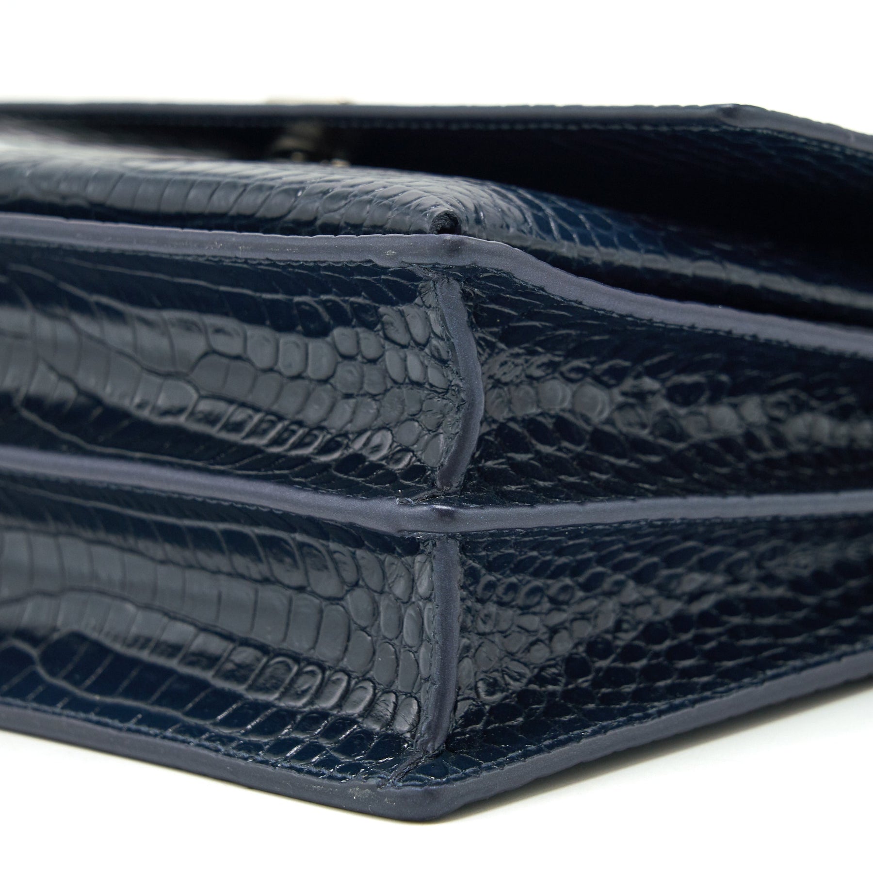 Saint Laurent Medium Sunset Bag croc Embossed calfskin dark blue SHW