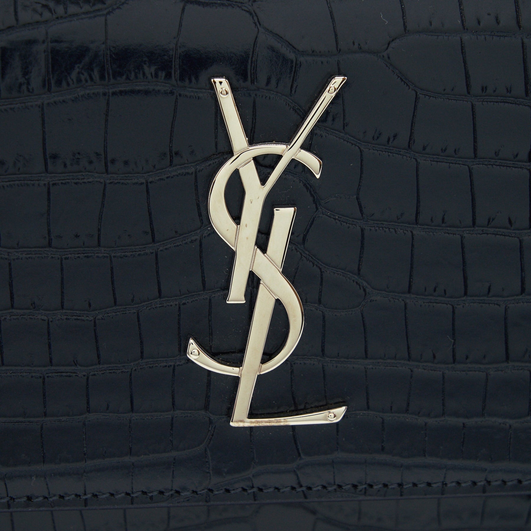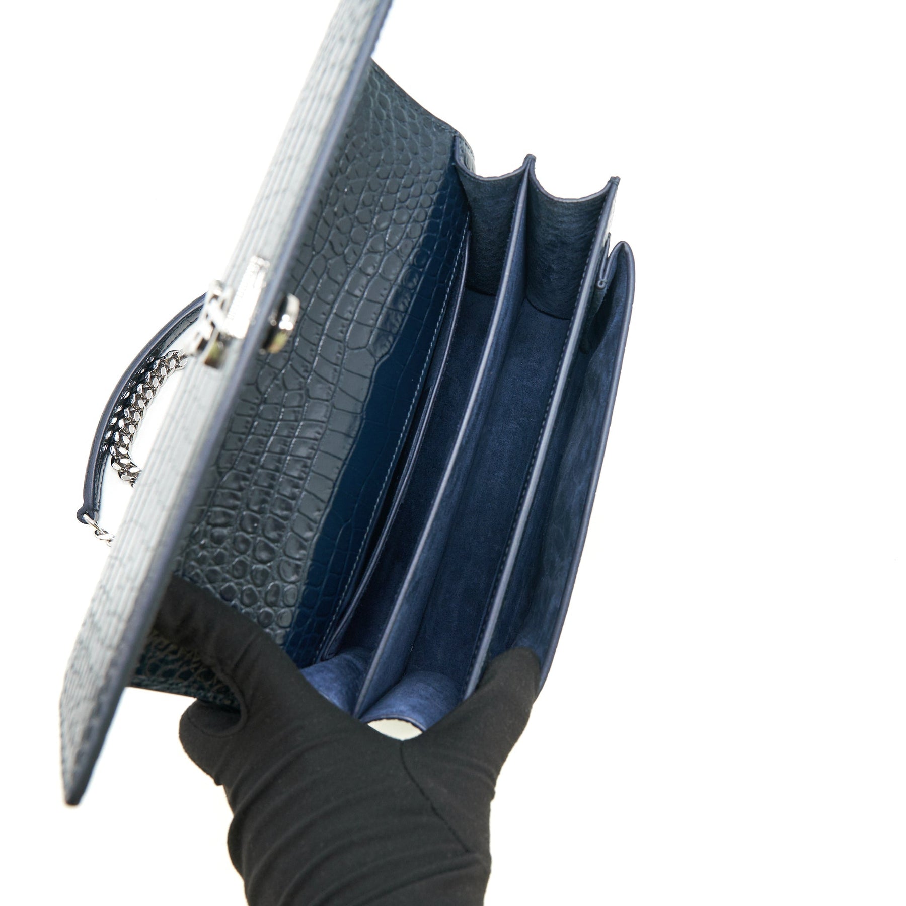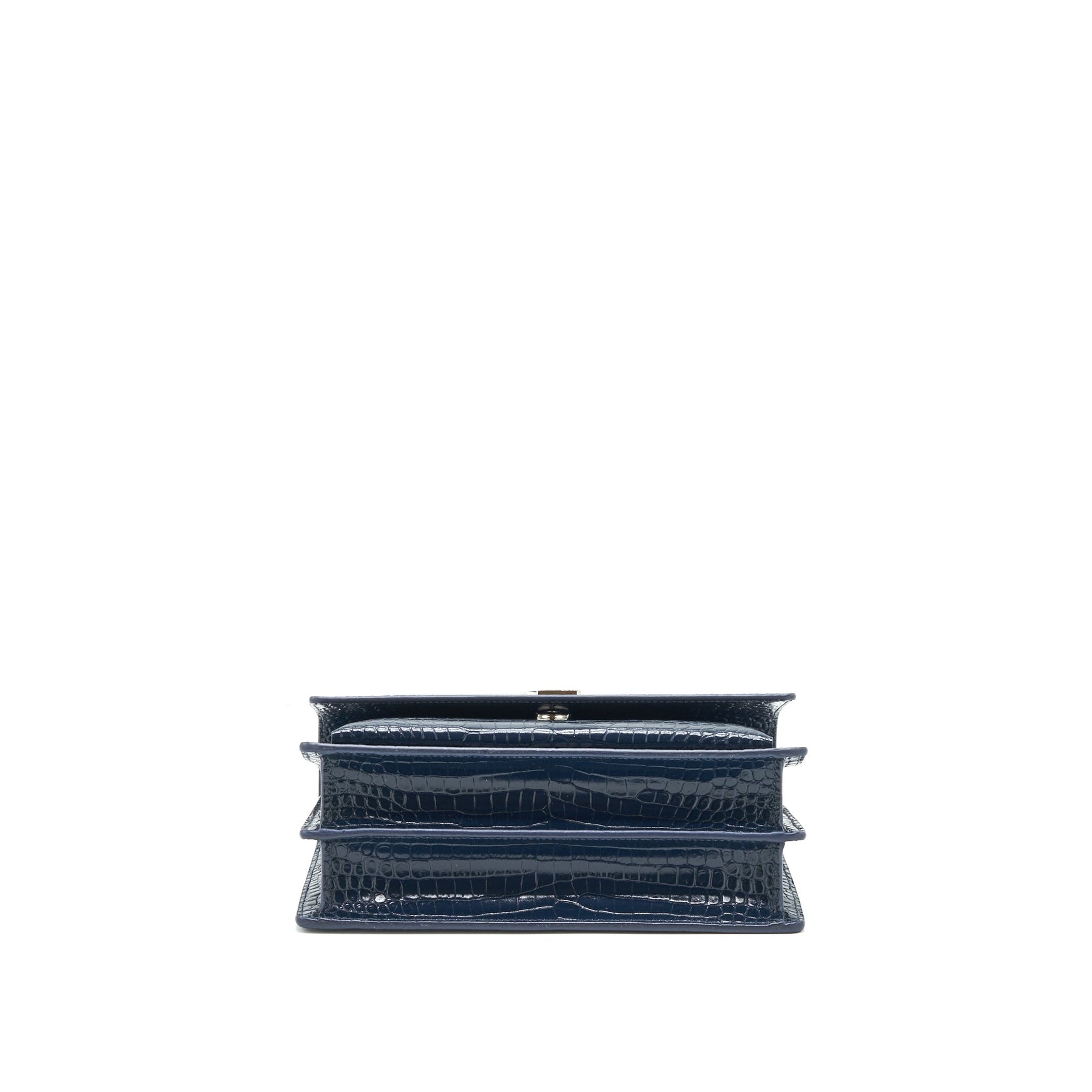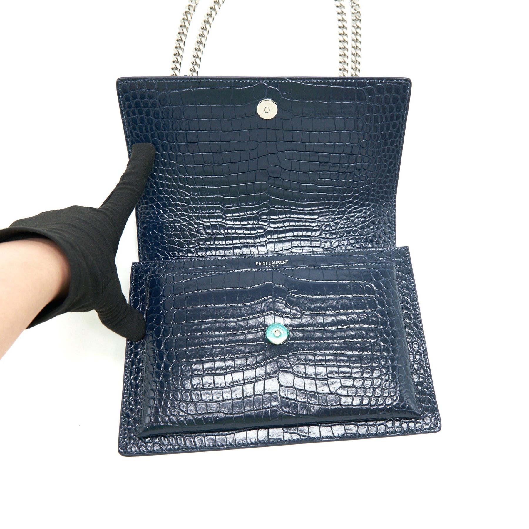Saint Laurent Medium Sunset Bag croc Embossed calfskin dark blue SHW