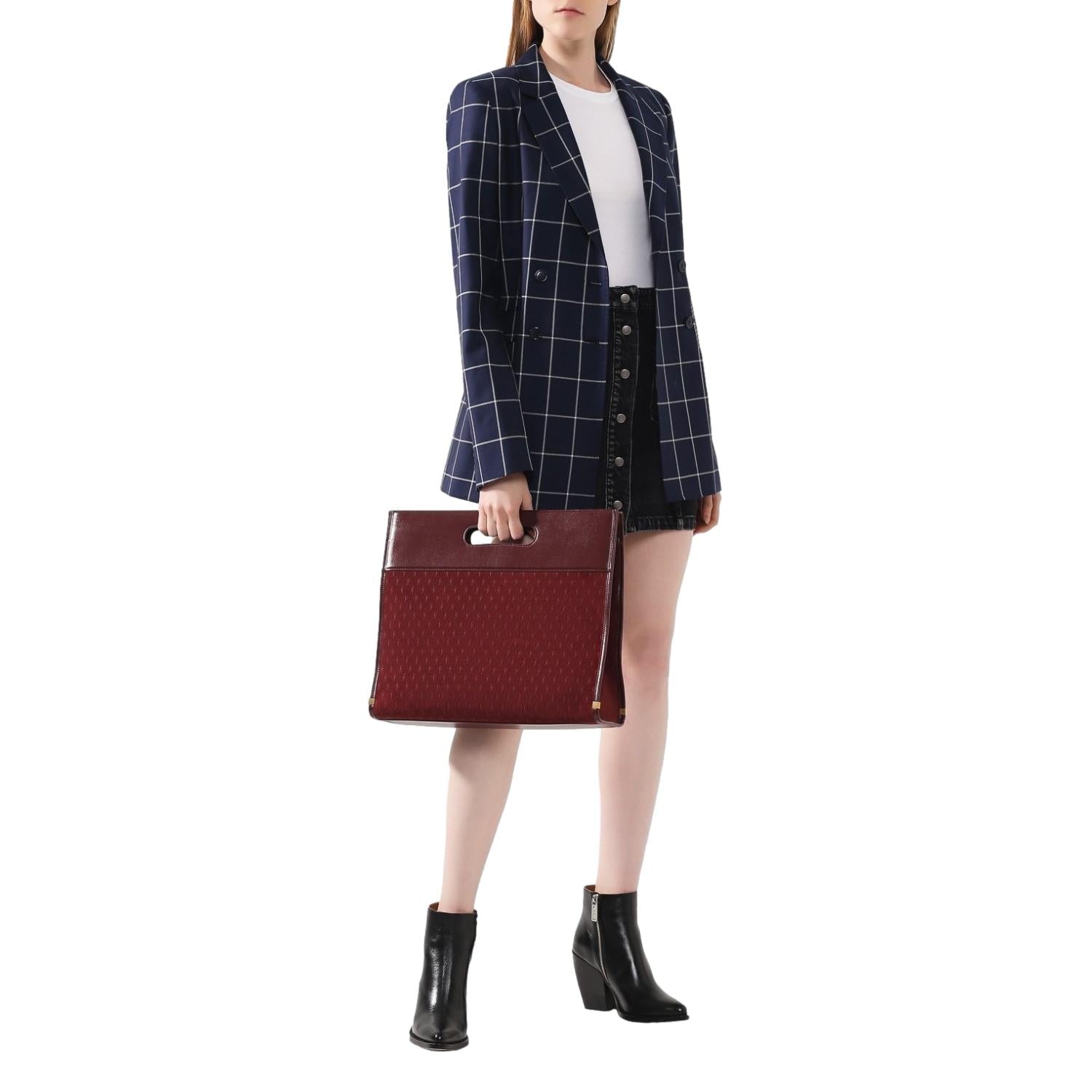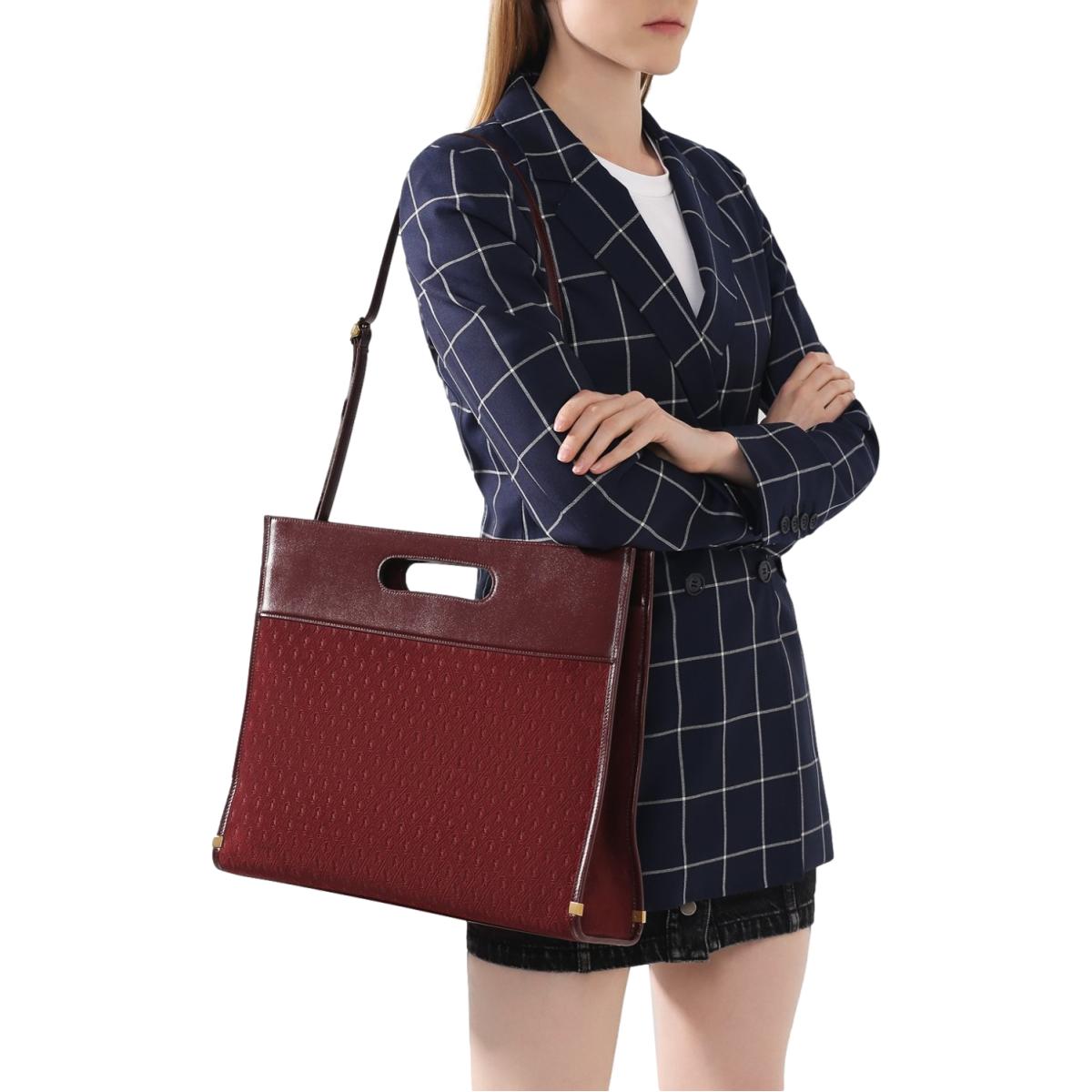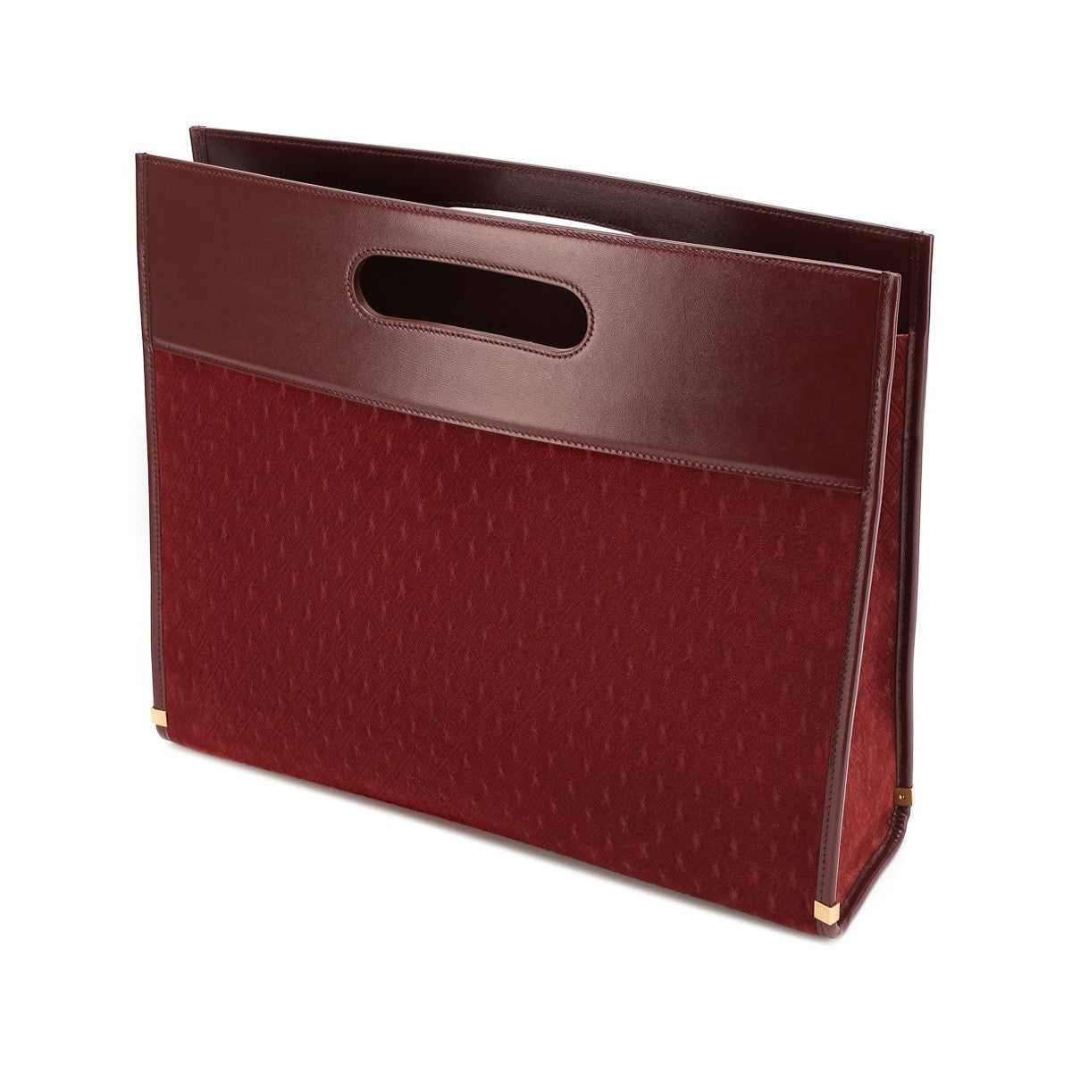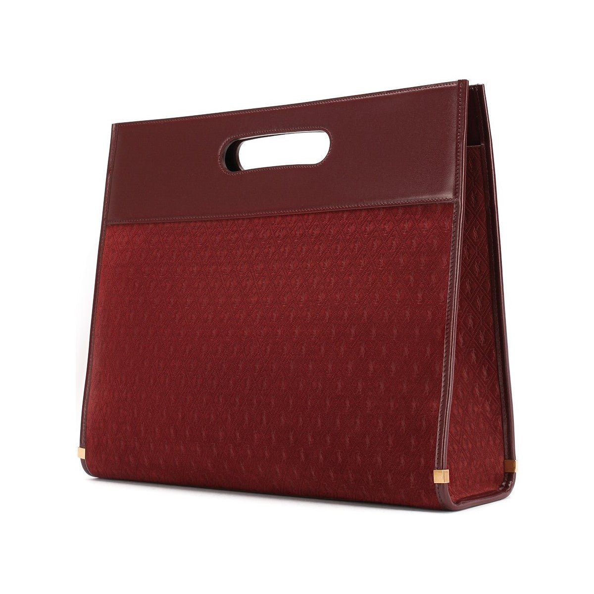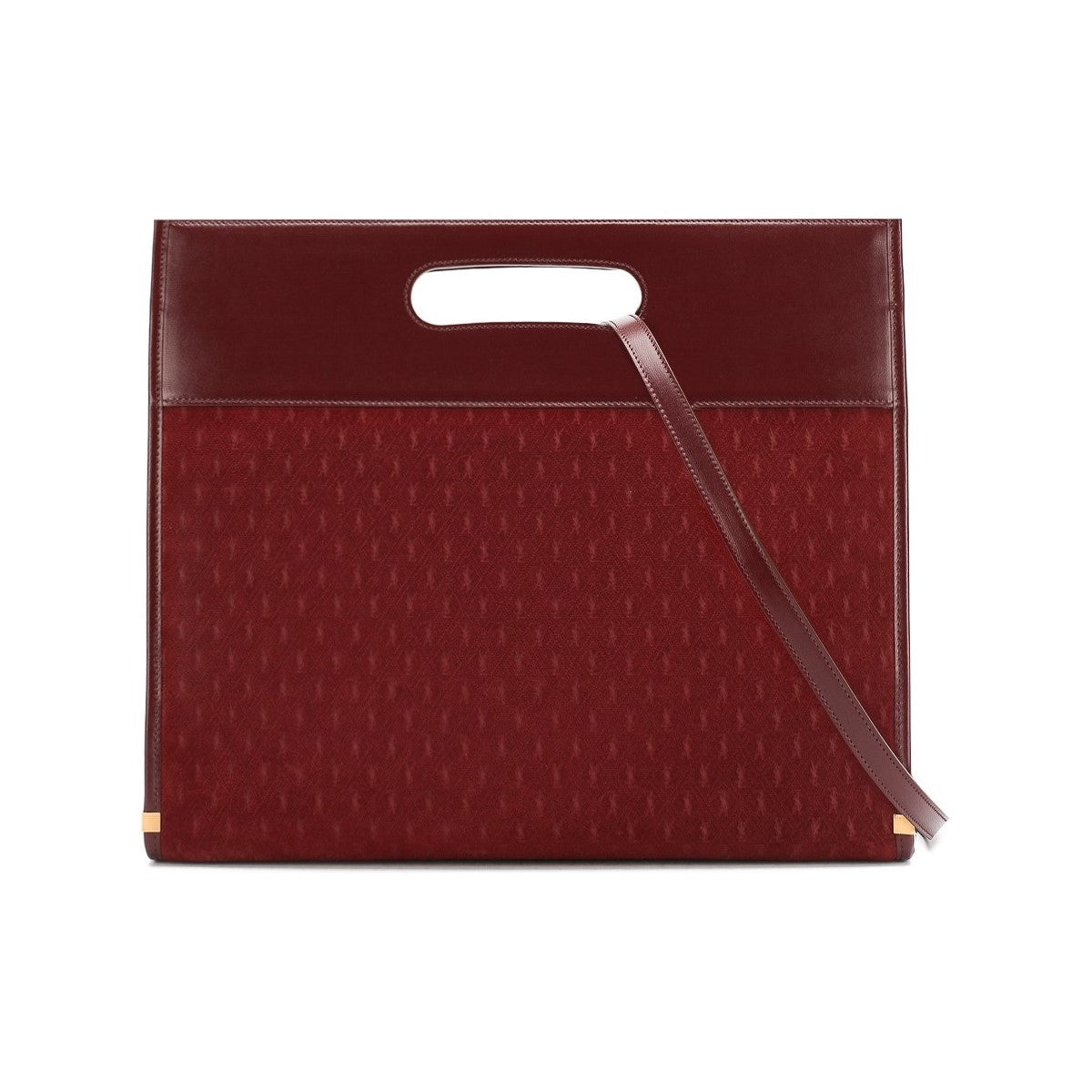 This stylish and sleek handbag with all over YSL monogram embossed red suede tote is understated yet show stopping at the same time. It can be carried as a slim portfolio with the handles and also has a detachable leather strap.