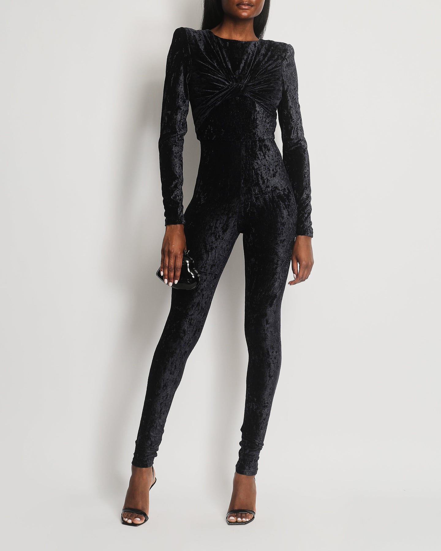 Saint Laurent Navy T2 Velvet Long Sleeve Jumpsuit with Tie Detail FR 34 (UK 6)