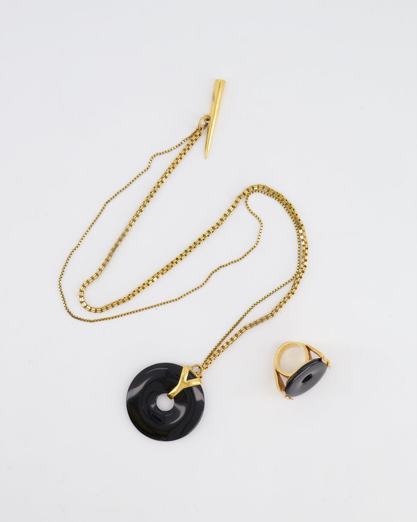 Yves Saint Laurent Vintage Black Resin and Gold Y Necklace and Ring Jewellery Set