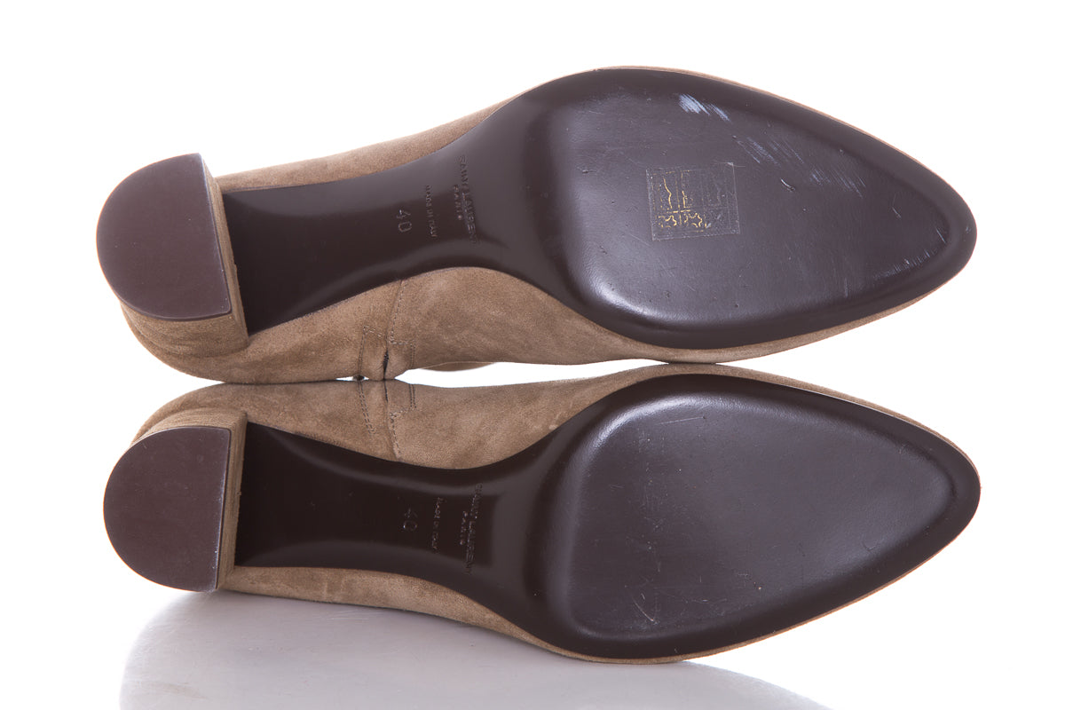 Saint Laurent Suede Taupe Booties with inner zippers for closure. This item has never been .