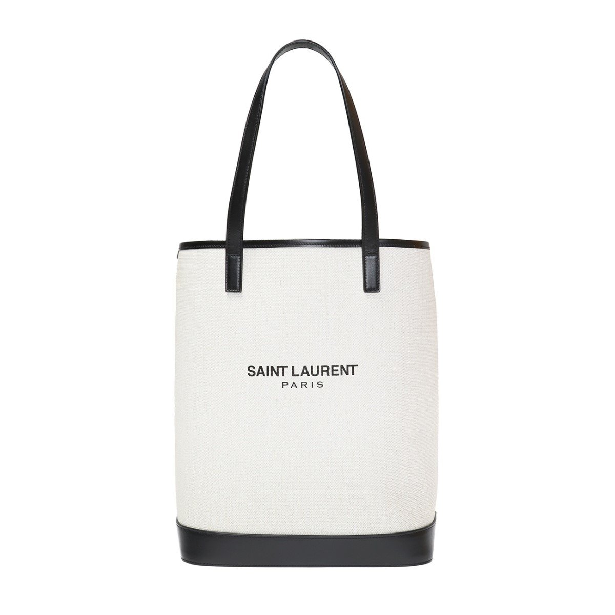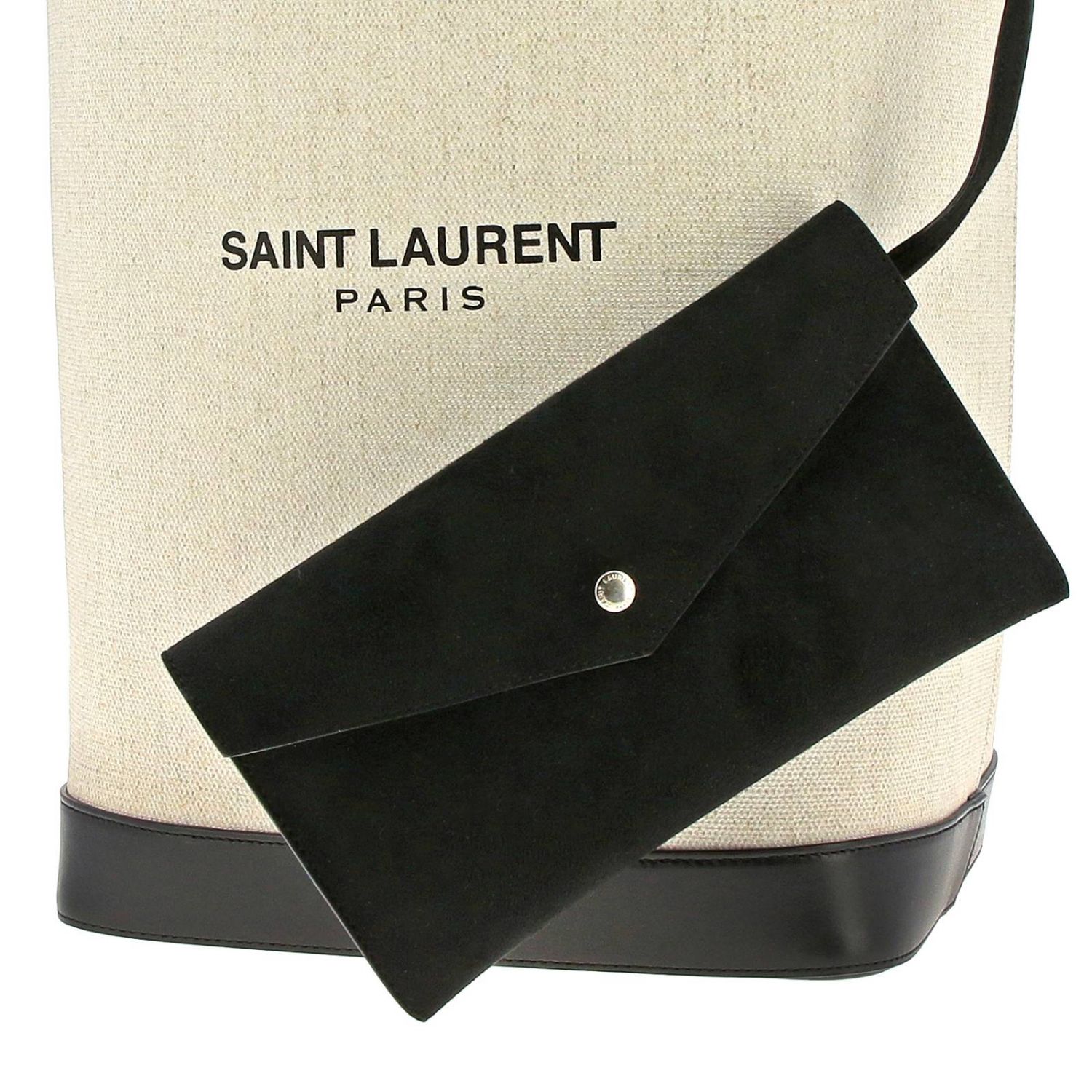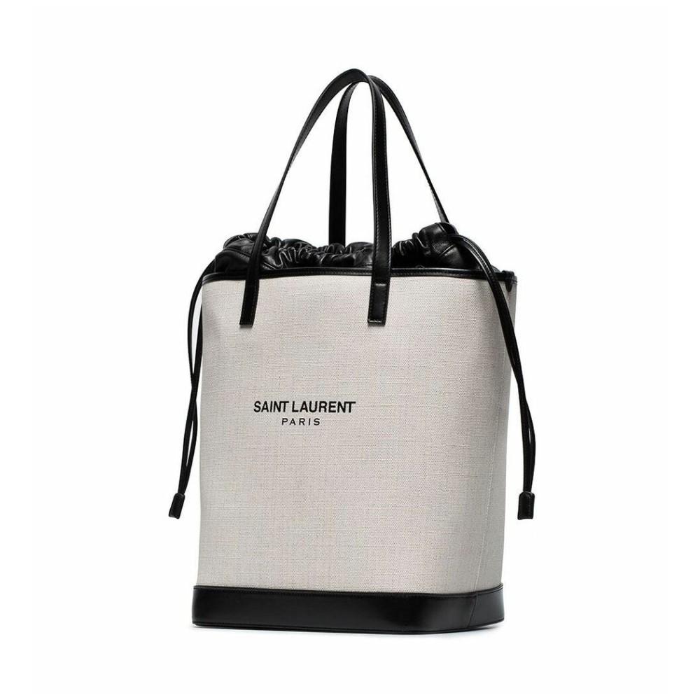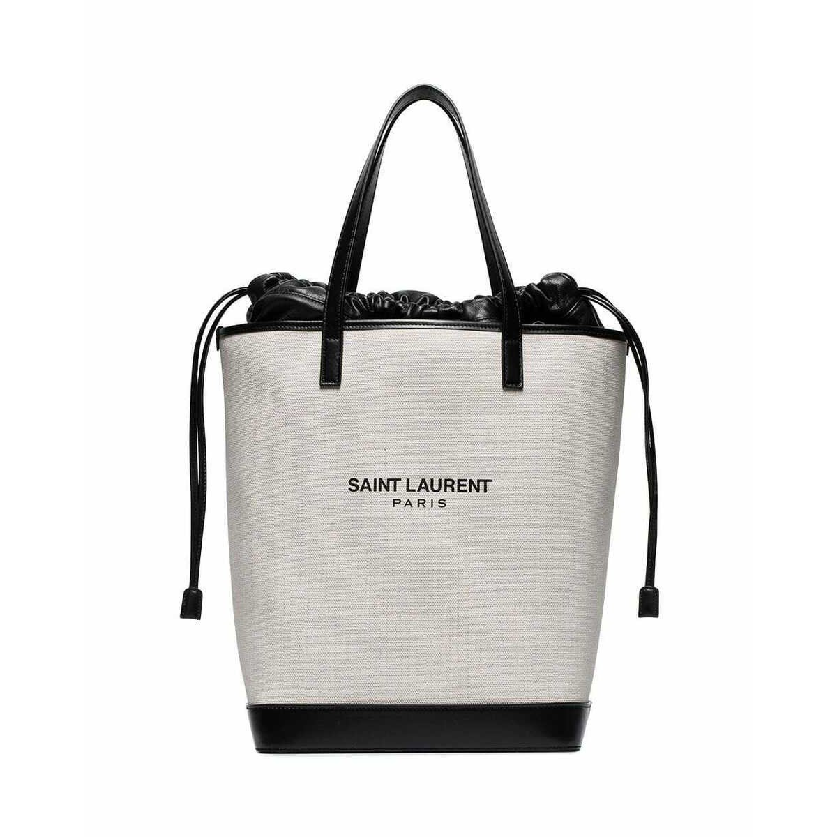 Saint Laurent Teddy White Coated Linen Drawstring Bucket Bag 551595