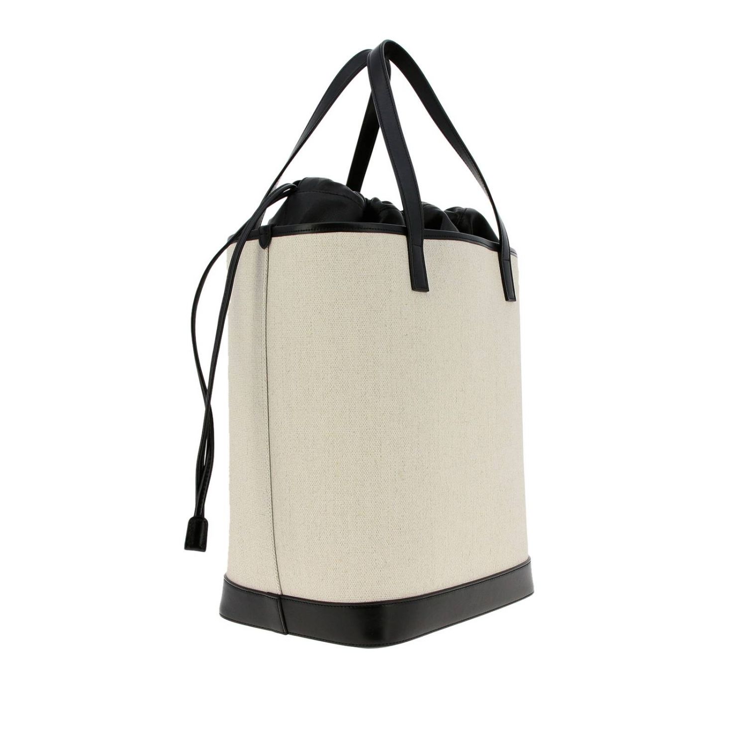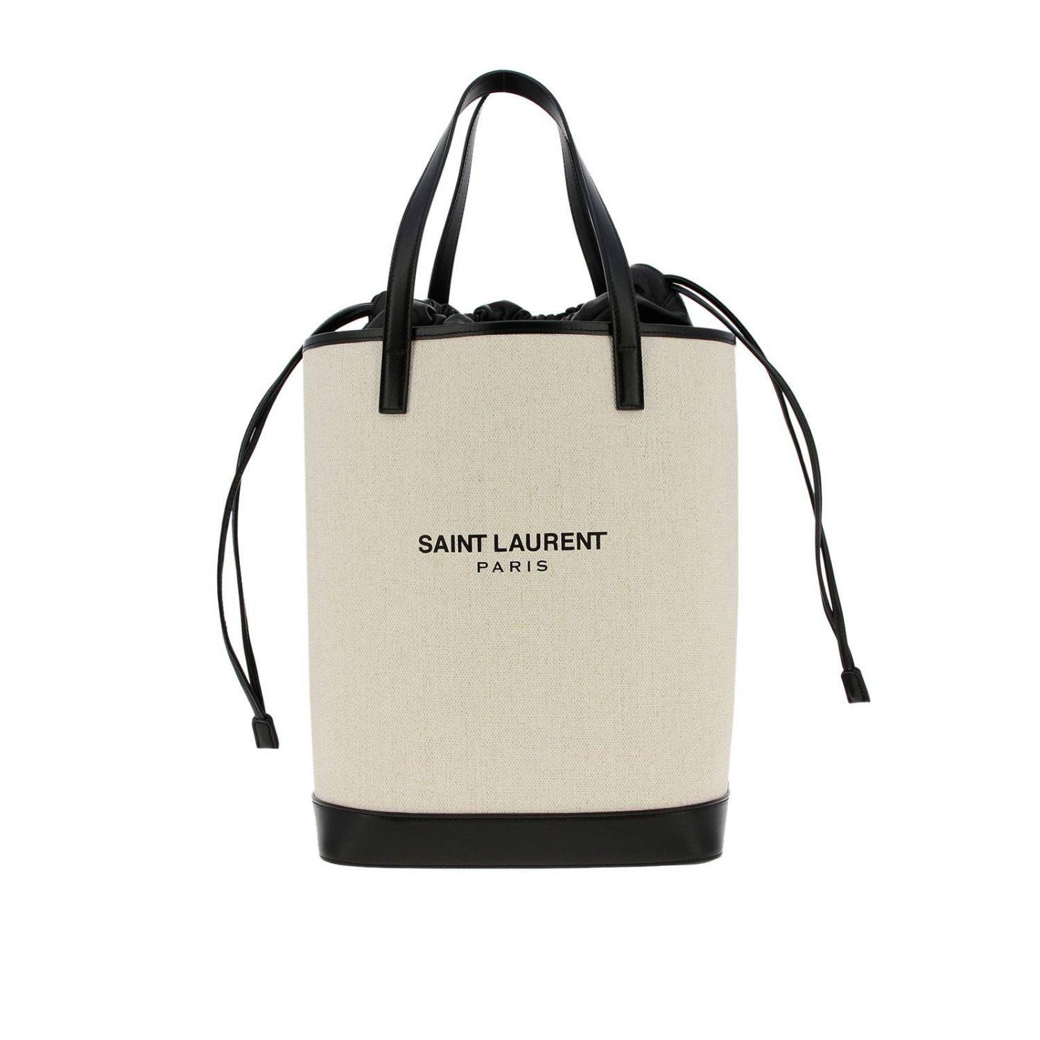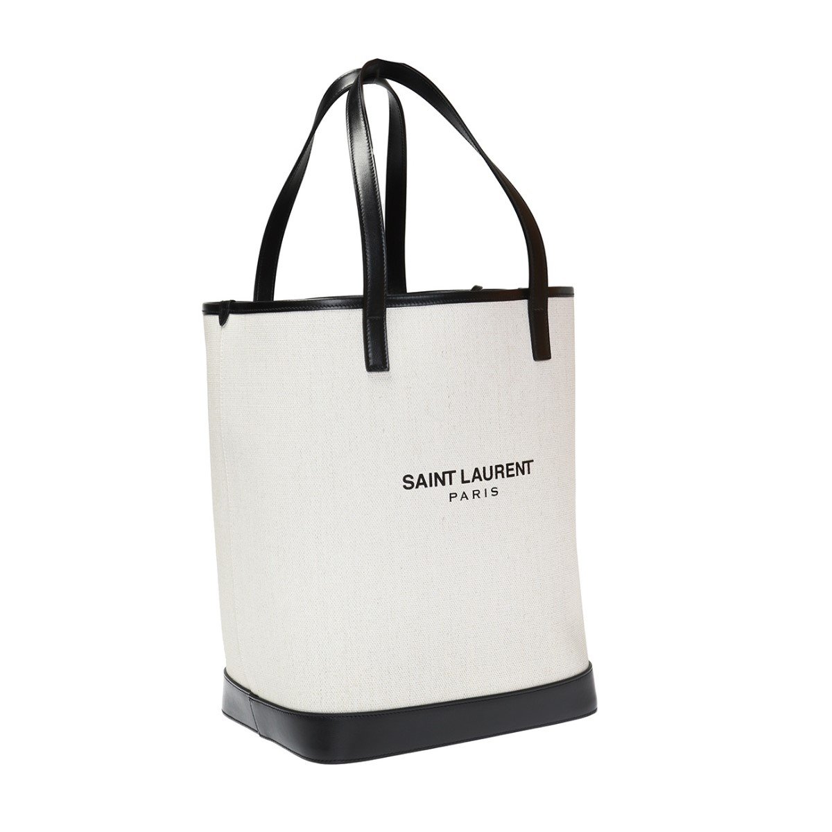 Saint Laurent Teddy White Coated Linen Drawstring Bucket Bag 551595