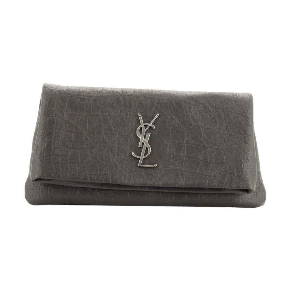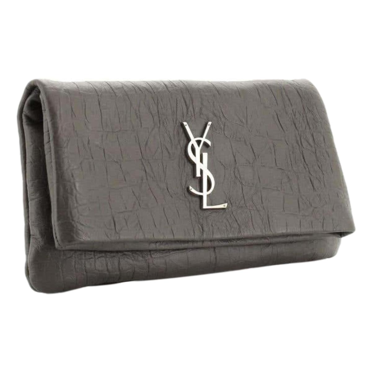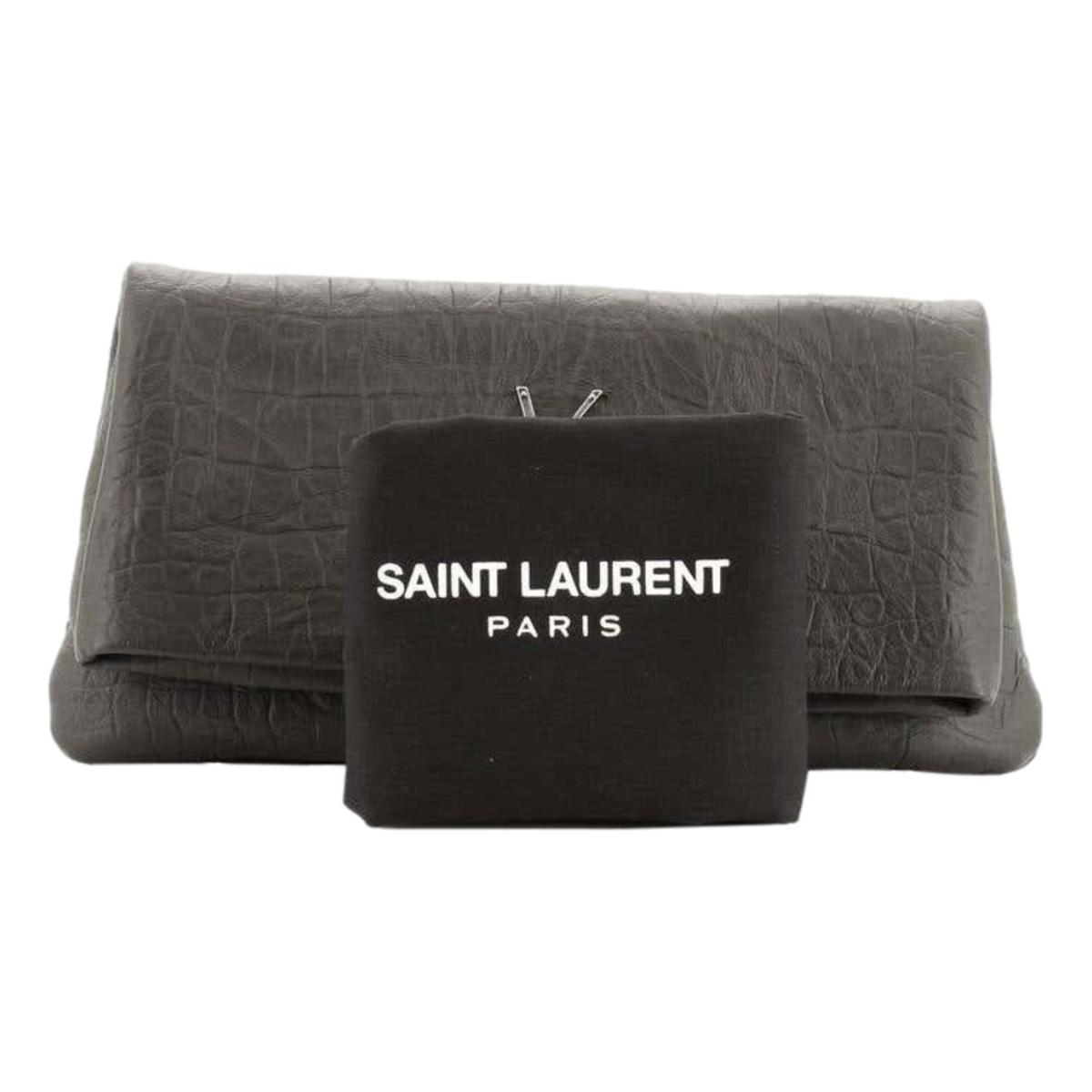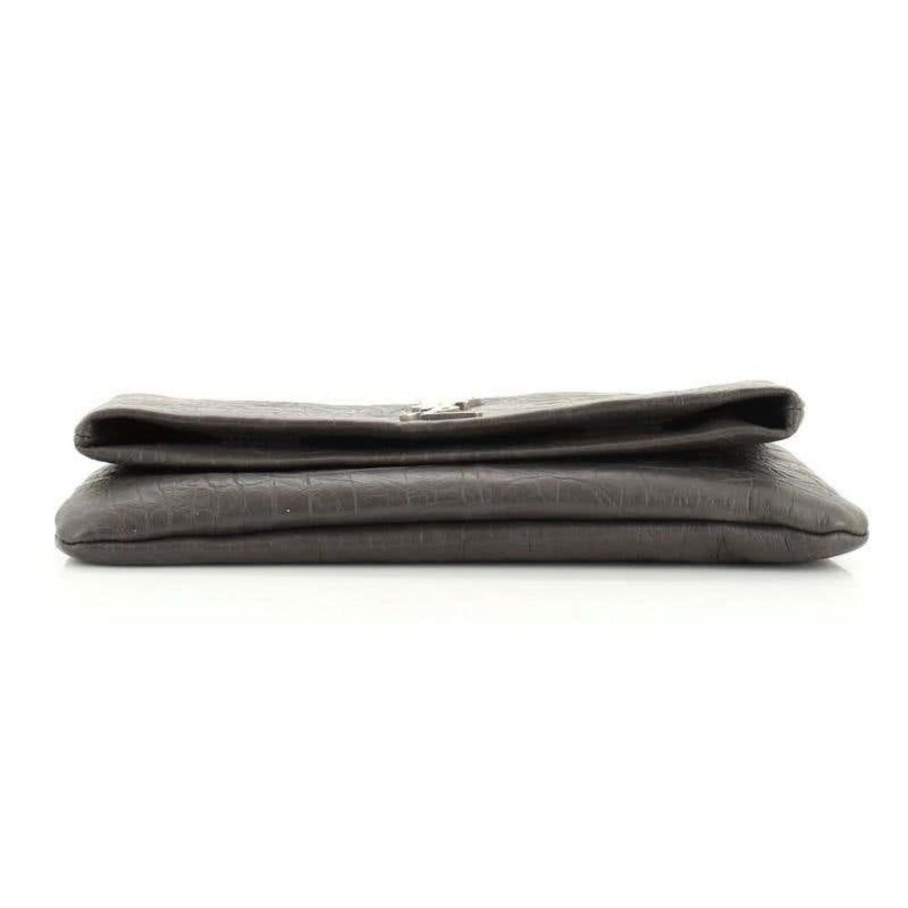 Another fabulous bag from Yves Saint Laurent! This fold over clutch is made of calf leather in crocodile pattern. Features the signature YSL monogram logo on the front. The main compartment has a magnetic closure, and is lined with black fabric.