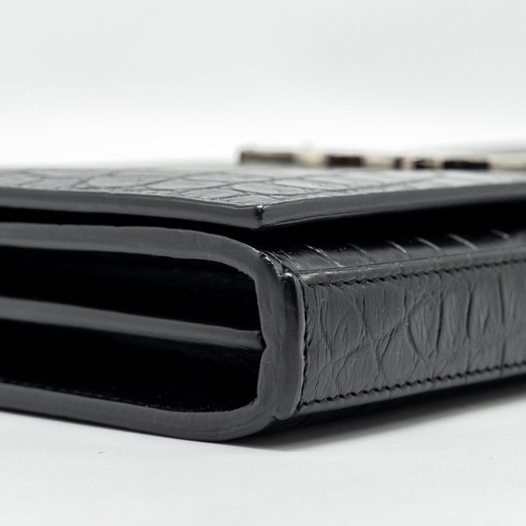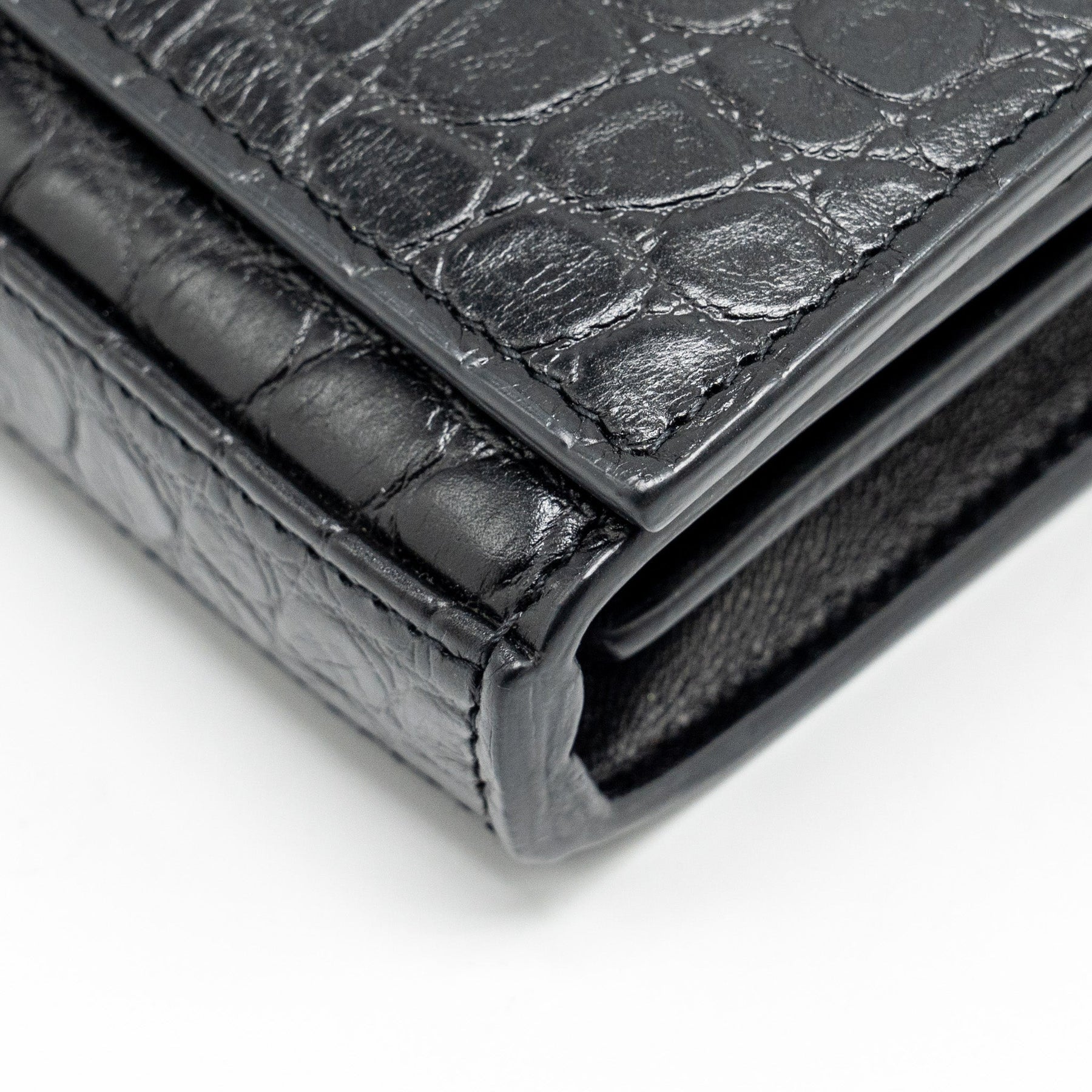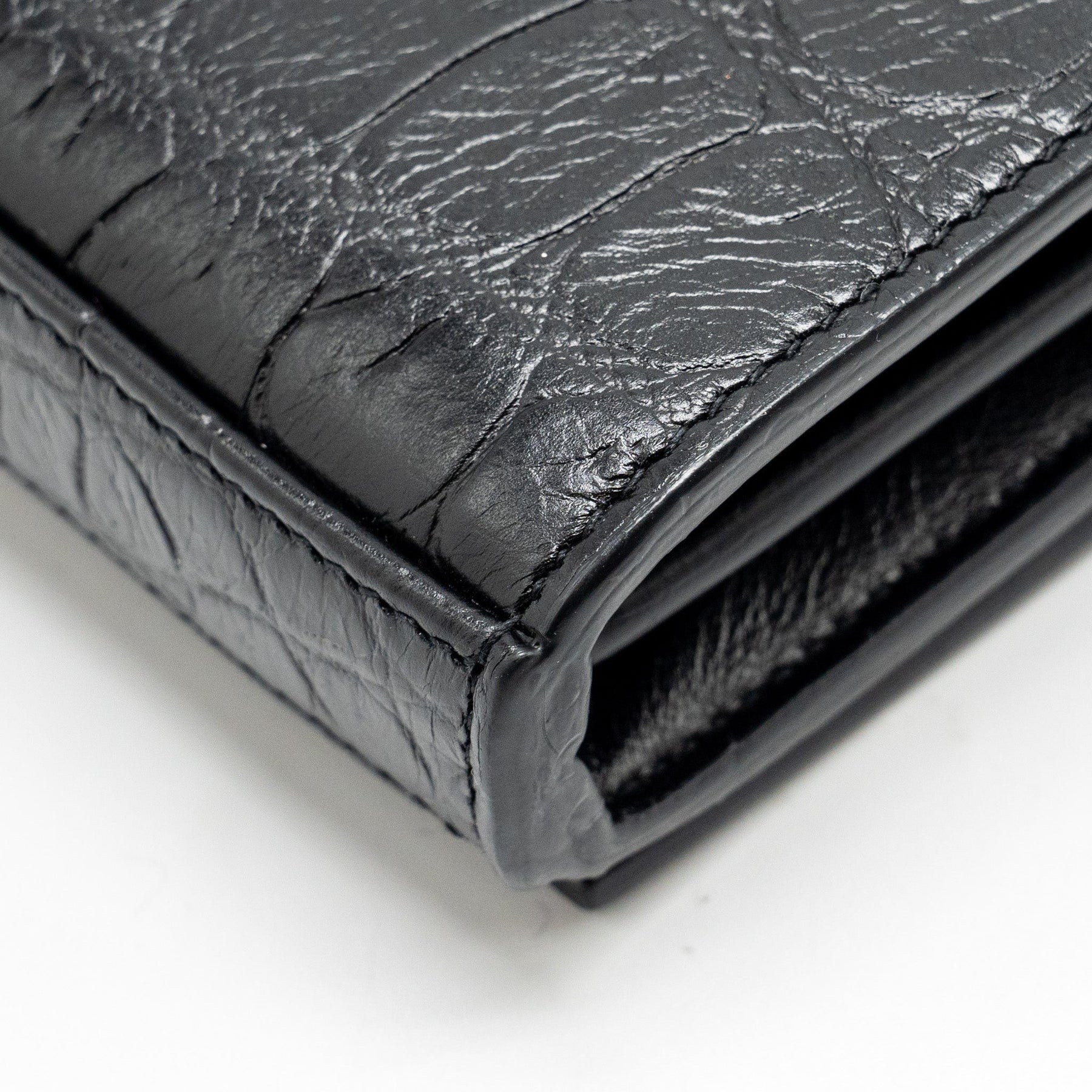 SAINT LAURENT / YSL Classic Chain Wallet Croc-Embossed Calfskin Black SHW