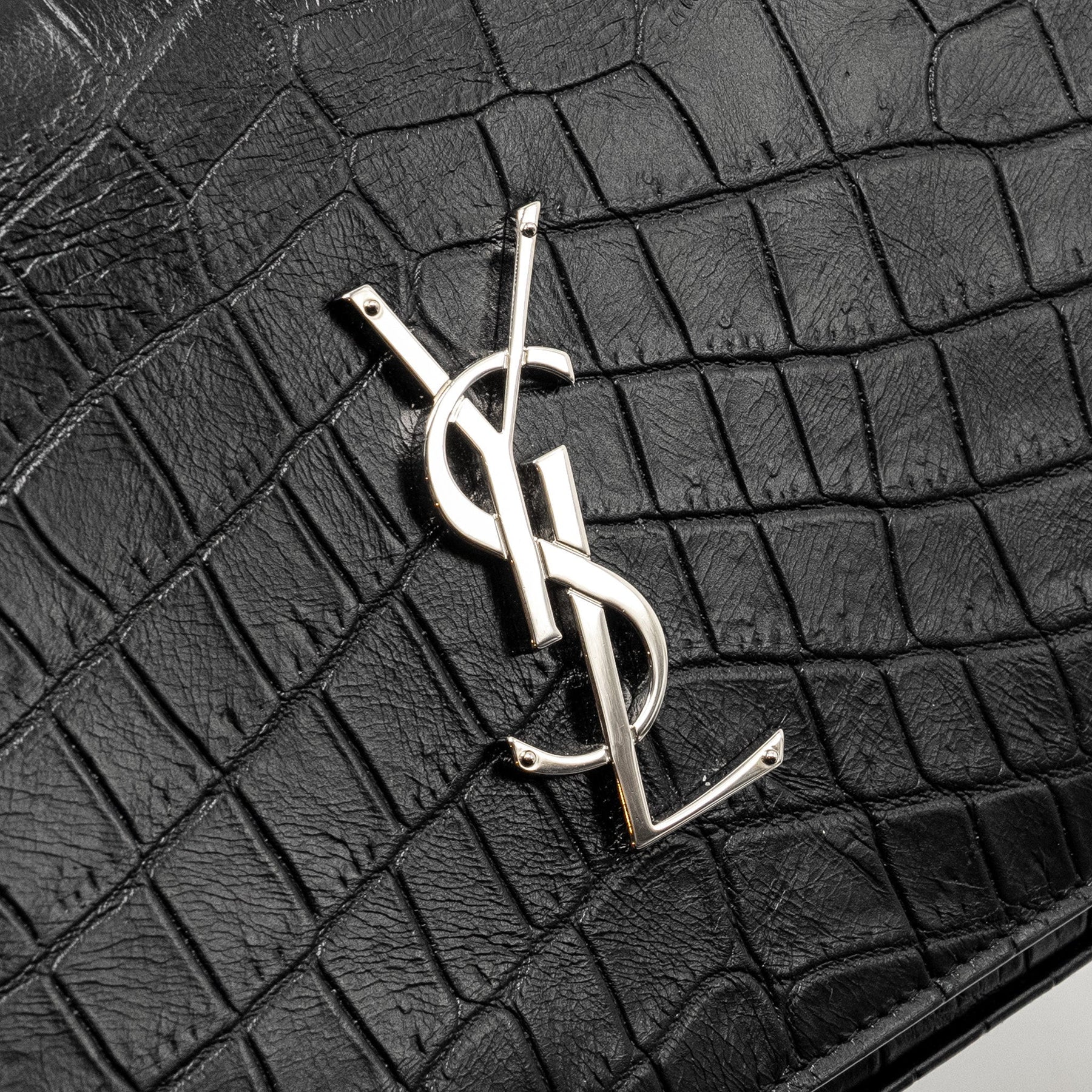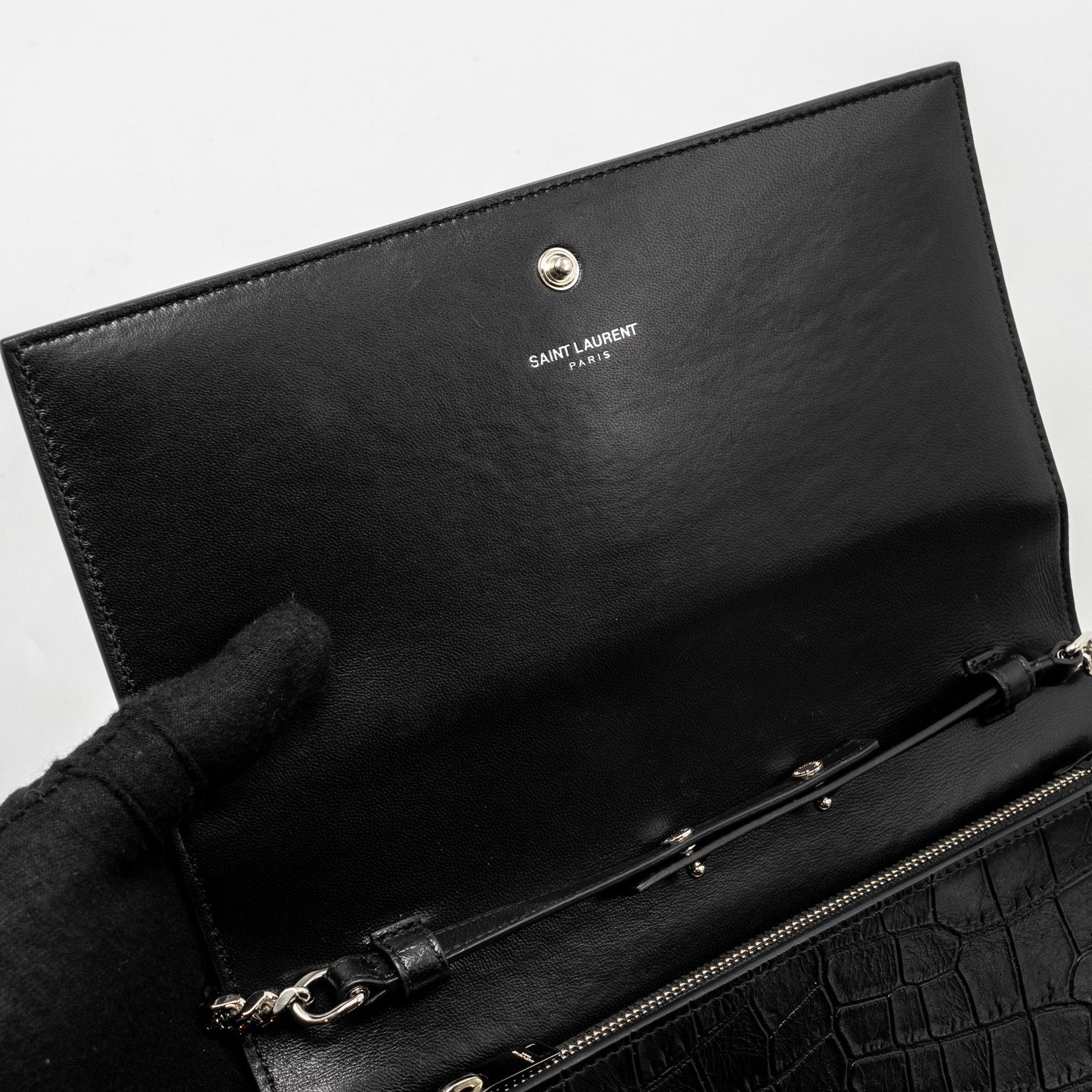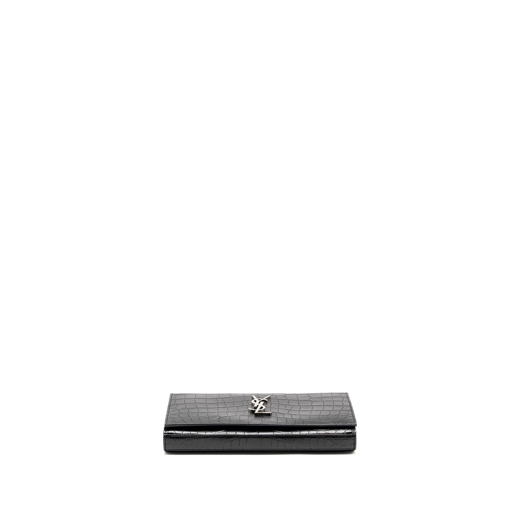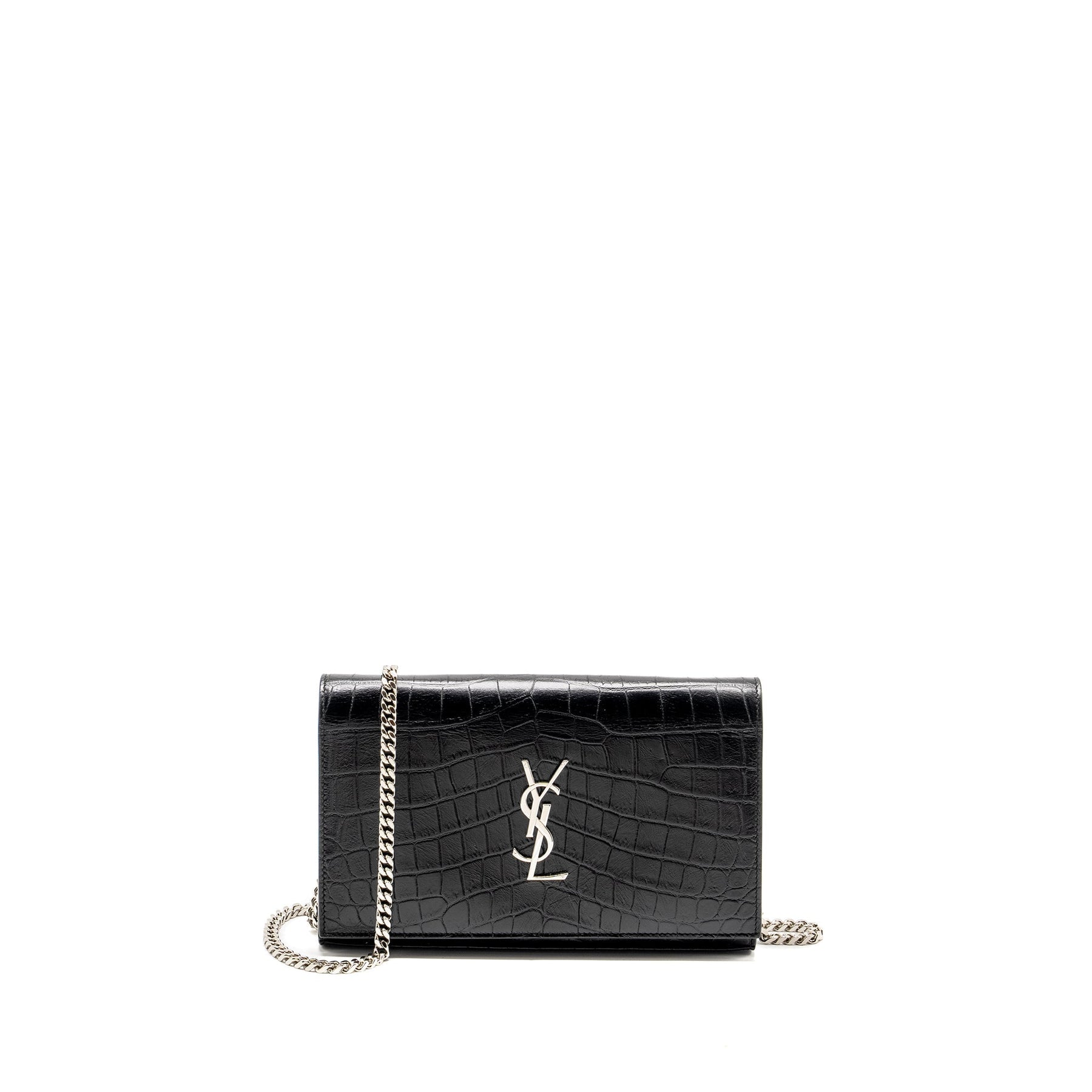 SAINT LAURENT / YSL Classic Chain Wallet Croc-Embossed Calfskin Black SHW