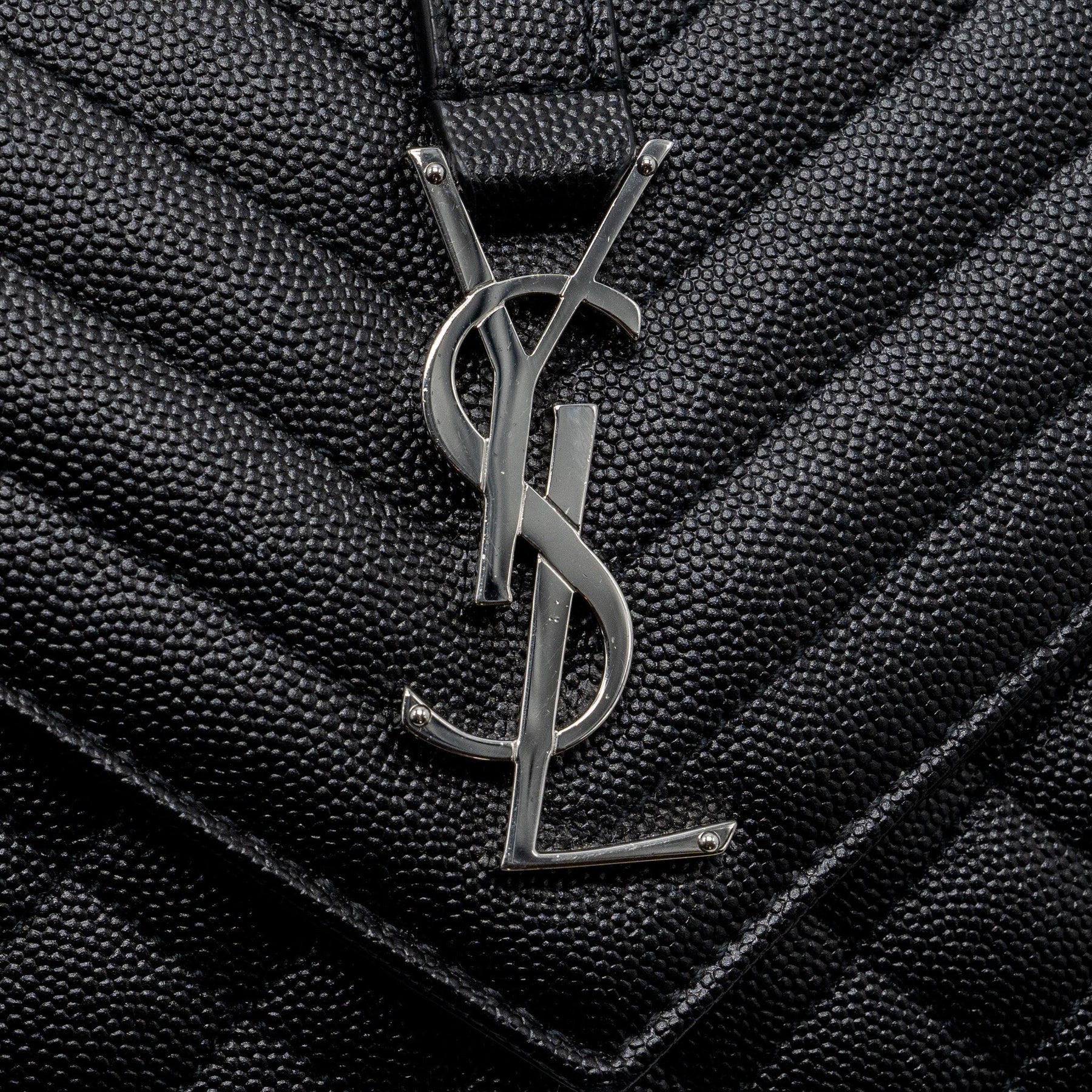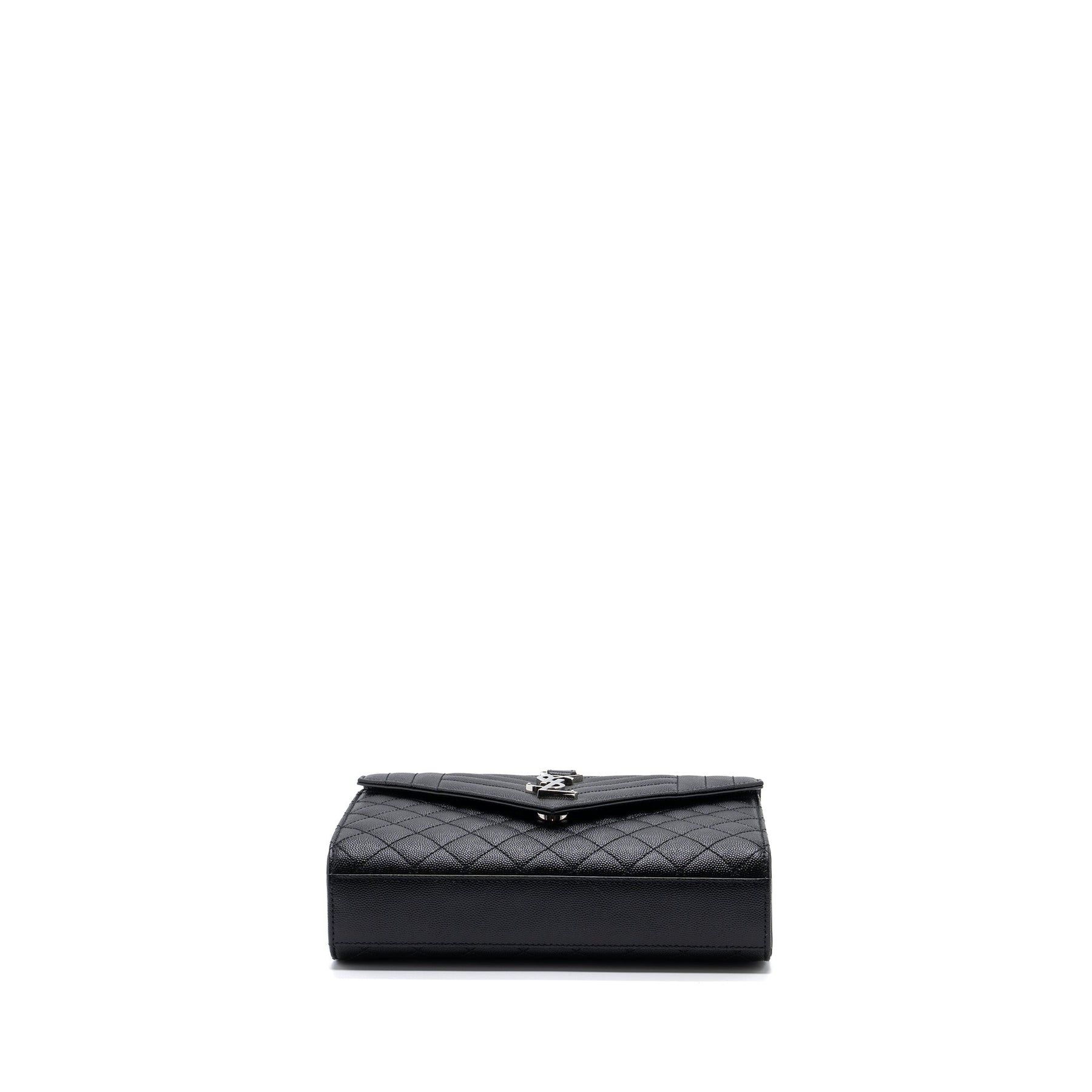 Saint Laurent/YSL Envelope Medium Chain Bag Grained Calfskin Mix Matelasse Black SHW