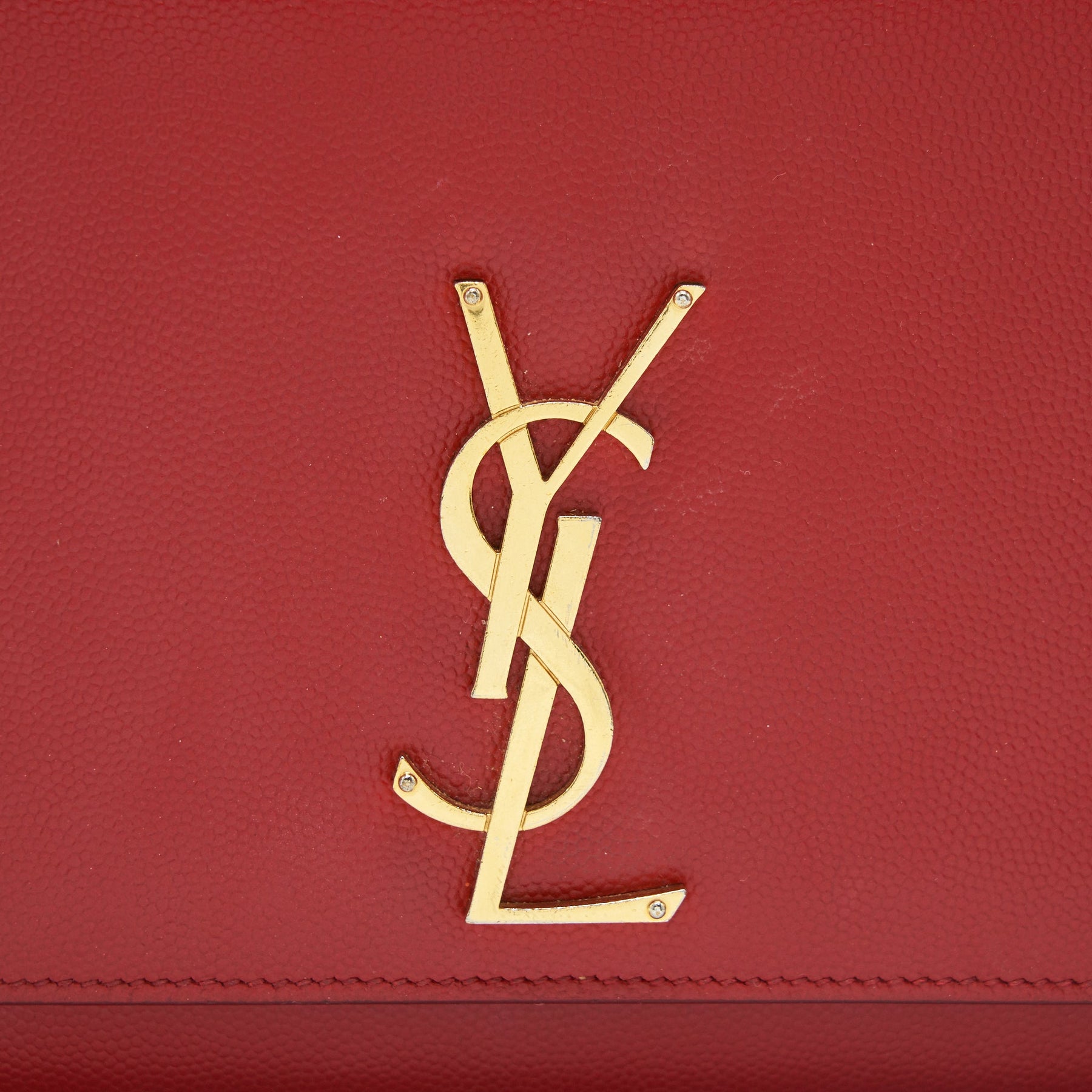 Saint Laurent /YSL Grained Calfskin Medium Kate Bag Red GHW