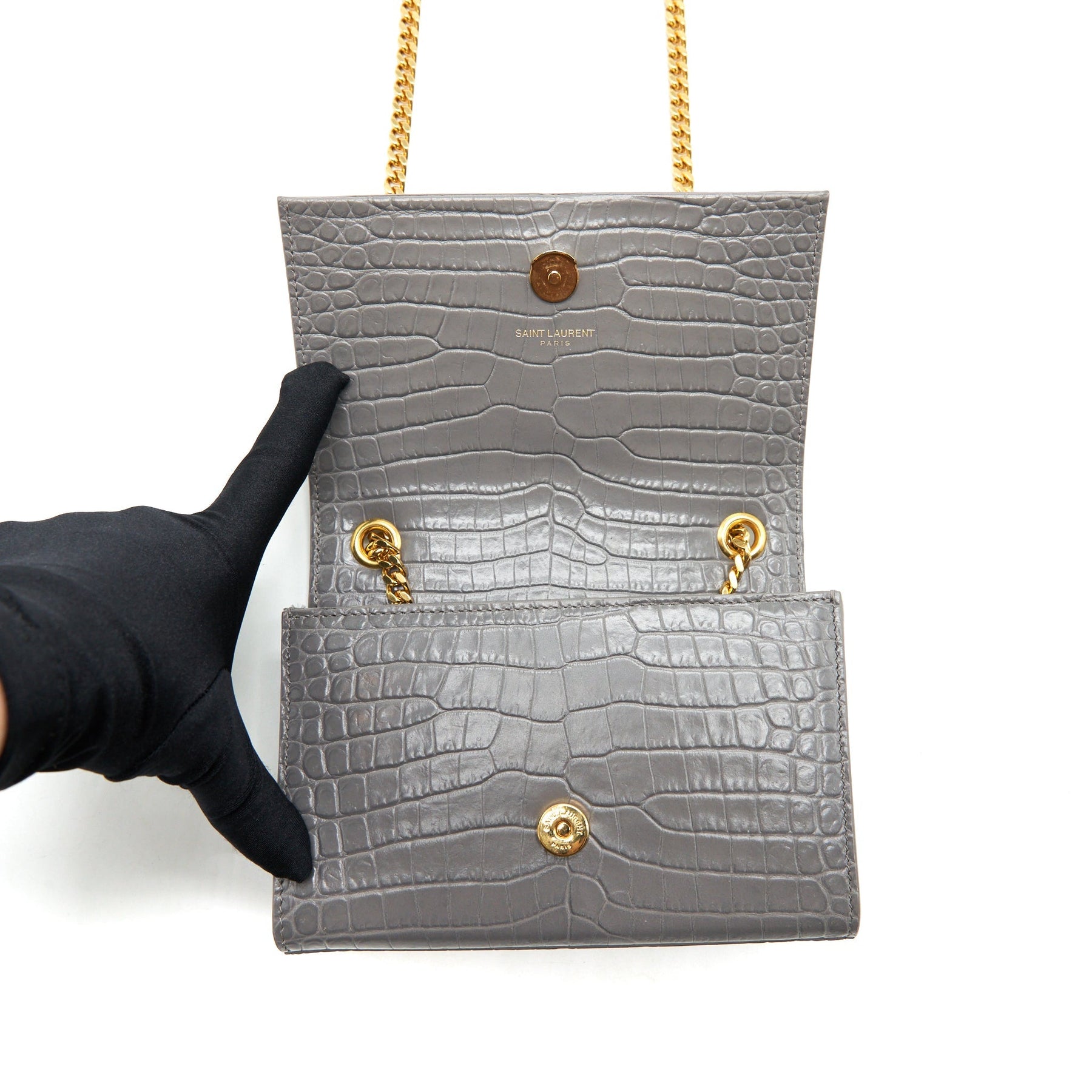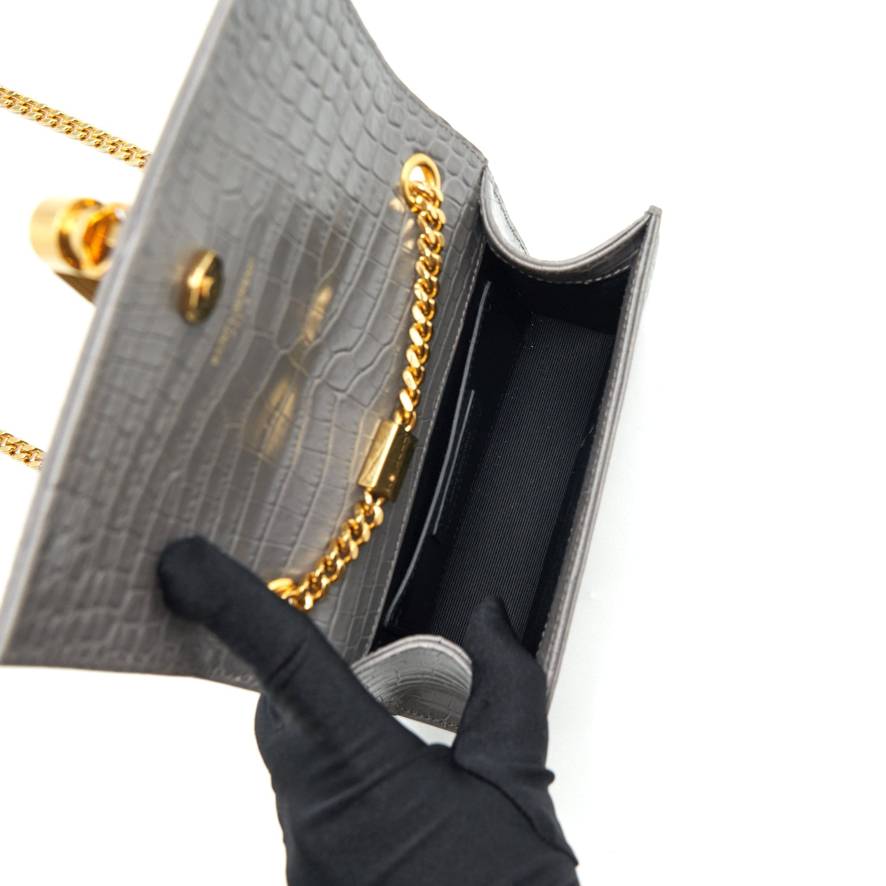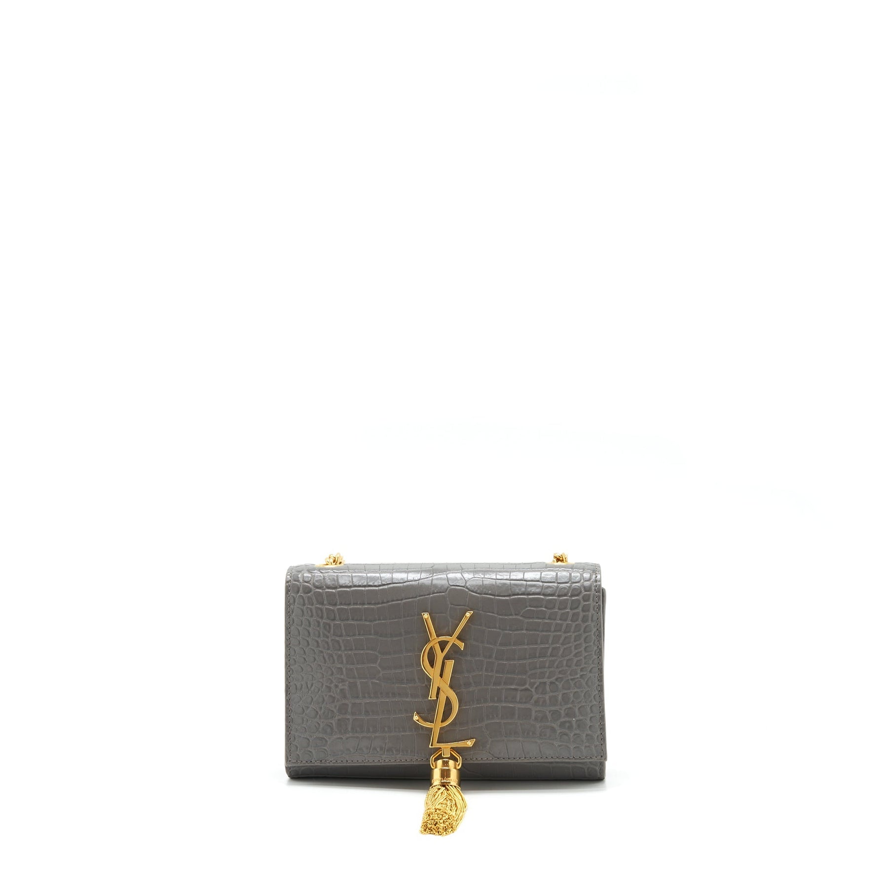 Saint Laurent/YSL Kate Tassel Croc Embossed Calfskin Grey GHW