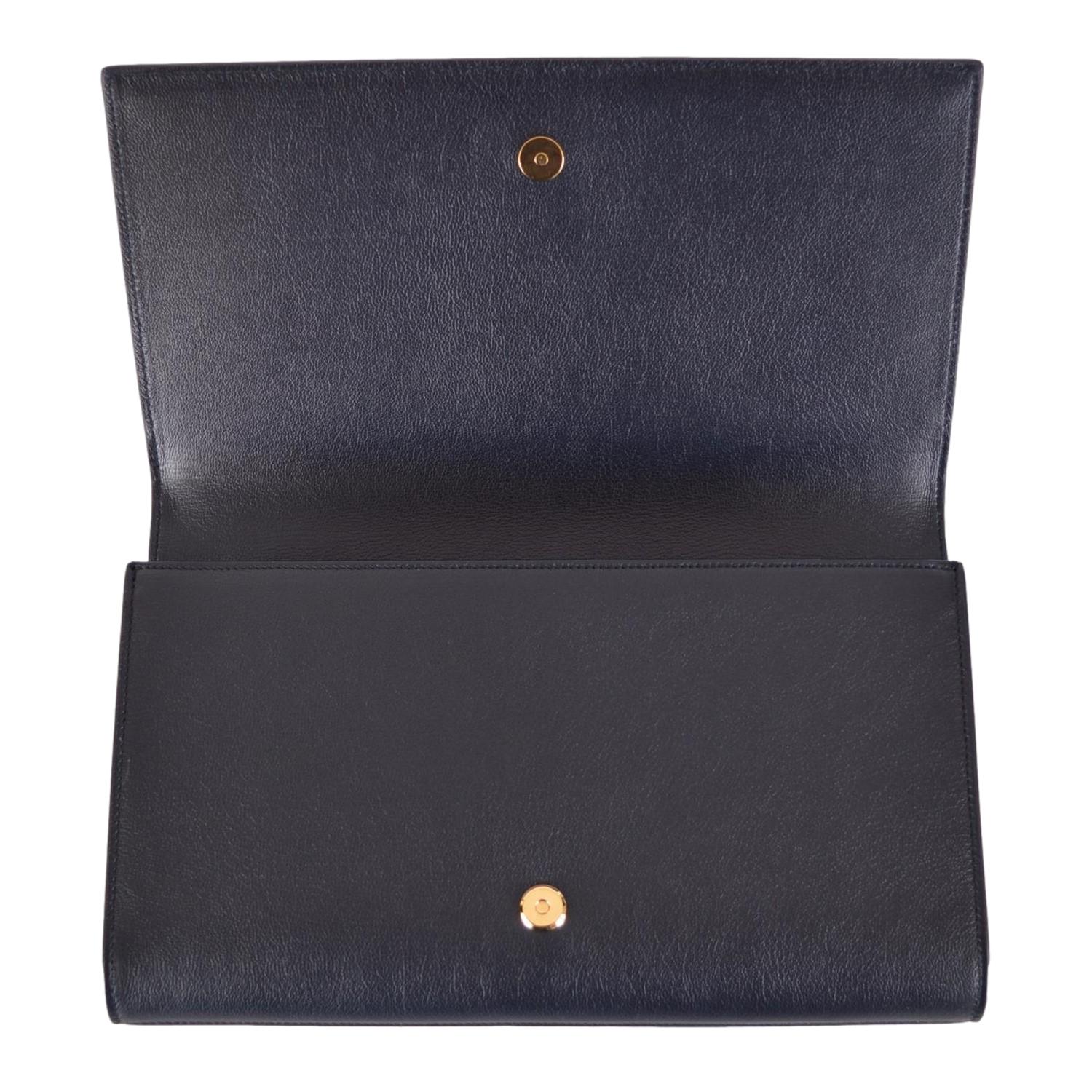This sleek and sexy clutch will go with any outfit day or evening. It is roomy enough to hold several essential items for night out on the town. This item ships with authenticity cards and a Saint Laurent dust bag.