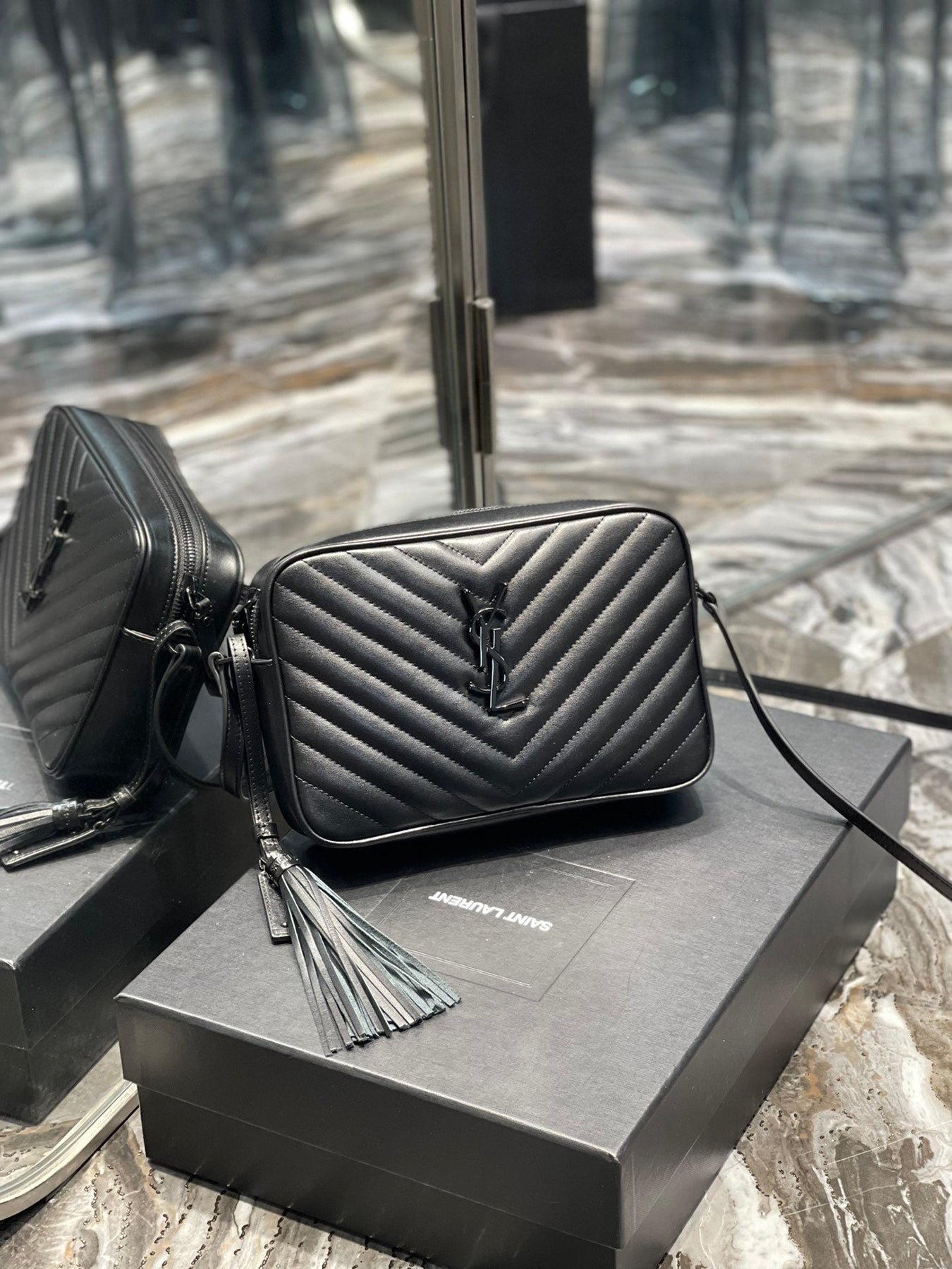 SAINT LAURENT MONOGRAM SHOULDER BAG FEATURING AN ADJUSTABLE LEATHER STRAP, REMOVABLE LEATHER TASSEL, INTERLACED YSL INITIALS IN METAL AT THE CENTER AND QUILTED OVERSTITCHING.
