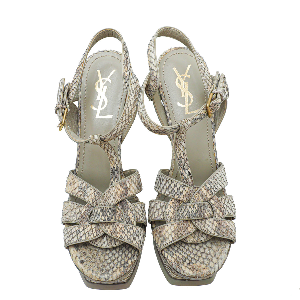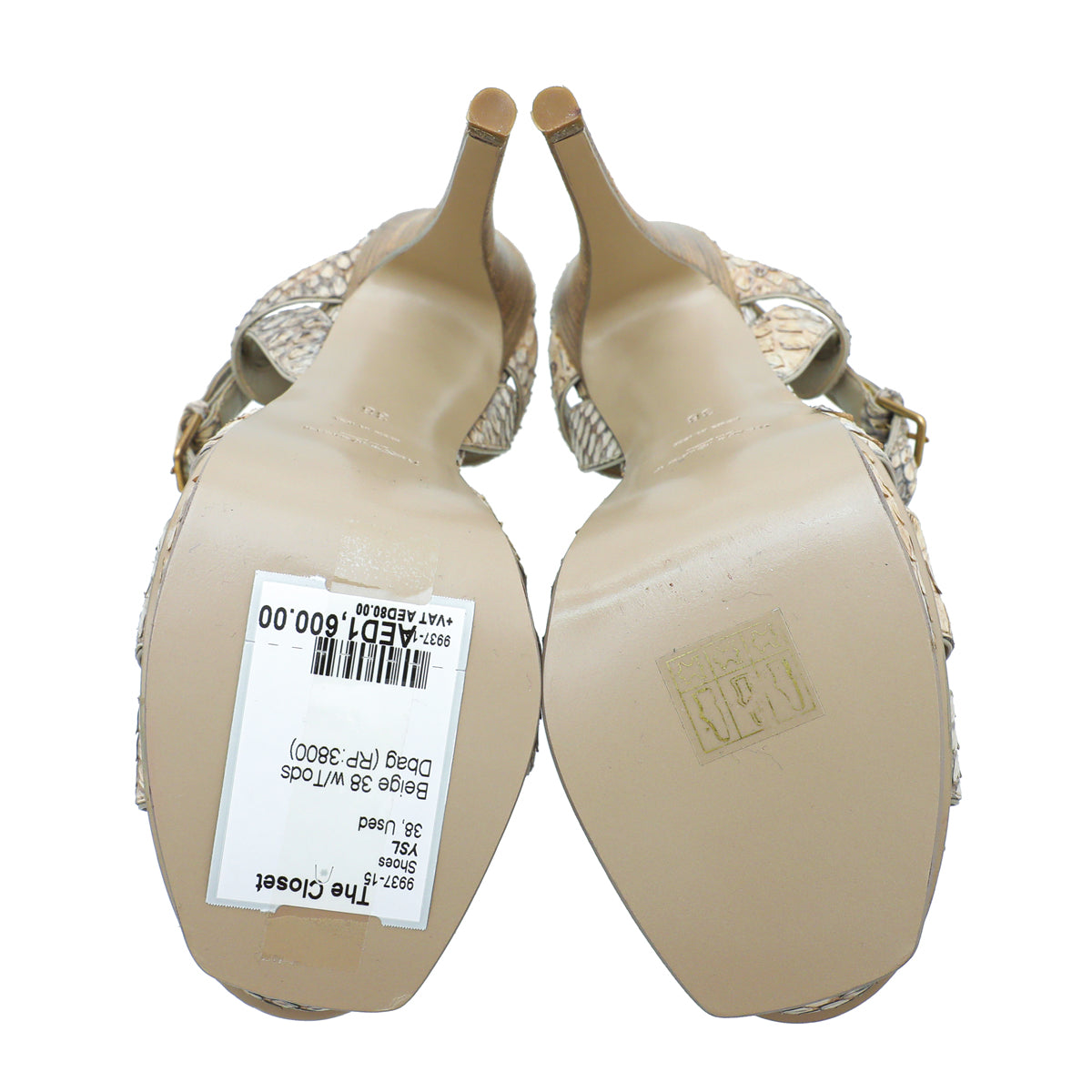 - Material: Beige Python Print Leather