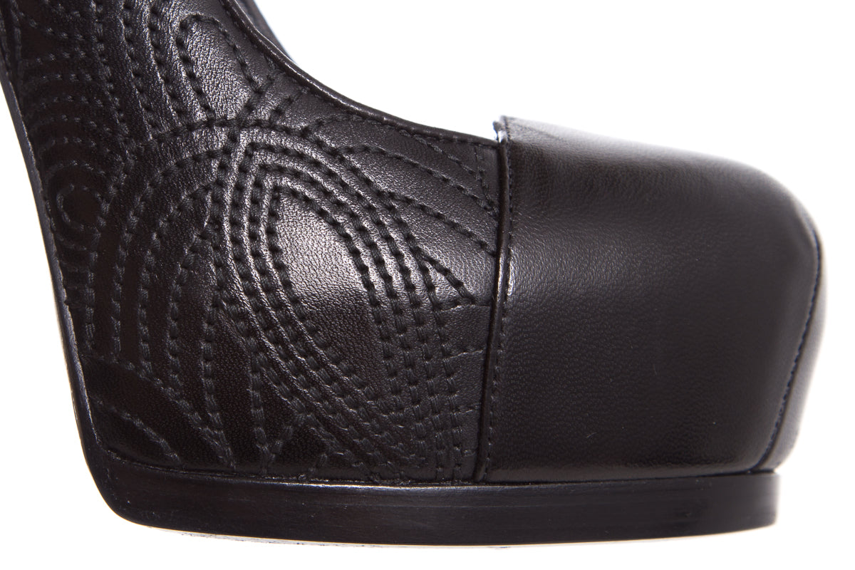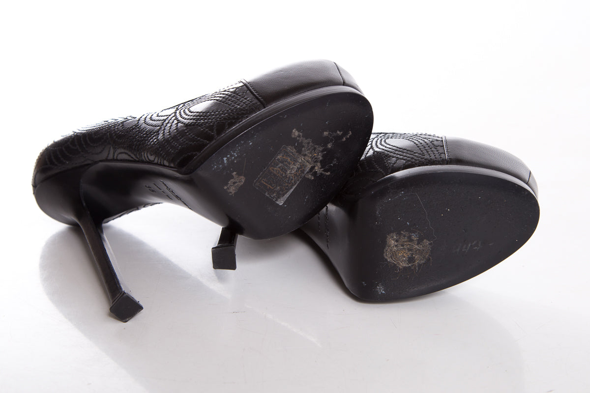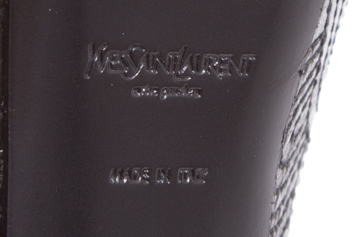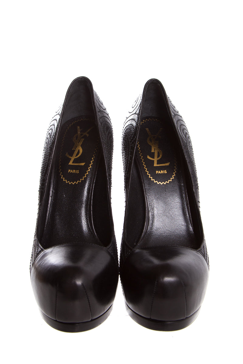 YSL Black embroidery Platform Heels with round toe. This item is in good condition with some wear to soles.