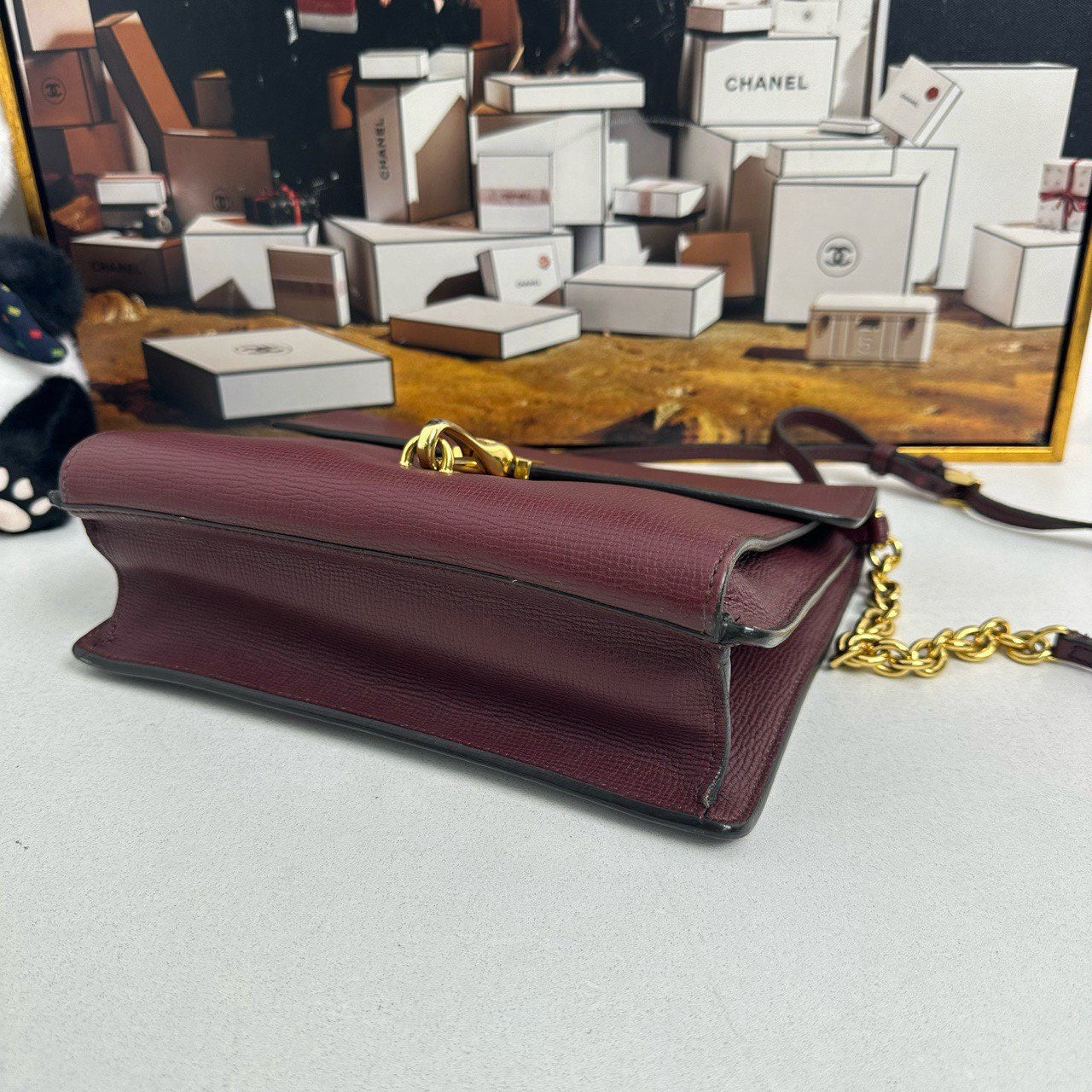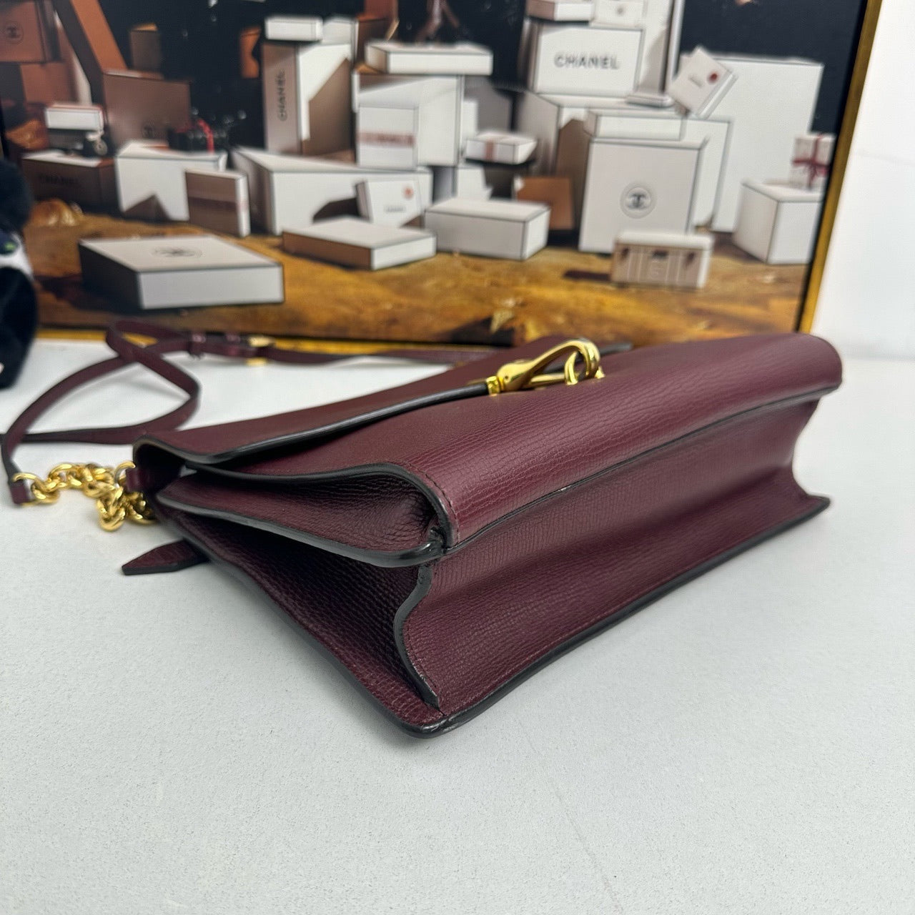 This Burberry crossbody bag is perfect for those who appreciate vintage Burberry bags with a touch of modern elegance. Crafted from premium burgundy leather, it features a chic gold chain strap and leather detailing. The interior offers ample space lined in beige fabric for your daily essentials. Whether you're a collector or simply adore used designer handbags, this piece is a must-have addition to your wardrobe.