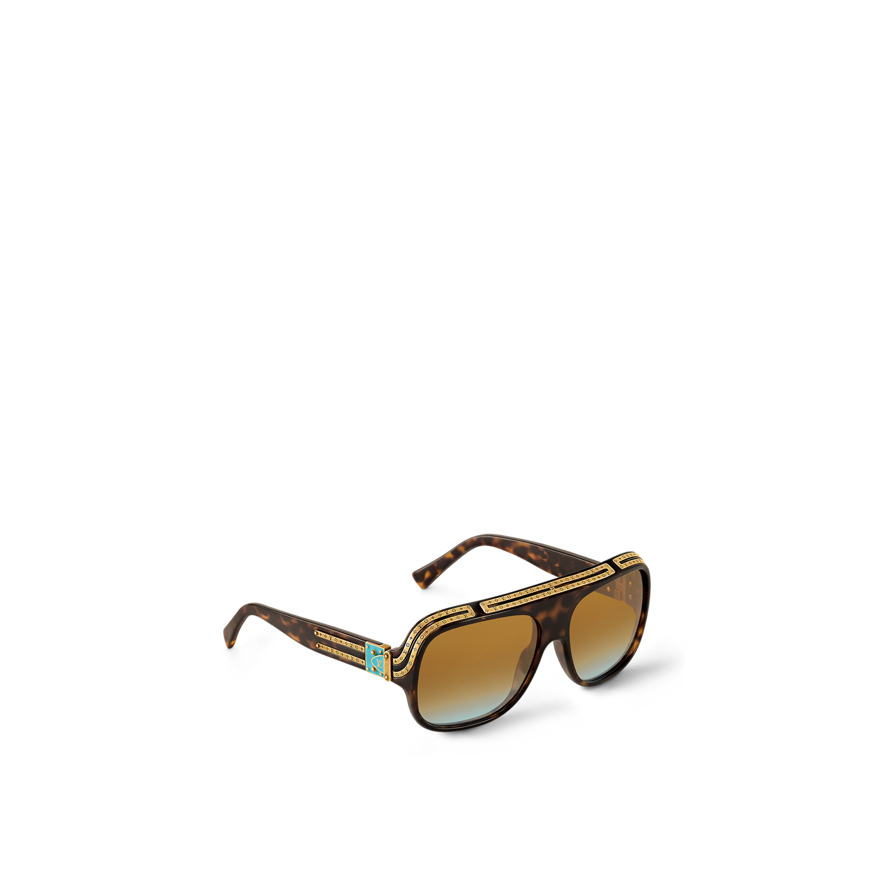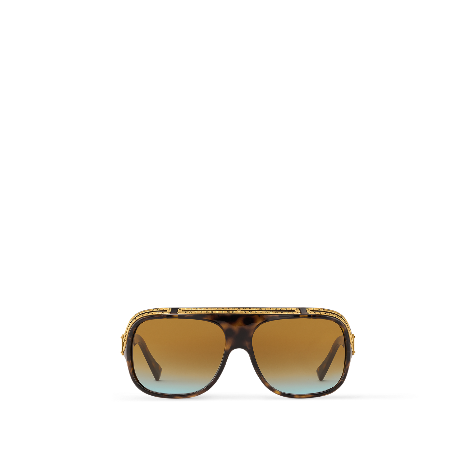 Celebrating the 20th anniversary of the iconic 1.0 Millionaires Sunglasses, Pharrell Williams revisits his original design with a fresh and sophisticated new model available in two colours. The vintage pilot shape, crafted from injected acetate, is adorned with Monogram-engraved double bars with an aged gold finish running from the bridge to the temples, while beautifully crafted metal and enamel hinges adorned with LV signatures recall the House’s heritage trunks.