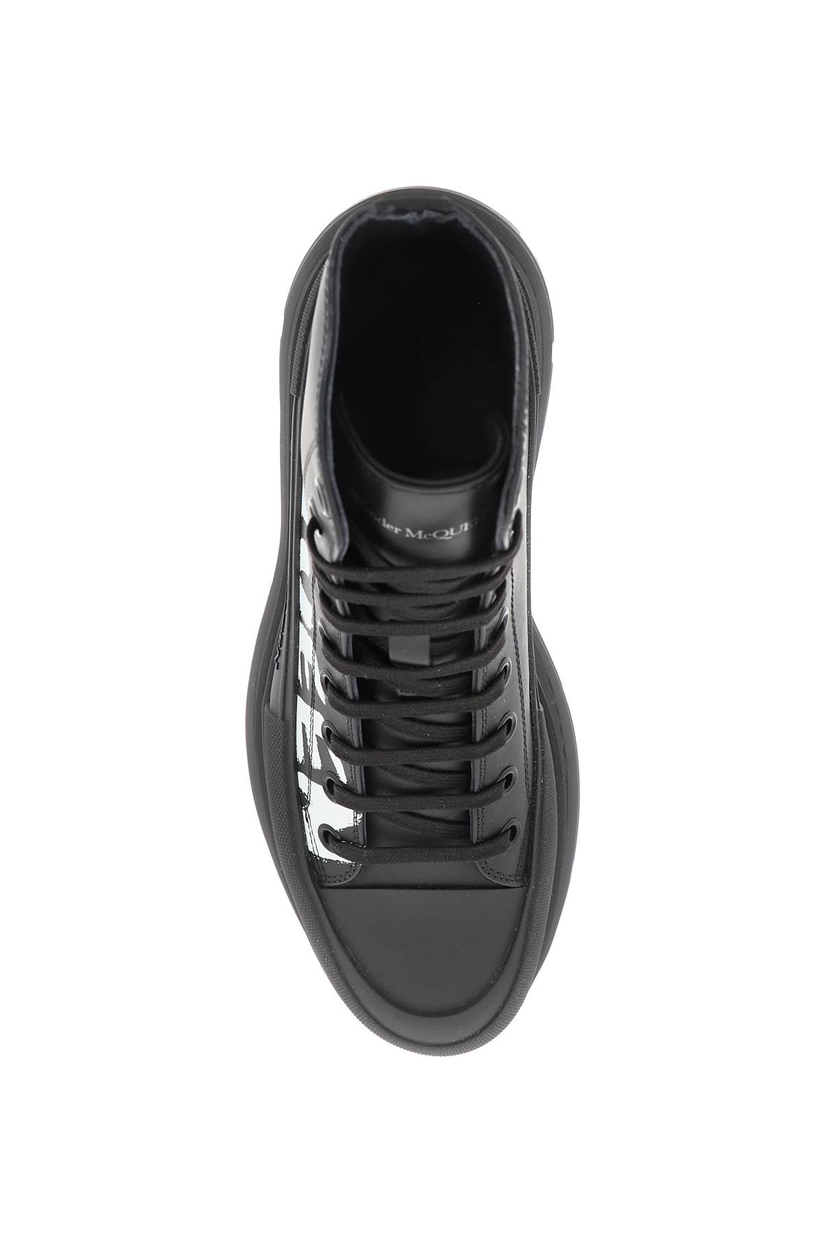 Elevate your street style with these TREAD SLICK ANKLE BOOTS. Featuring a bold and contrasting graffiti logo print on the side, these boots exude a youthful and urban vibe that will make a statement wherever you go. The silver-tone metal eyelets, logo tab on the back, and silver-tone printed logo on the tongue add a touch of edgy sophistication to these boots.