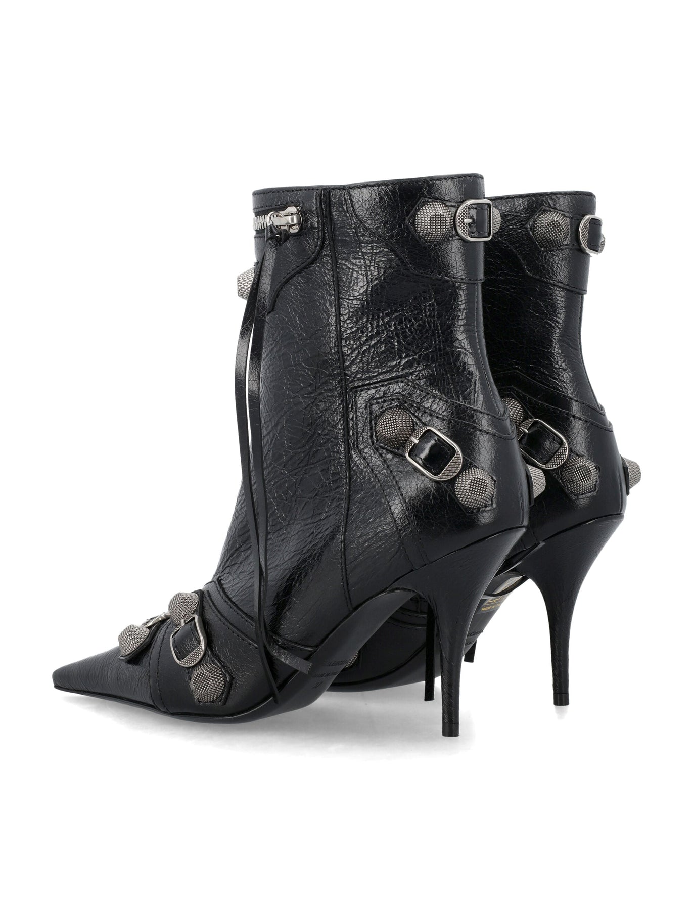 Step into style and confidence with these stunning ankle boots from a renowned fashion house. Crafted with crinkled leather and featuring a pointed toe, these boots exude elegance and sophistication. The decorative zipper at the front and the eye-catching laces and metal studs add a touch of edgy glamour, while the stiletto heel elevates your look to new heights. With a convenient zip fastening at the internal sides and silver-tone hardware, these ankle boots are as functional as they are fashionable. Whether you're dressing up for a night out or adding a chic edge to your everyday ensemble, these ankle boots are the perfect statement piece for any wardrobe.