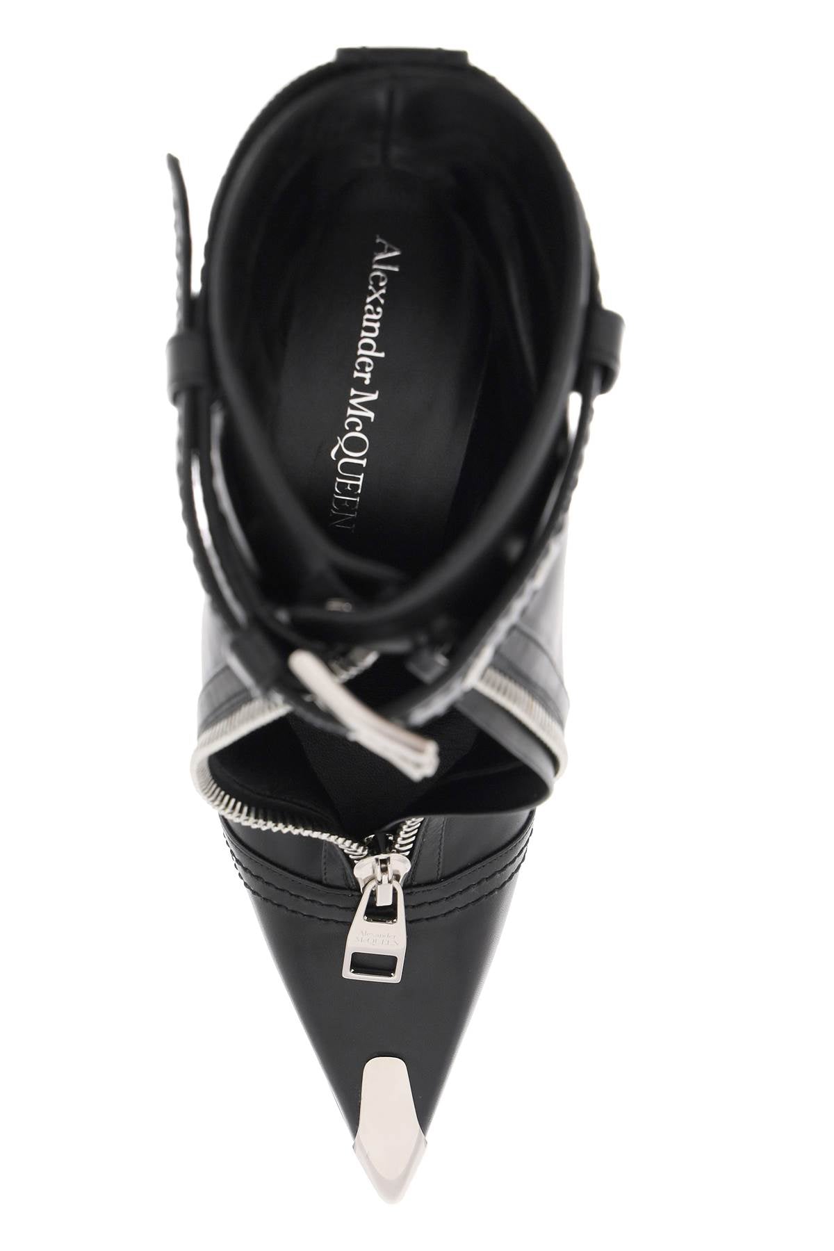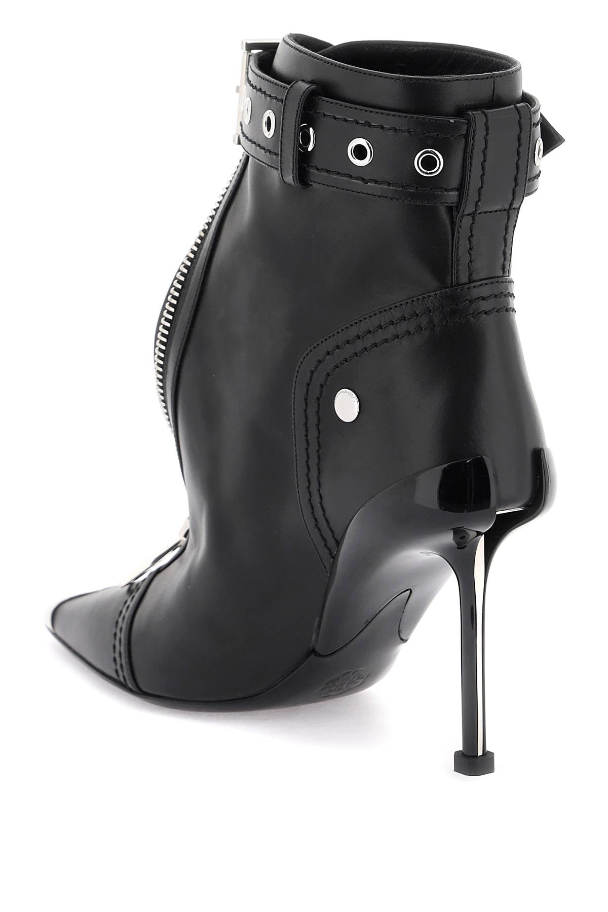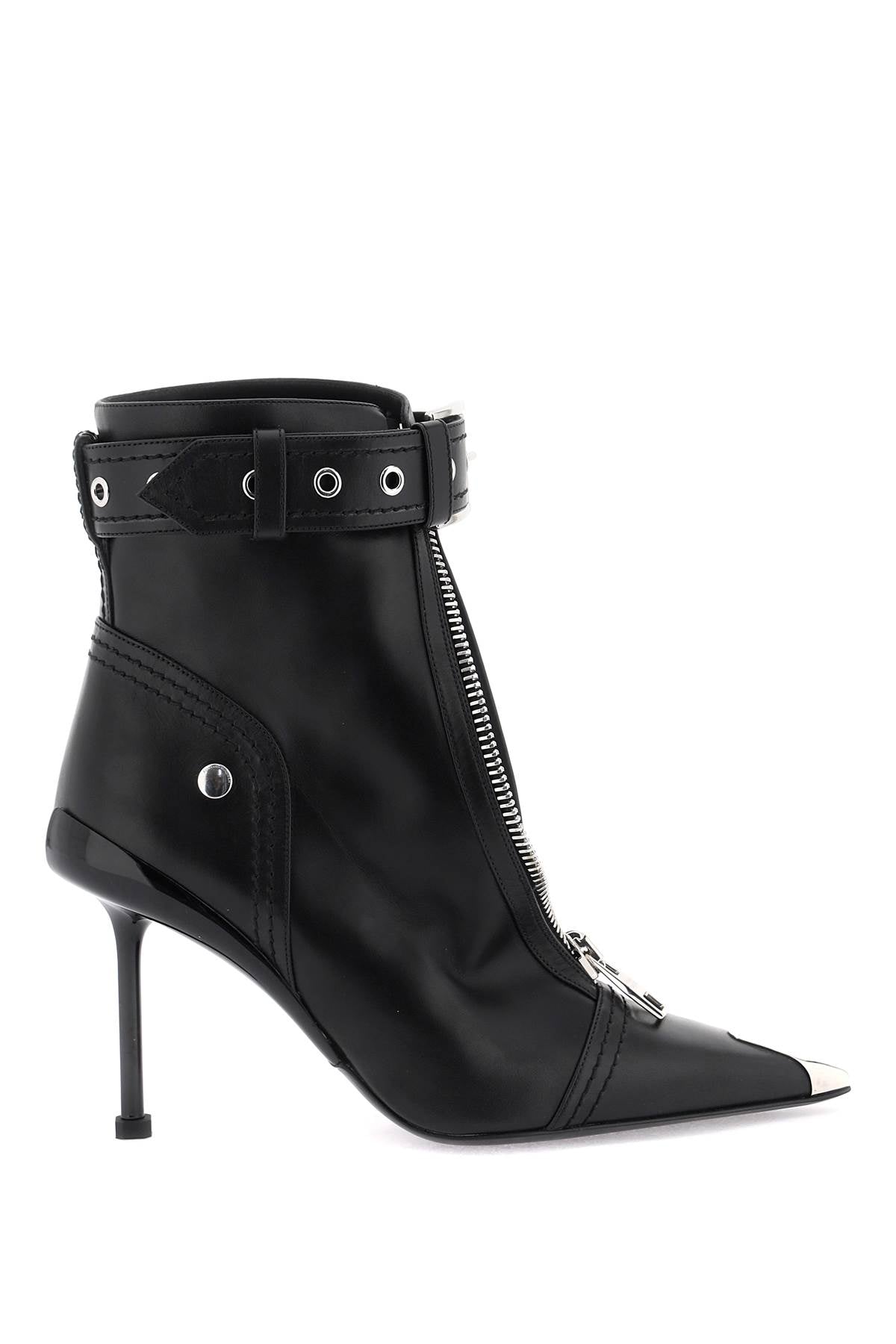 Step up your biker chic game with these leather ankle boots by Alexander McQueen. The adjustable buckle, front zipper, and cut-out effect give them an edgy yet sophisticated vibe. And the lacquered heel with a cut-out and exposed silver core adds a touch of glam to any outfit.
