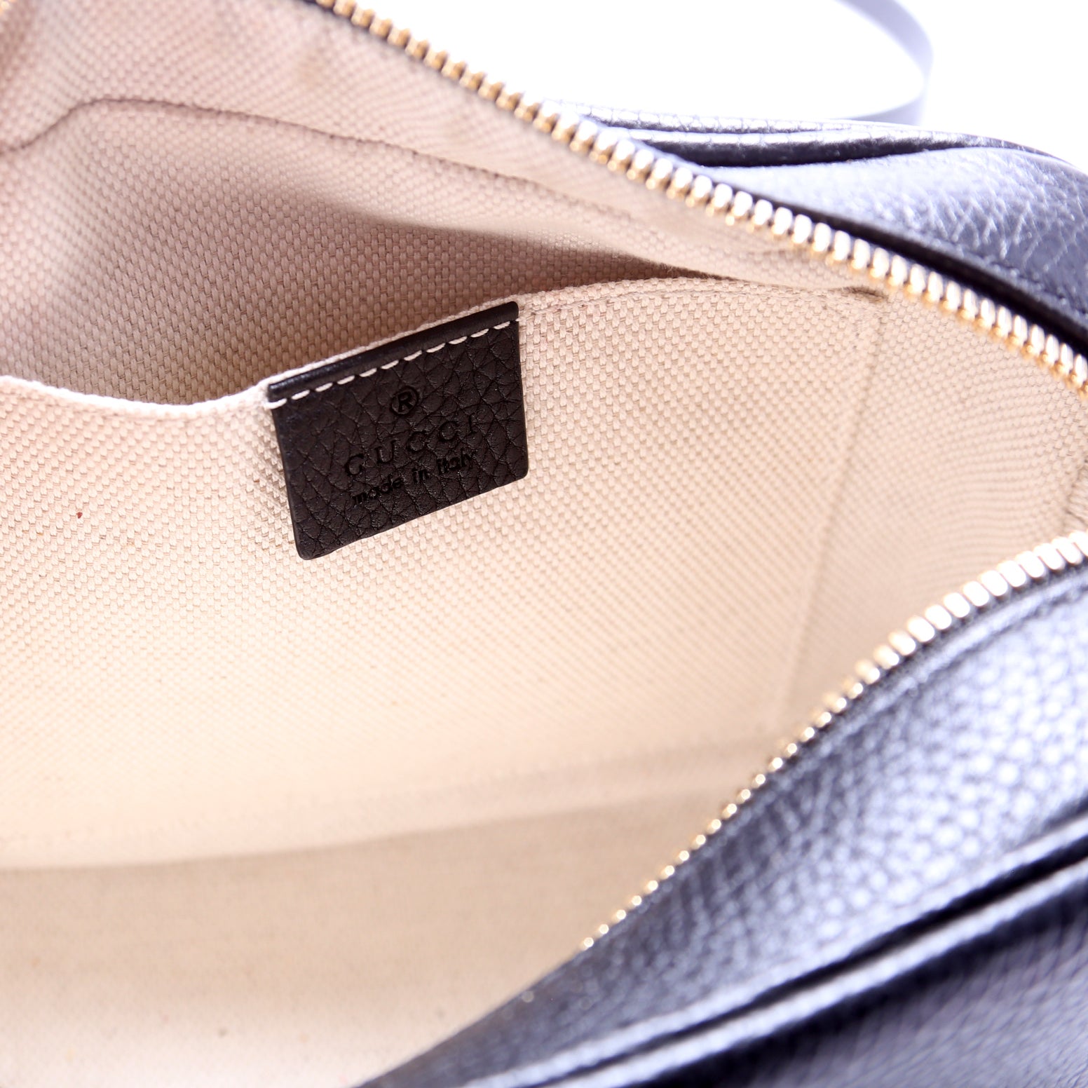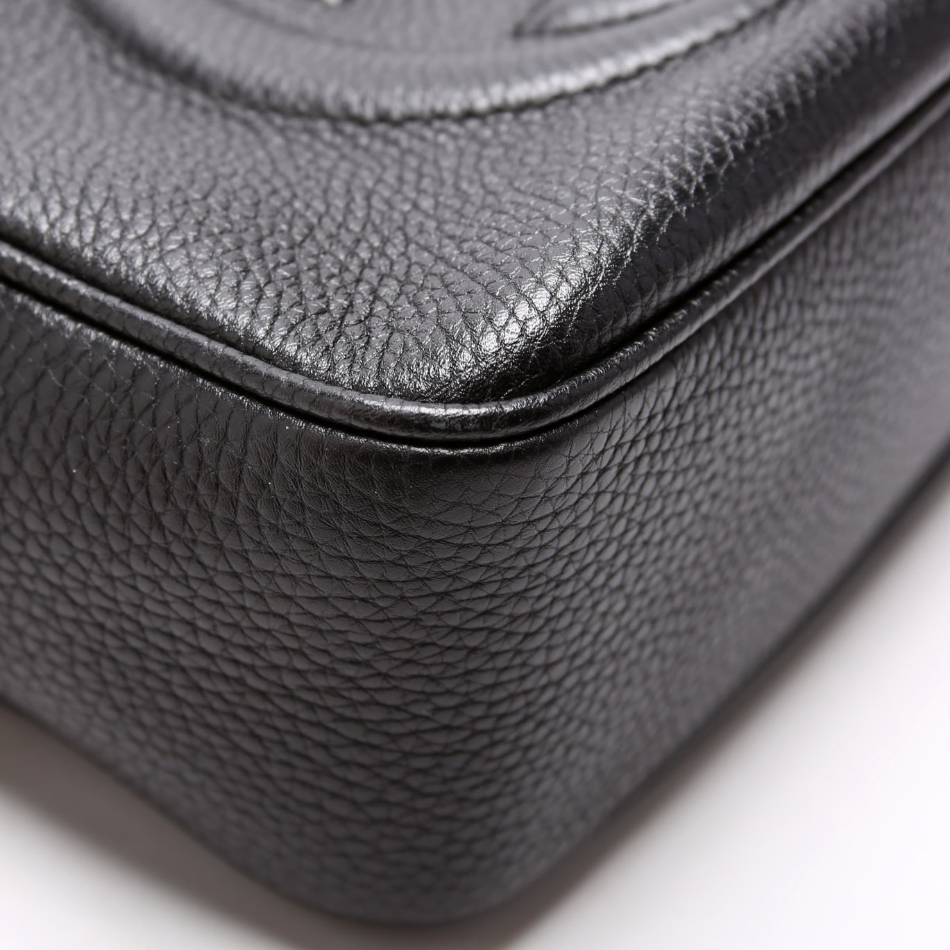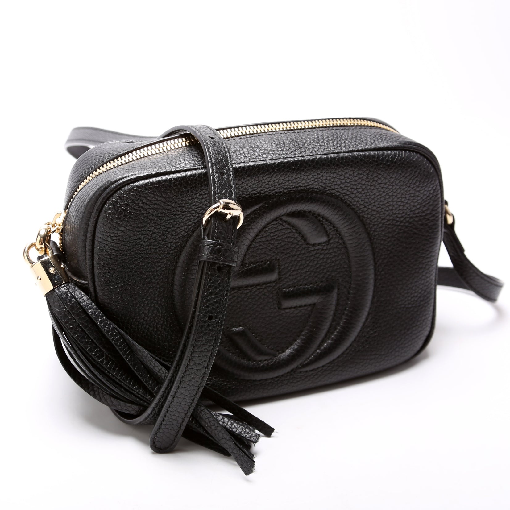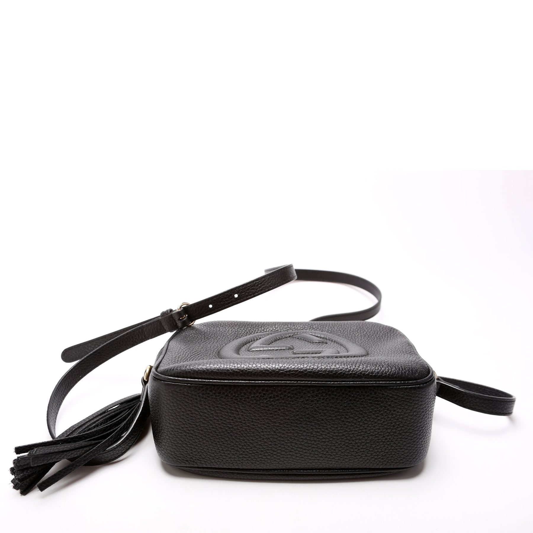 This Gucci Soho Disco Crossbody is d 100% . The exterior is in the classic Gucci Soho leather.