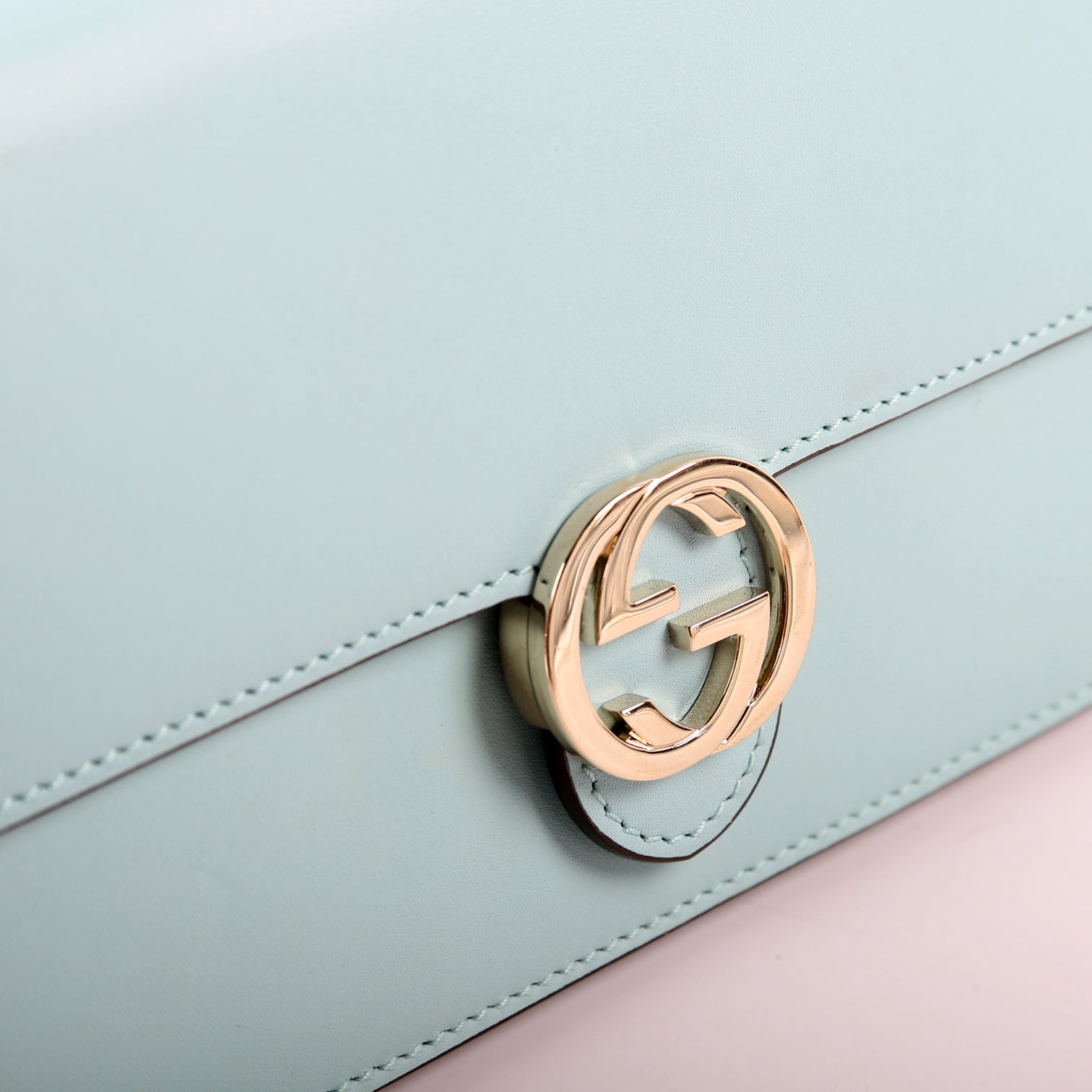 369664 Interlocking G Calfskin Leather Icon Wallet Crossbody Blue
