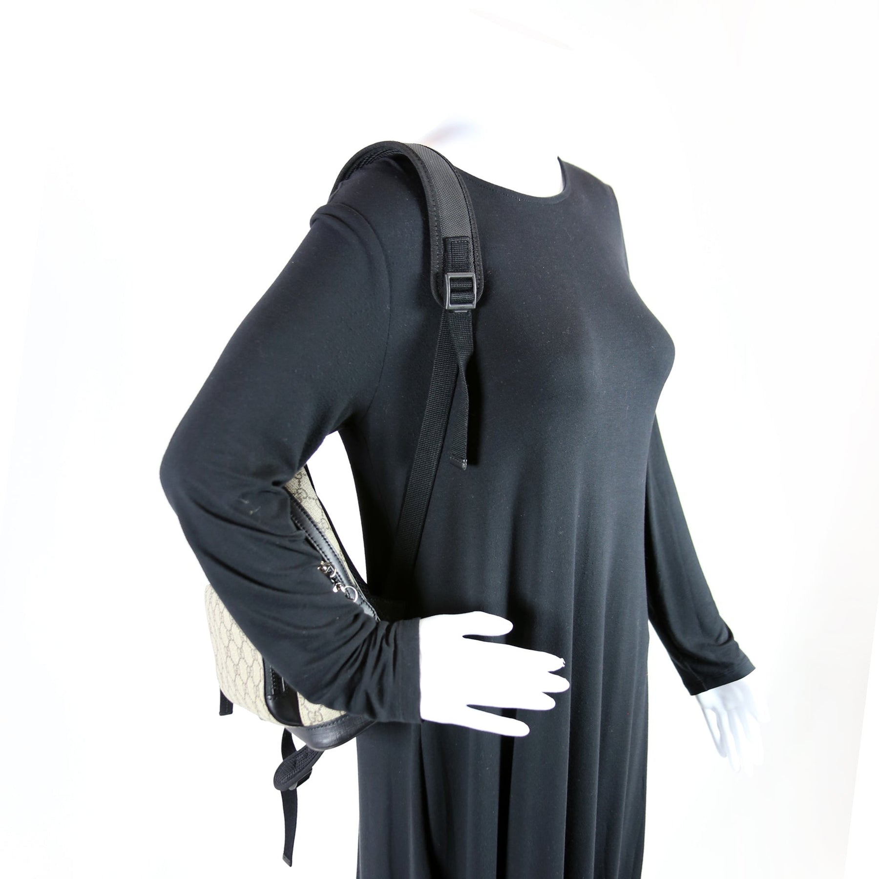 This Gucci Eden Small Backpack is d 100% . The exterior is in the classic monogram coated canvas.