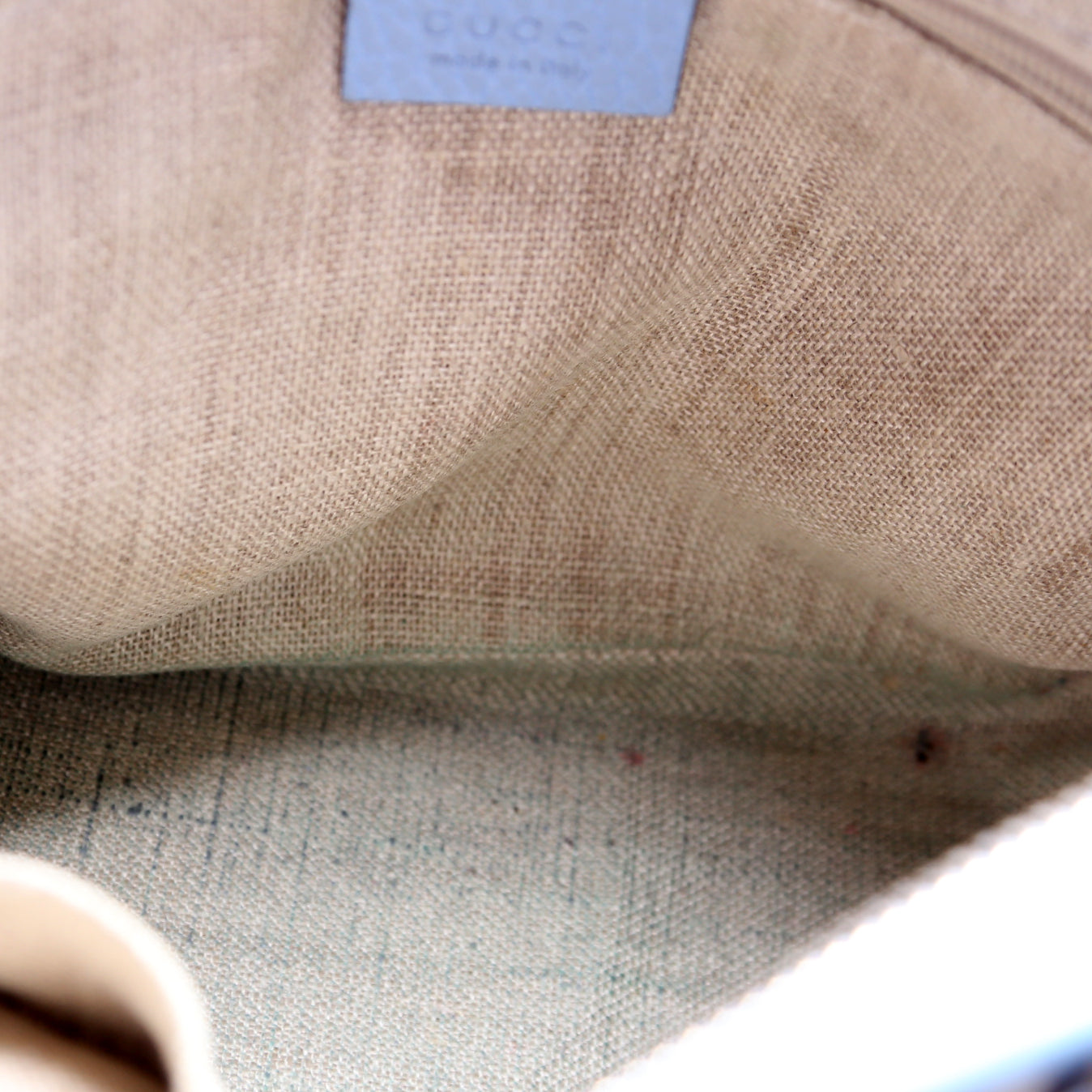Interior: The interior is free of rips or tears. There is heavy discoloration throughout. The interior features one zipper pocket and two open pockets.
