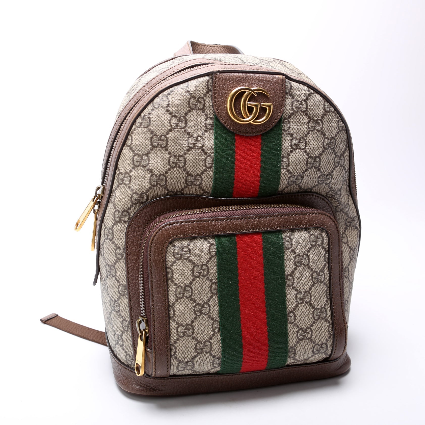 This Gucci Small Ophidia Backpack is d 100% . The exterior is in the classic GG Supreme coated canvas.
