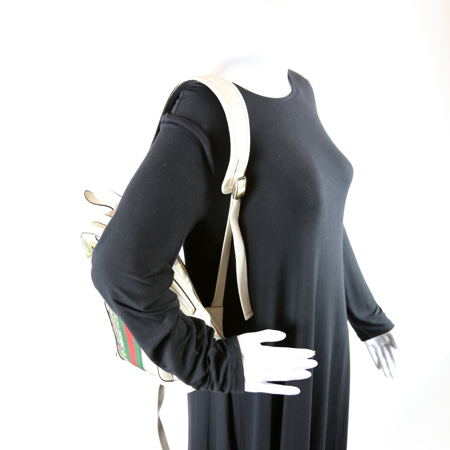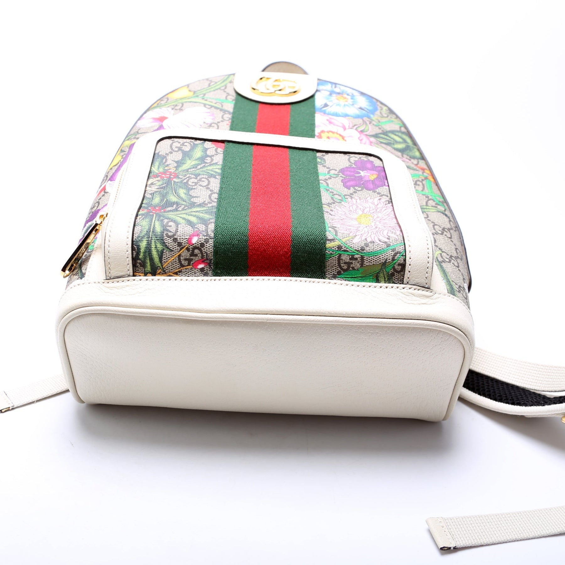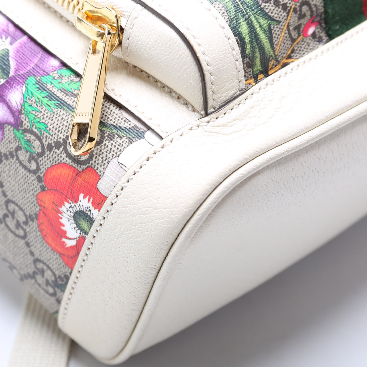 This Gucci GG Supreme Ophidia Flora Backpack is d 100% . The exterior is in the classic Gucci GG Supreme Flora coated canvas.