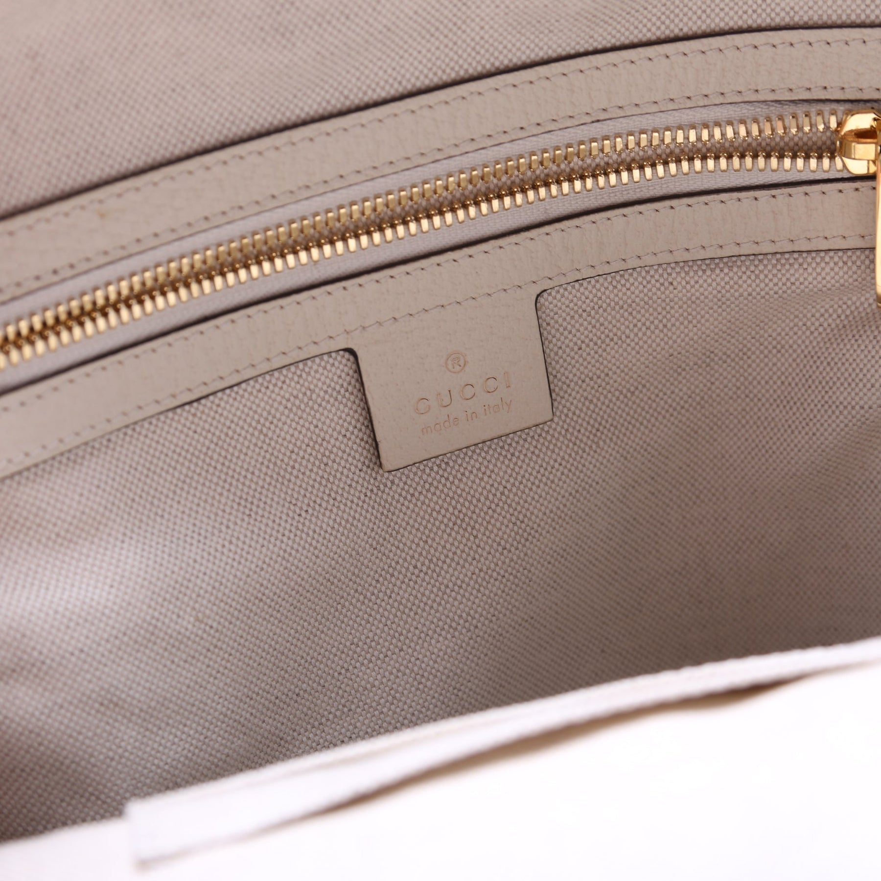 Exterior: The exterior coated canvas is free of any rips or cracks. The exterior features one zip closure pocket.