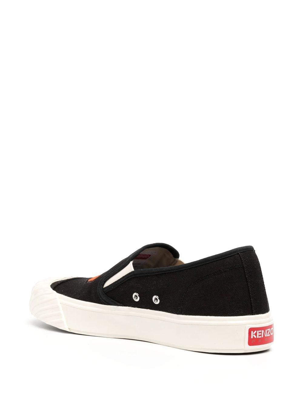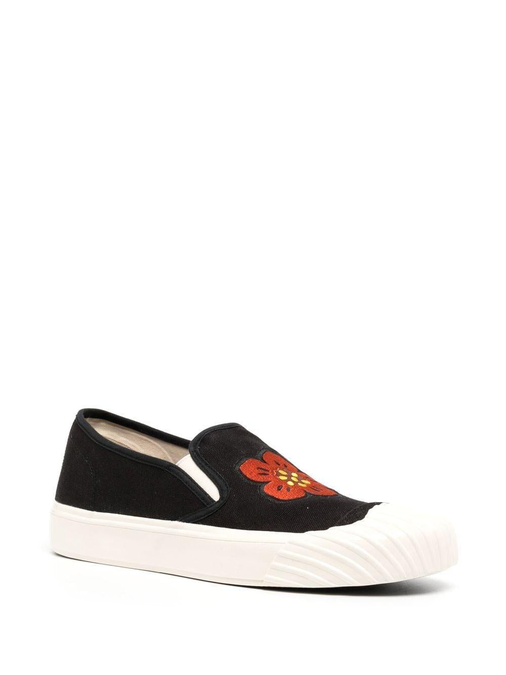Step up your style game with these cotton canvas slip-on sneakers by Kenzo, featuring iconic boke flower embroidery. With a rubber covered toe, removable insole, side ventilation eyelets, and rubber sole, these sneakers are both fashionable and functional.