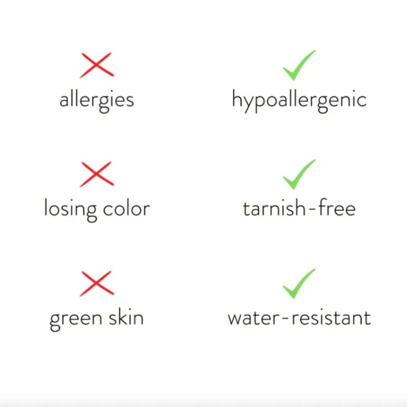 Made with waterproof stainless steel, you never need to worry about fading or tarnishing jewelry ever again.
