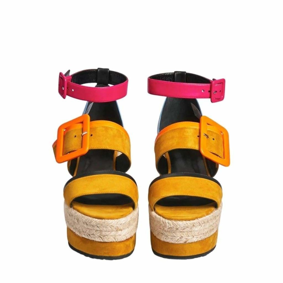 Featuring two buckles, ankle strap and rounded heel back for a comfortable wear, these sandals will propel you to new and unheard of heights.