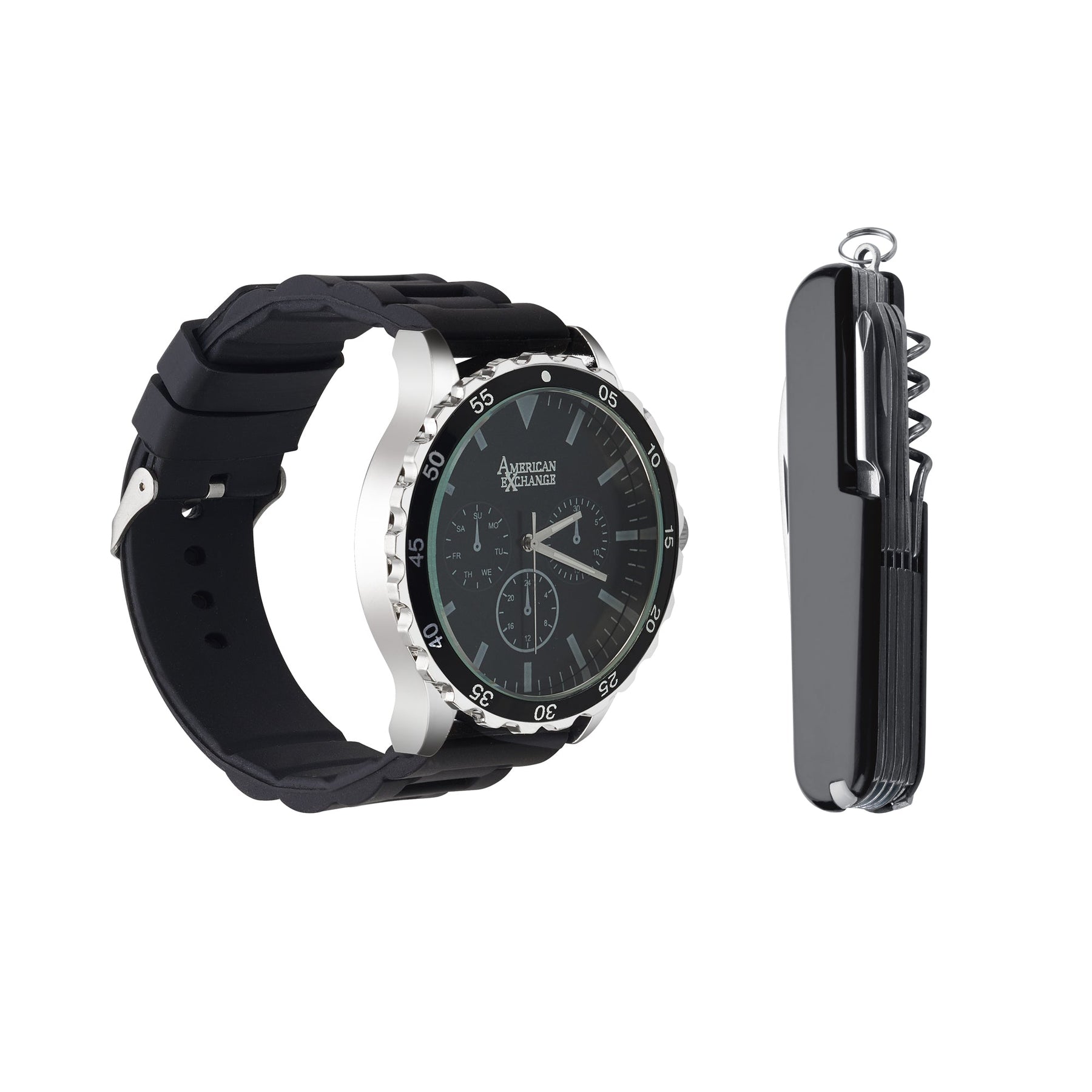 Premiere craftsmanship, exceptional styling unparalleled value Always be on time, whether you are running from meeting to meeting, racing to get to the children, or running the trails, with this classic watch and multi purpose tool. Gift set comes with a zippered travel pouch. Style 9714S-42-G02