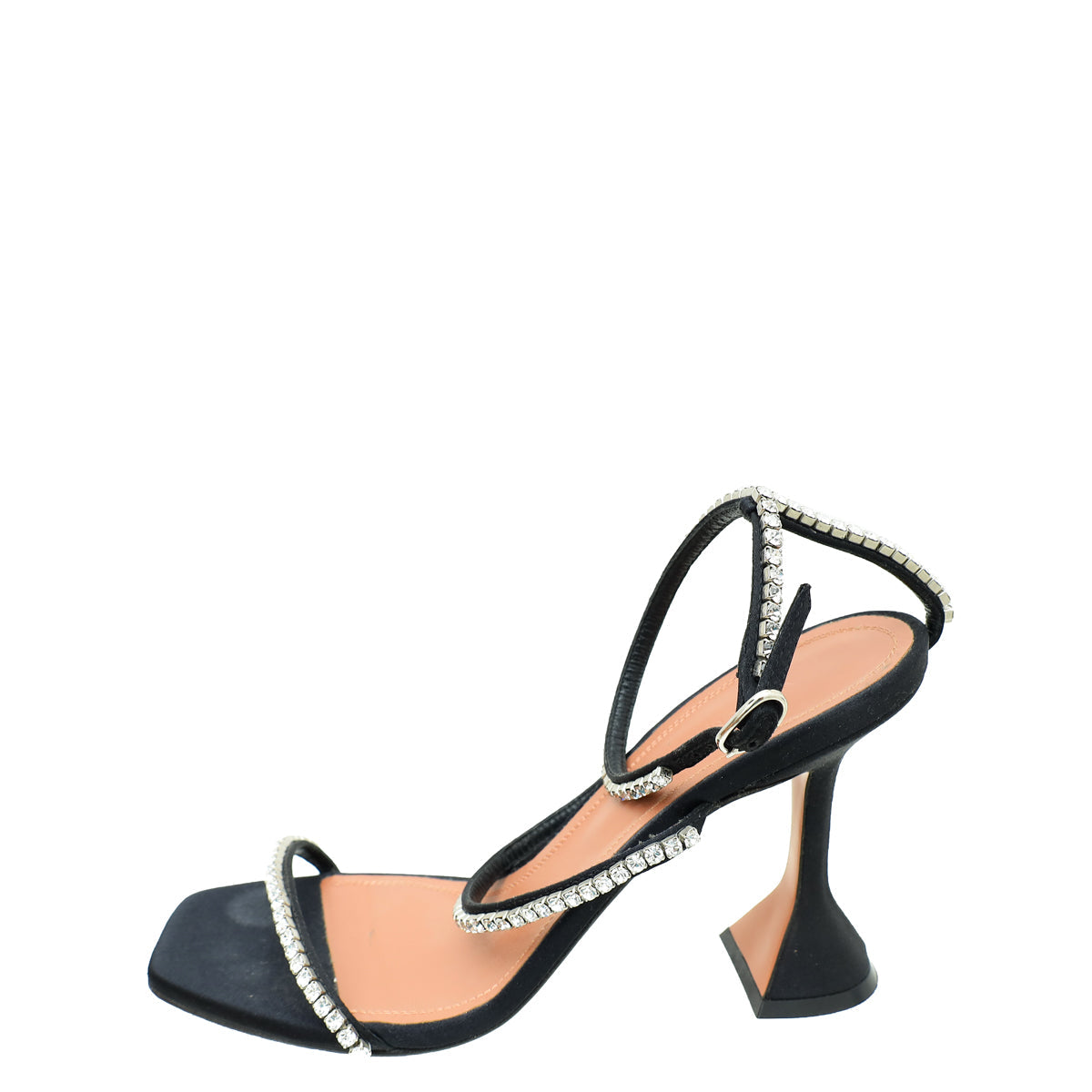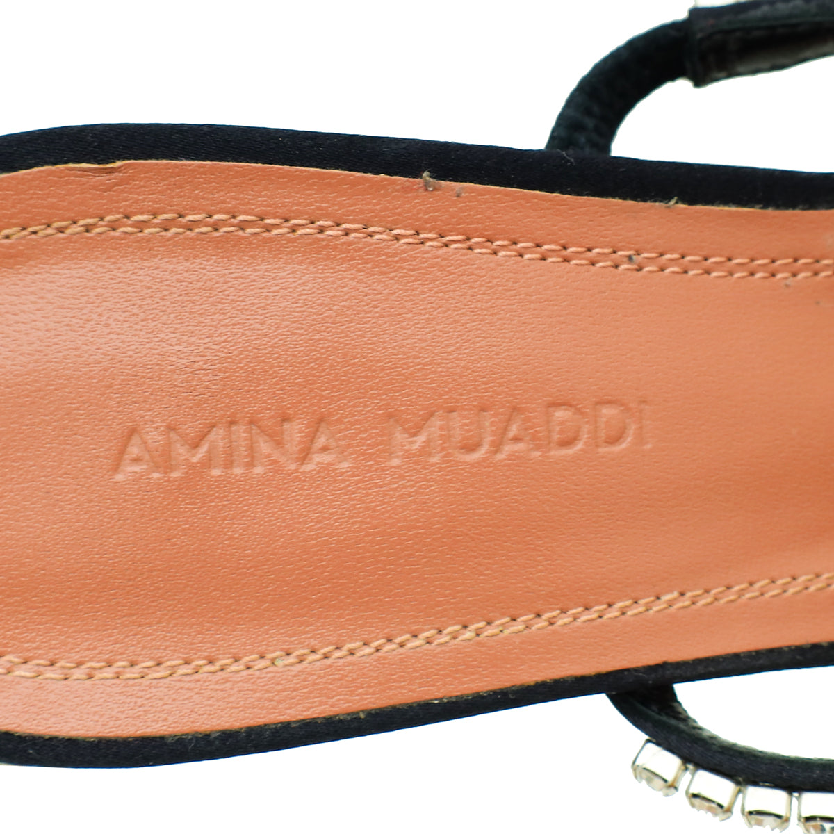 Amina Muaddi Black Satin Gilda 95 Embellished Sandal 37.5