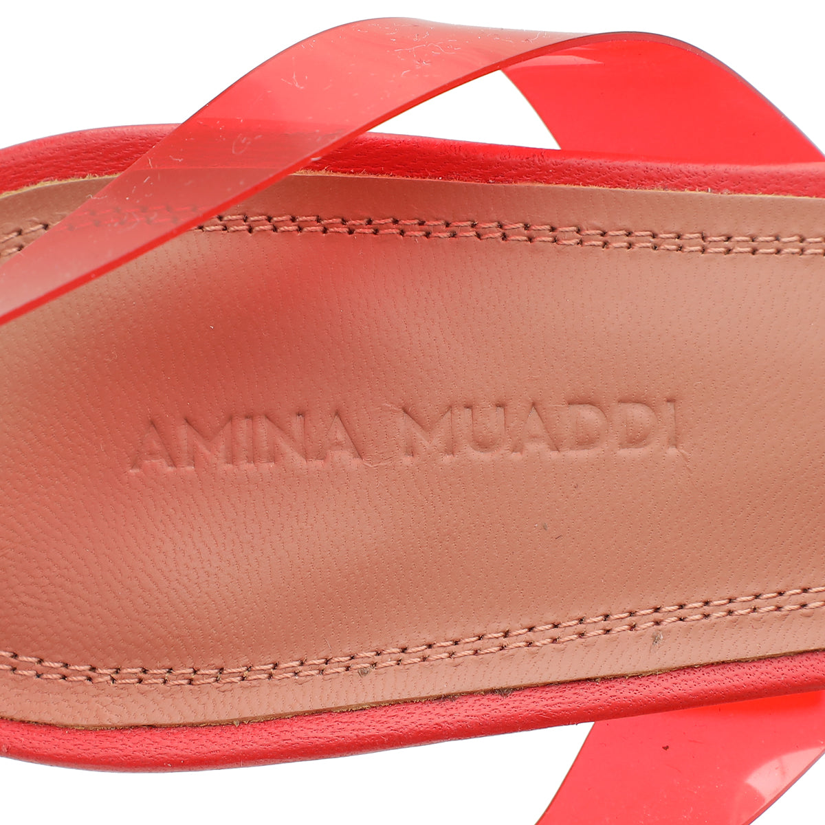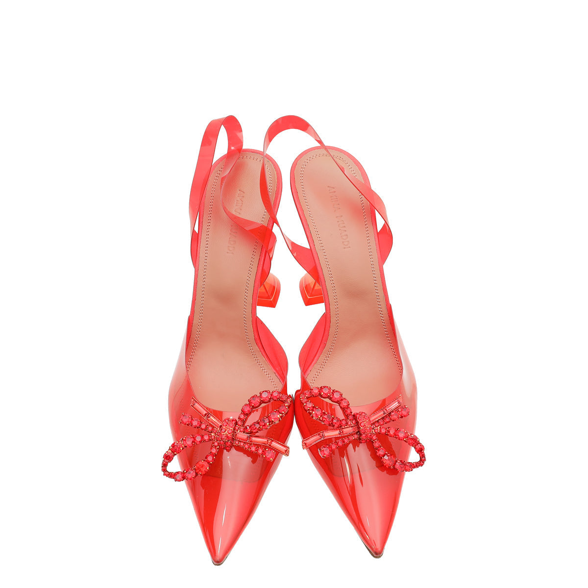 Amina Muaddi Red Rosie Glass Crystal Bow PVC Pump 38