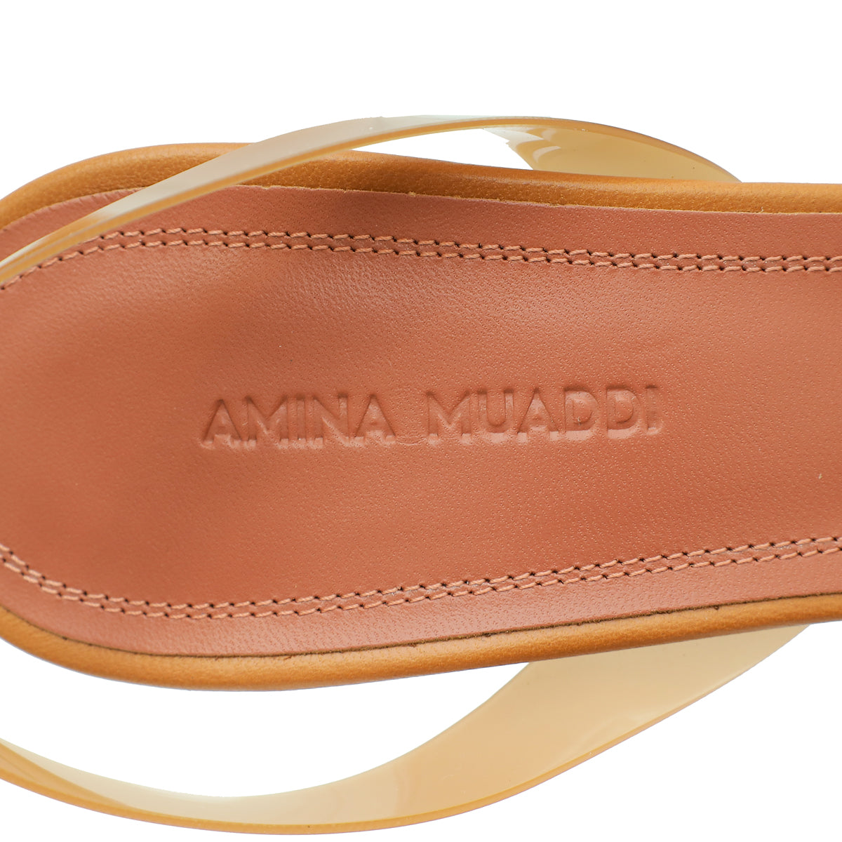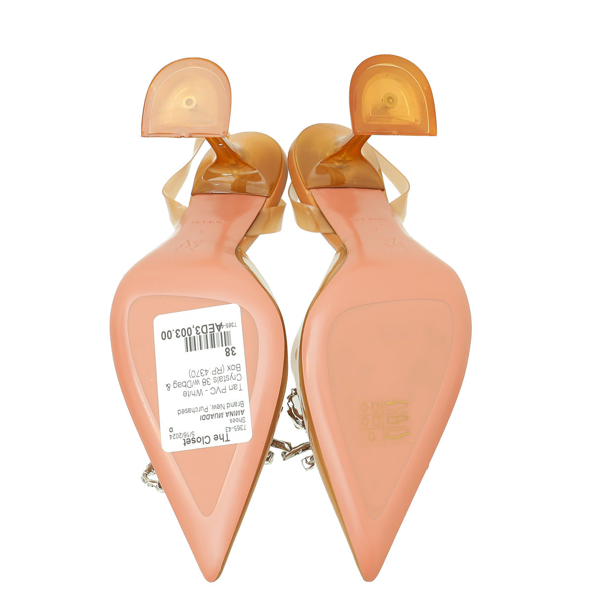 Amina Muaddi Tan Rosie Glass Slingback Pumps 38